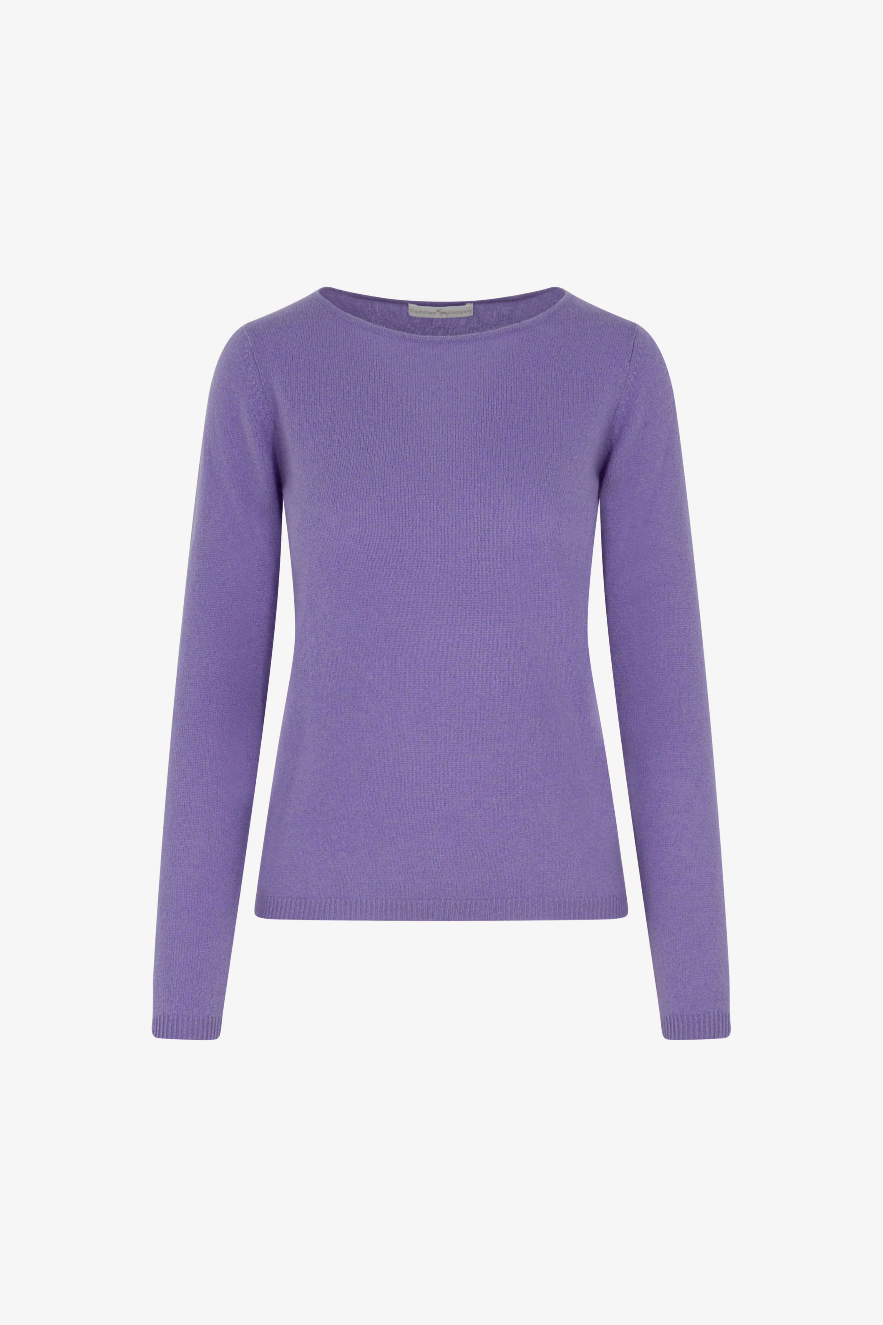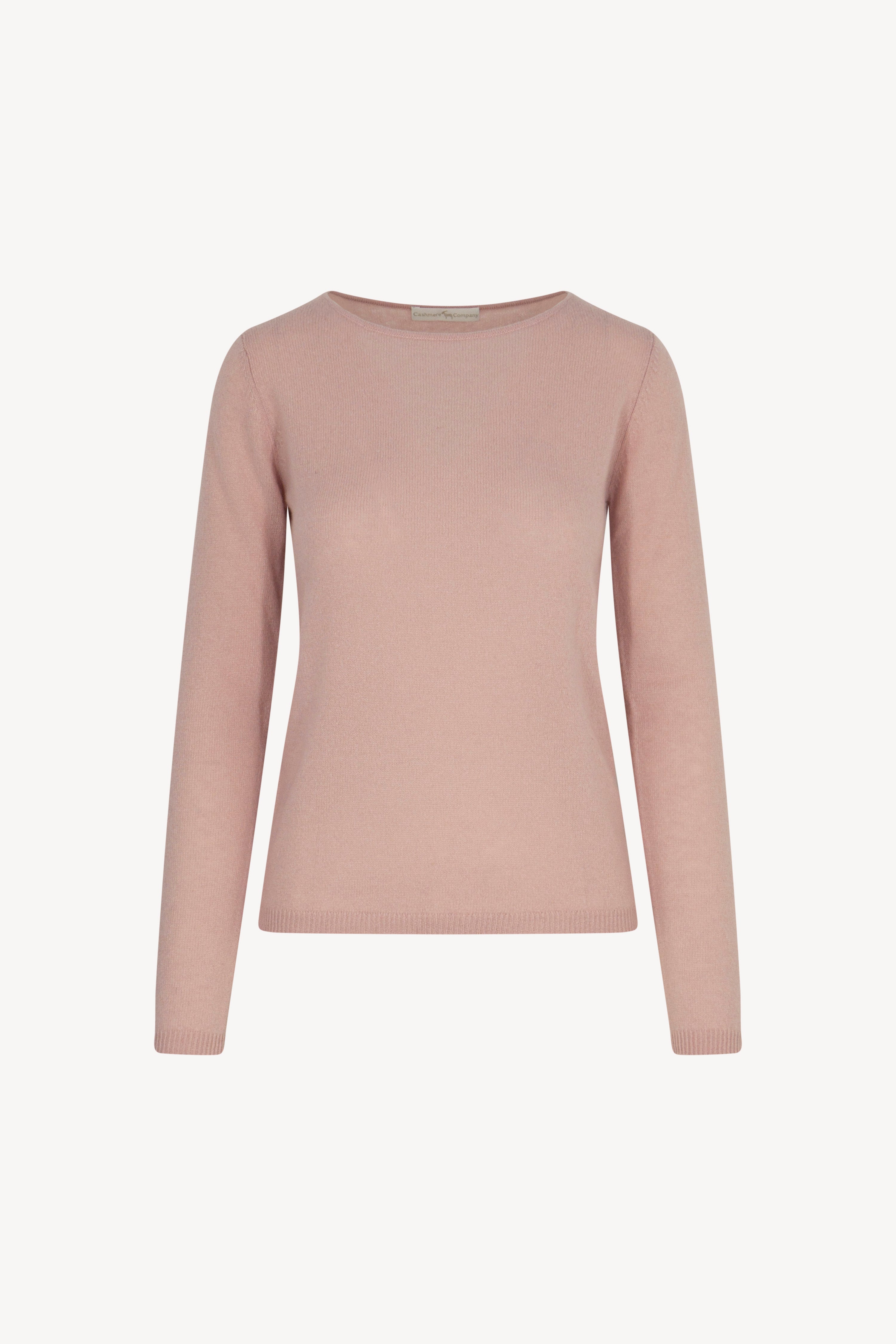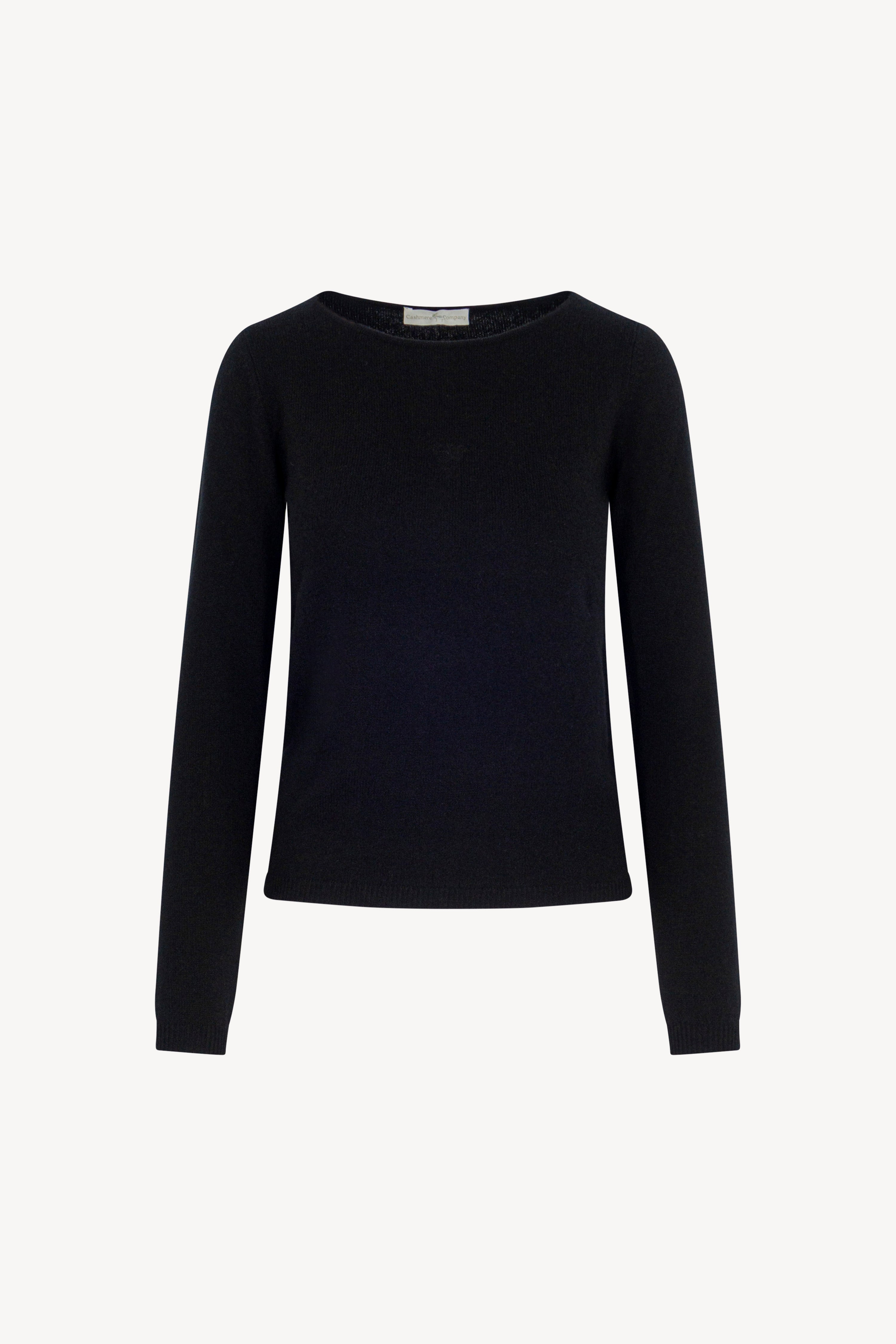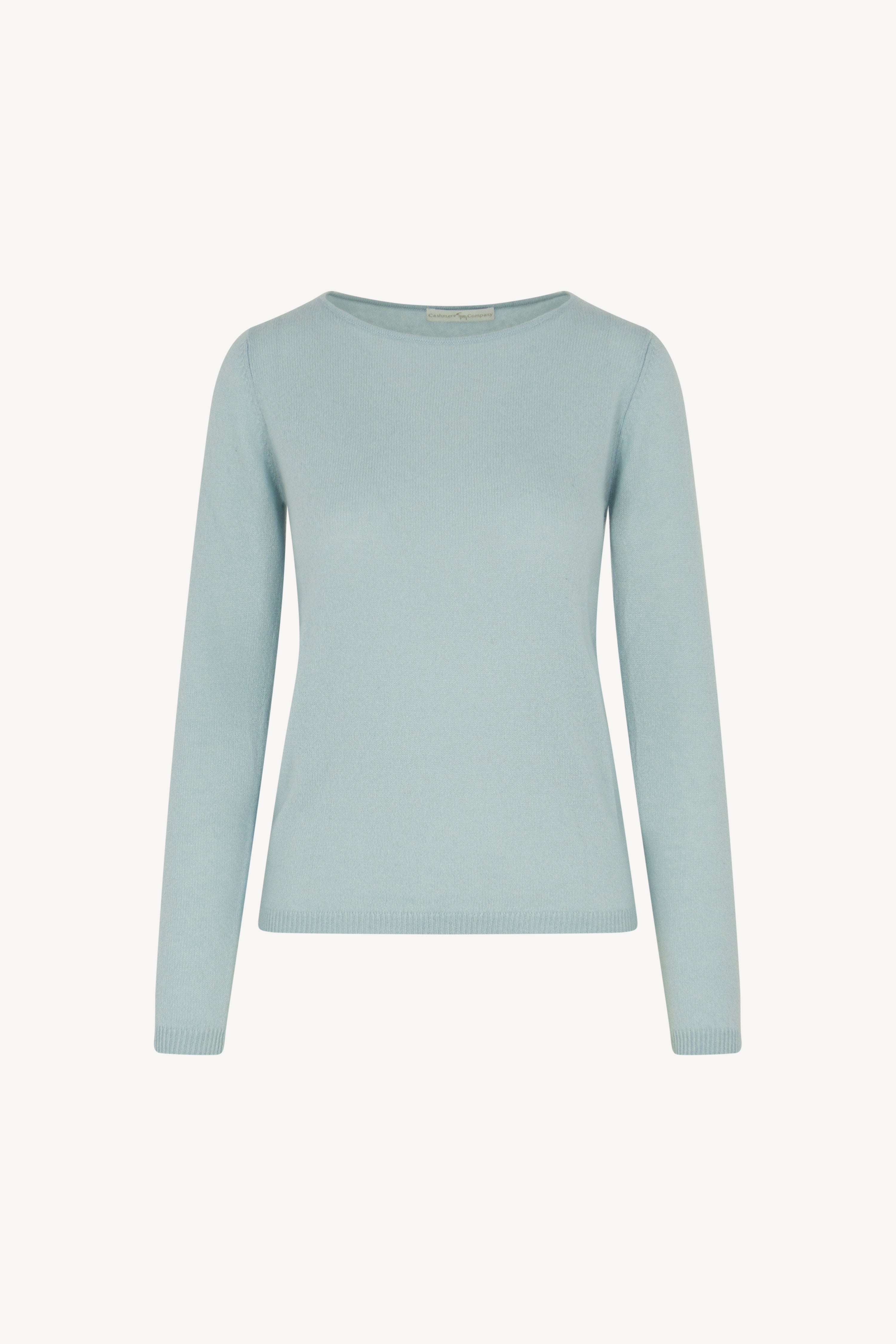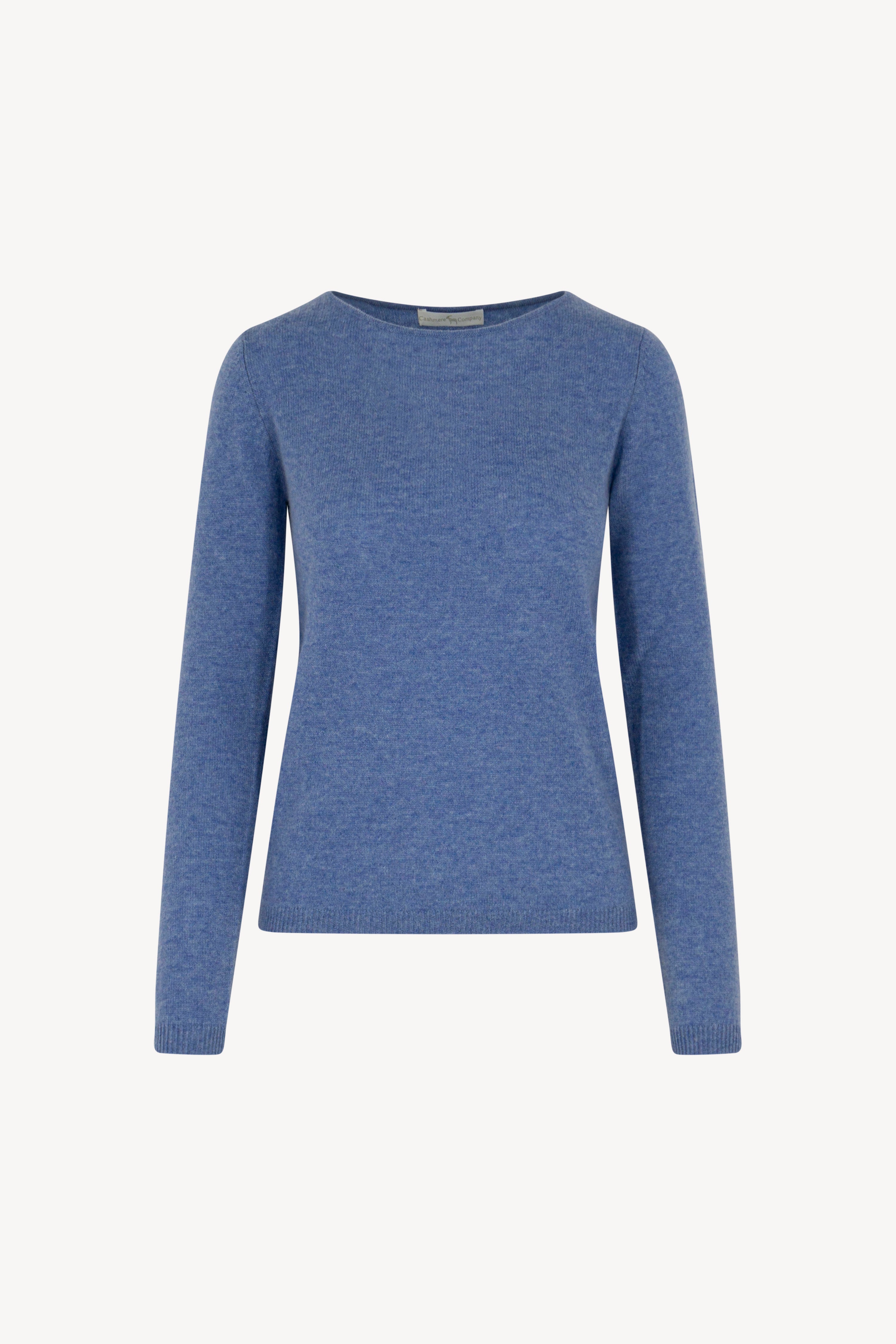Maglia con scollo a barchetta, vestibilità aderente. Il capo è realizzato con filato 100% Cashmere 2/27 1 filo, densità nuvola.
