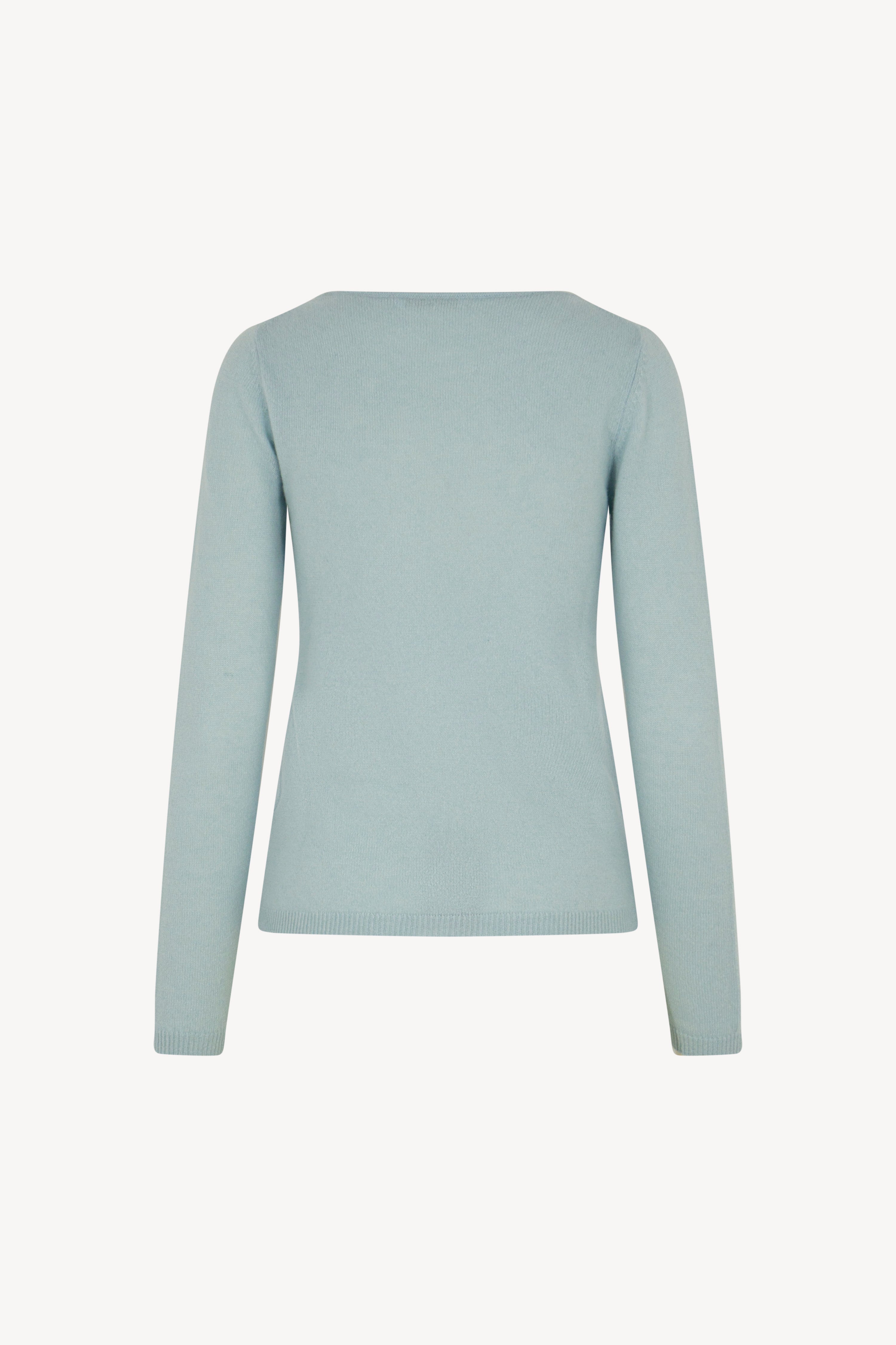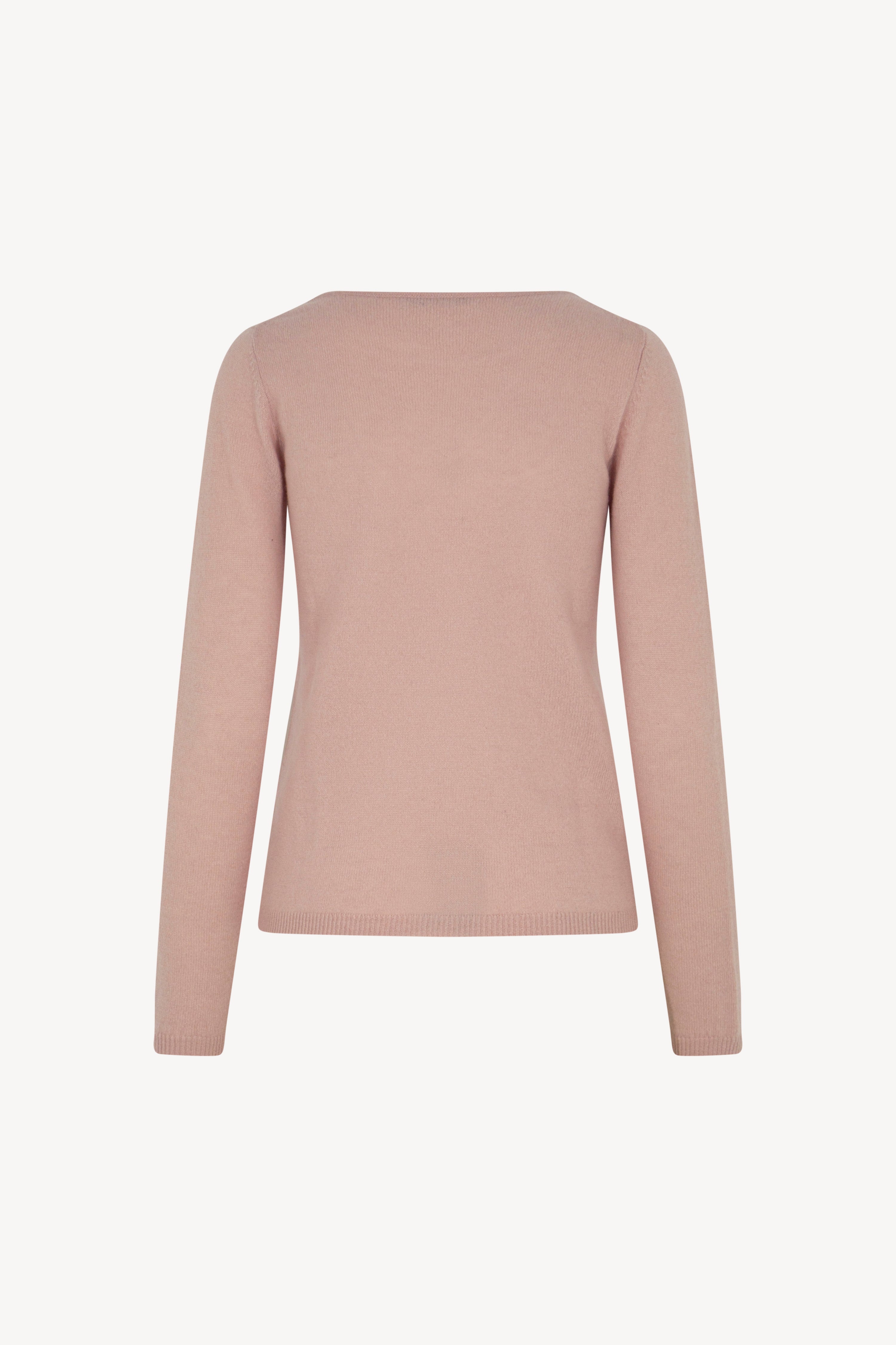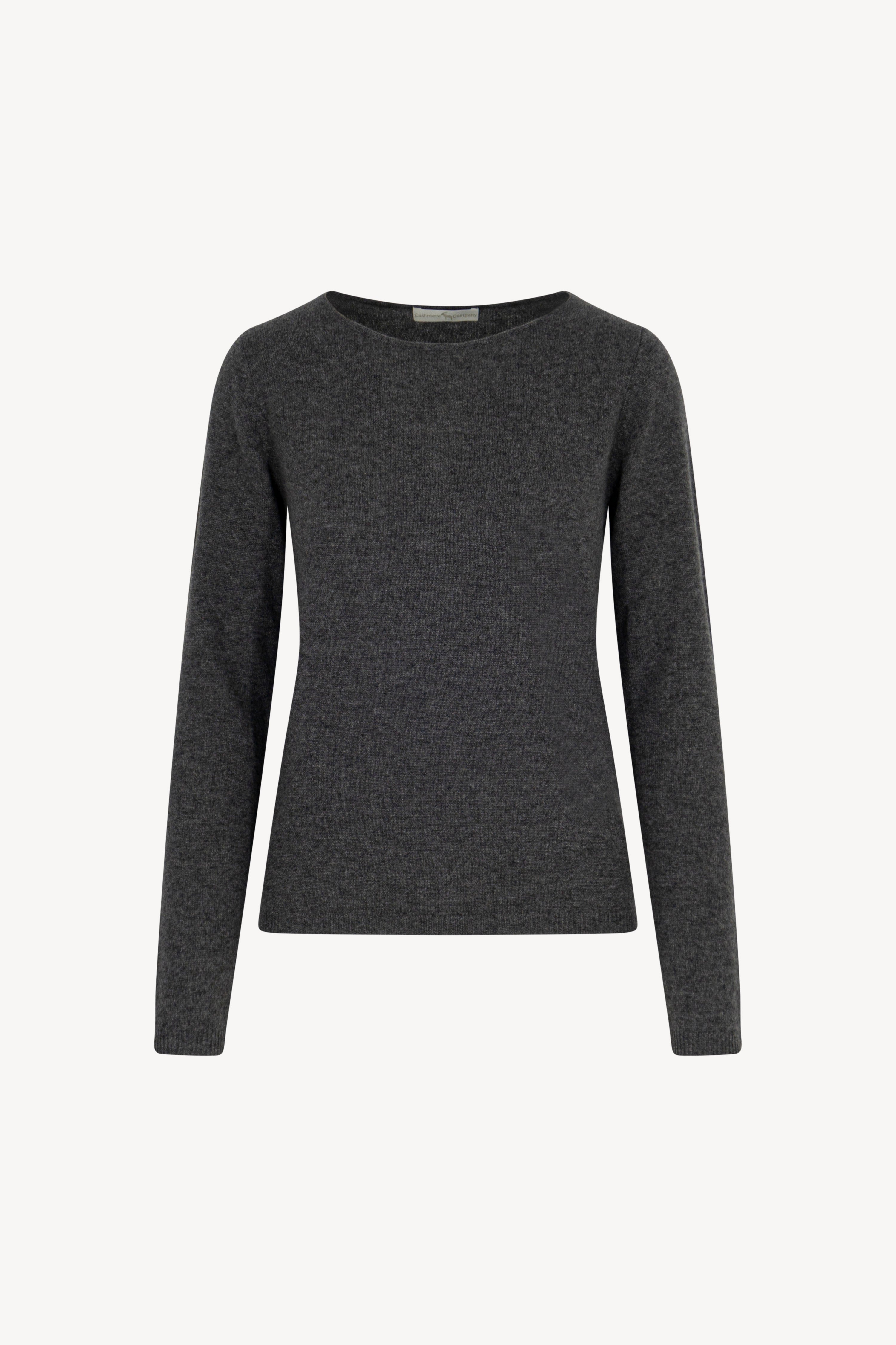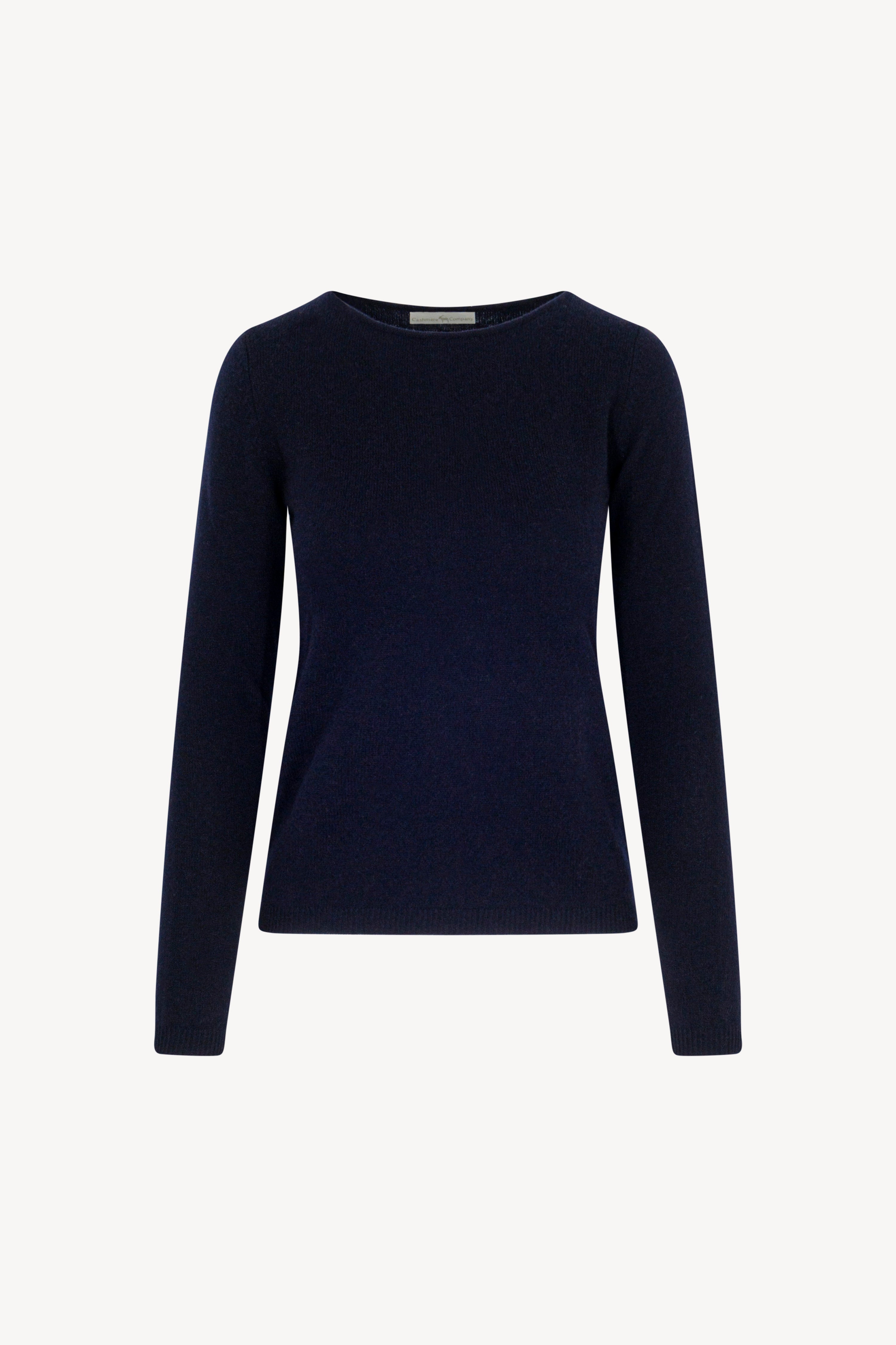 Maglia con scollo a barchetta, vestibilità aderente. Il capo è realizzato con filato 100% Cashmere 2/27 1 filo, densità nuvola.