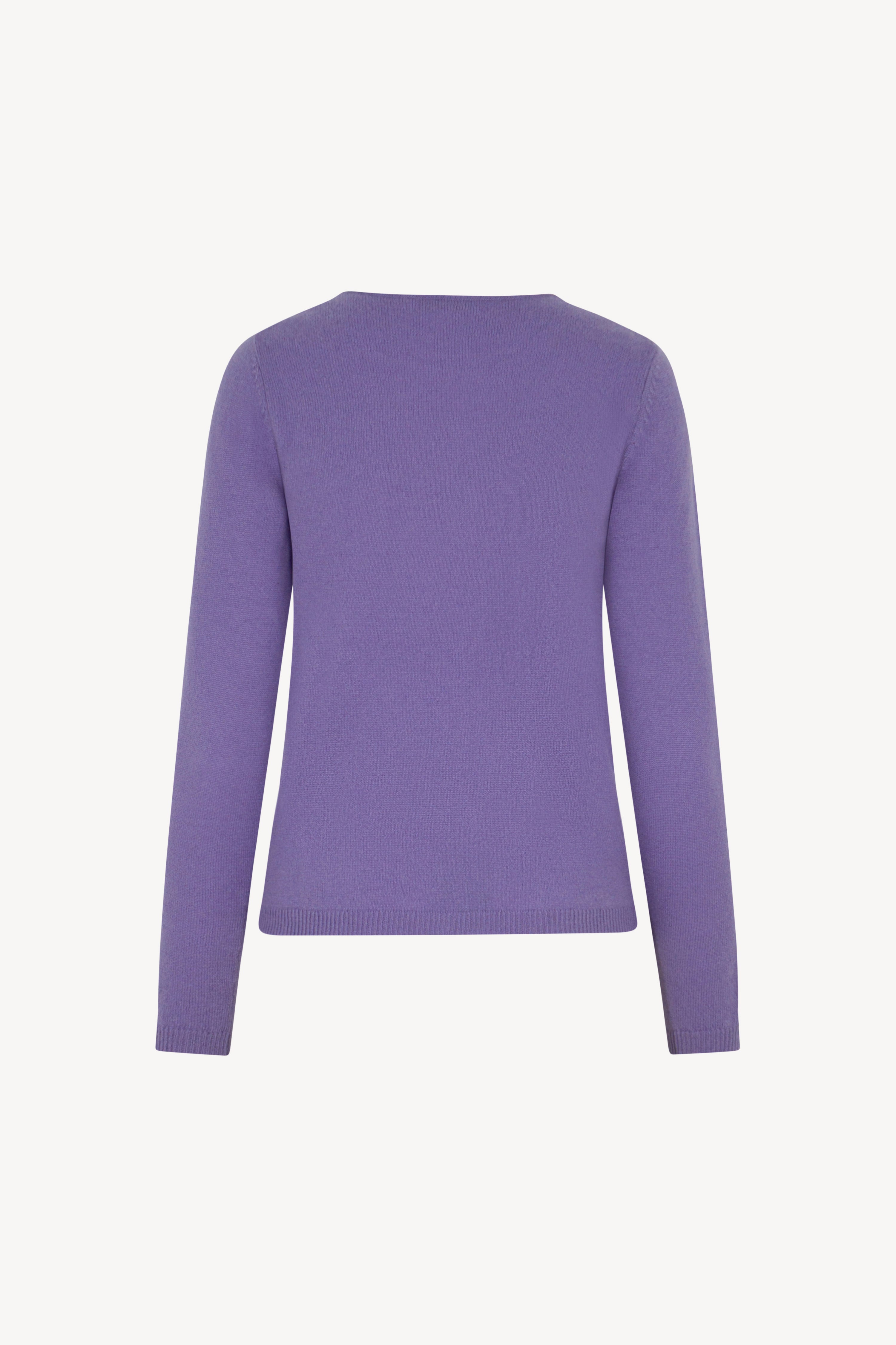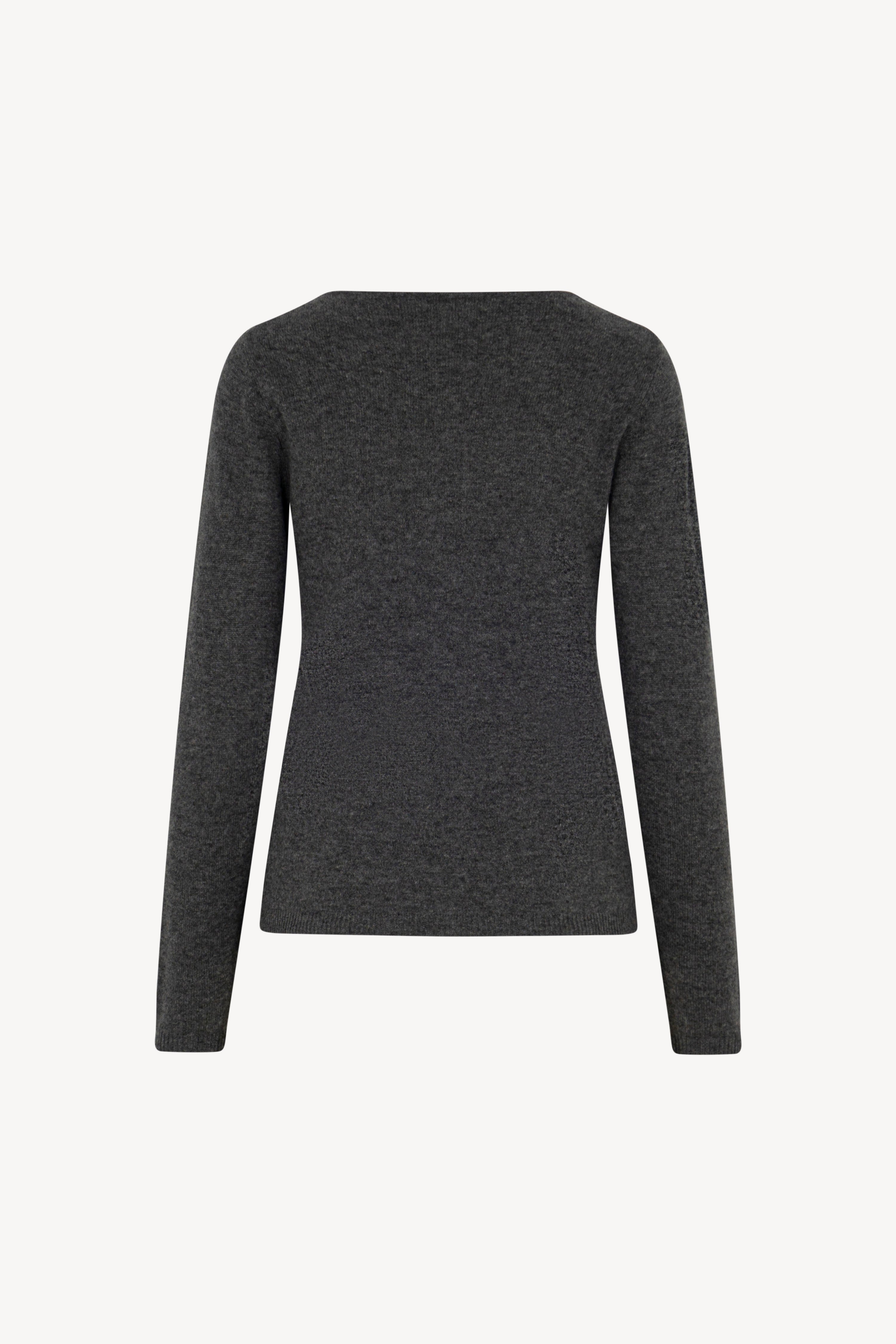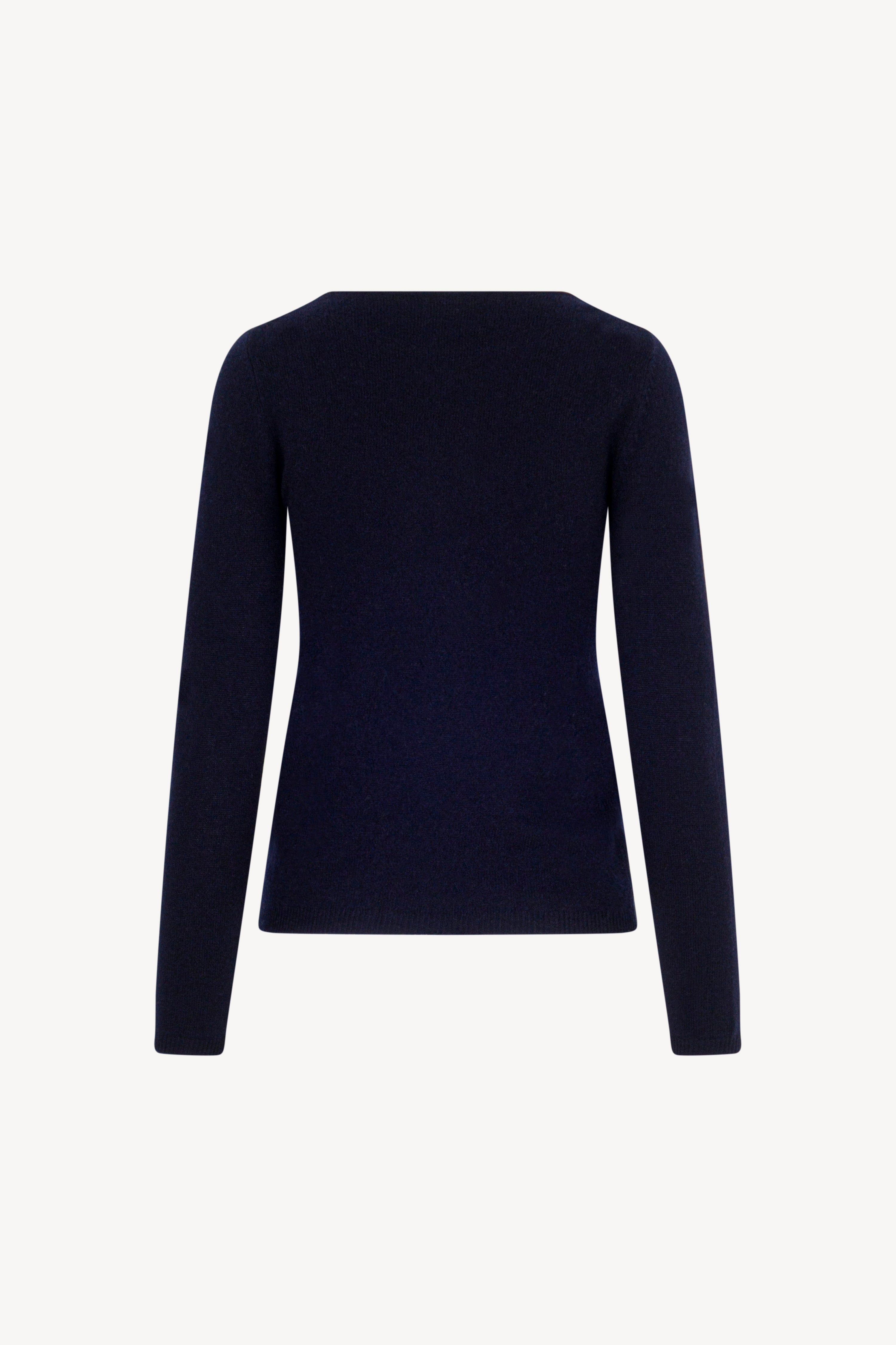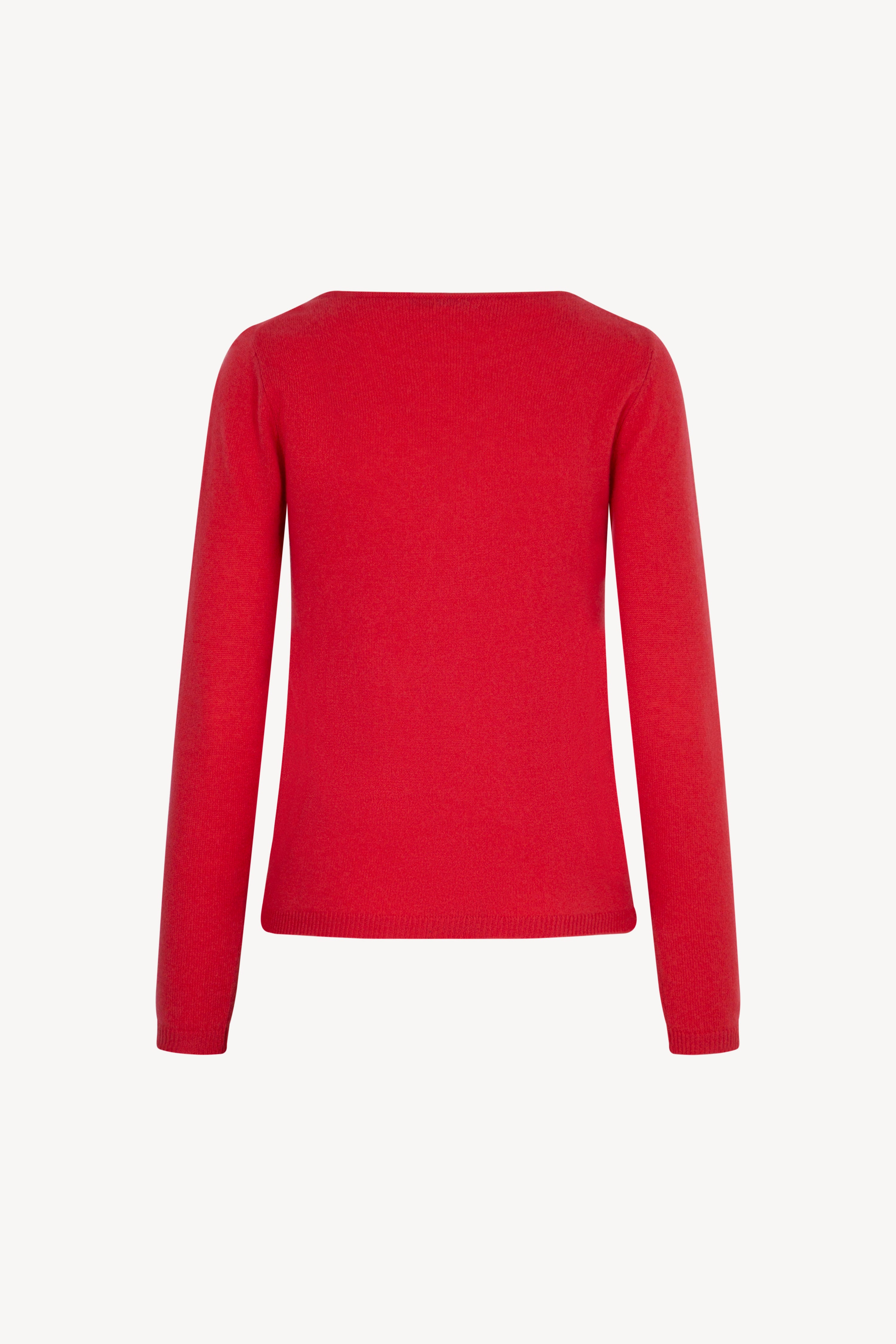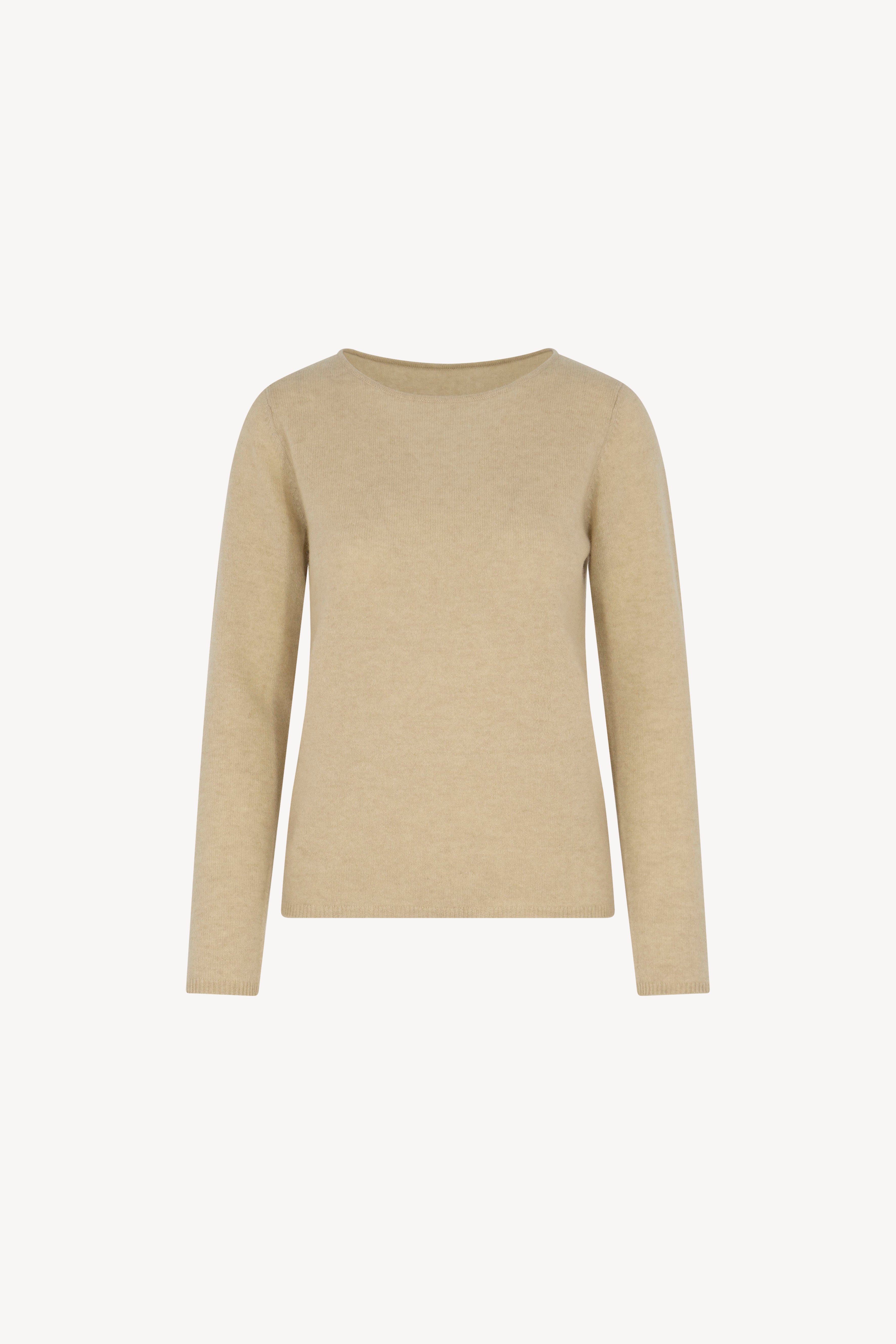 Maglia con scollo a barchetta, vestibilità aderente. Il capo è realizzato con filato 100% Cashmere 2/27 1 filo, densità nuvola.