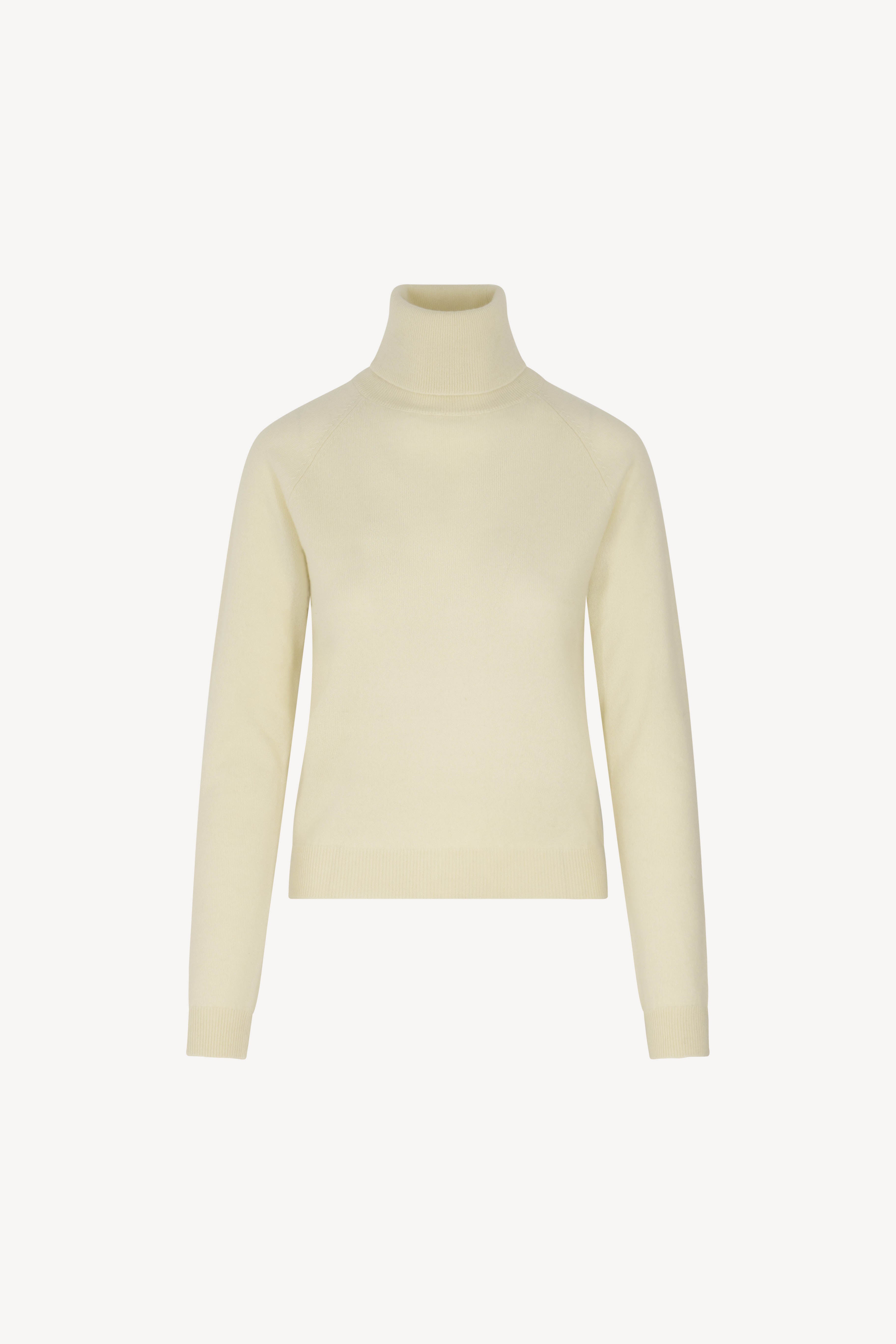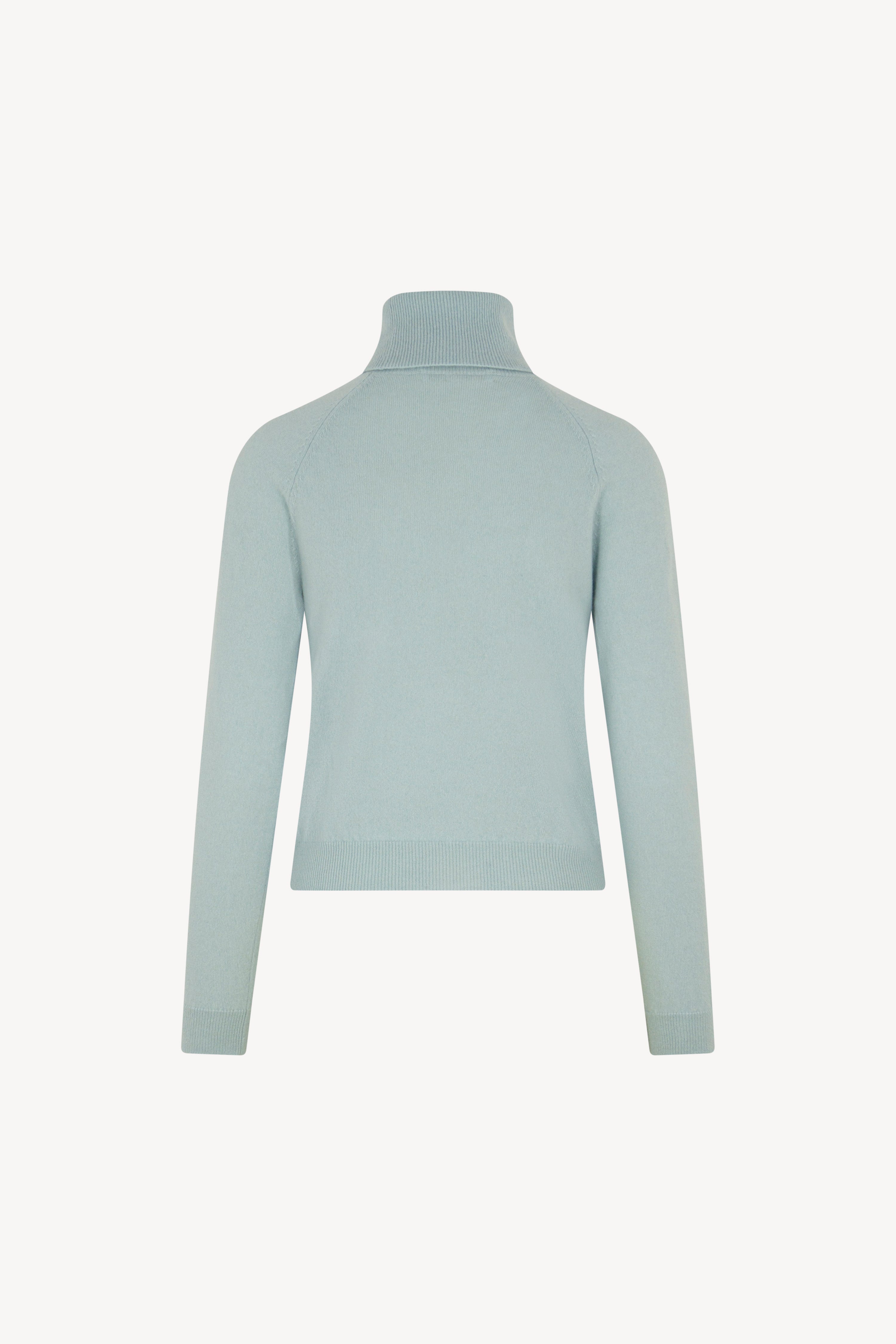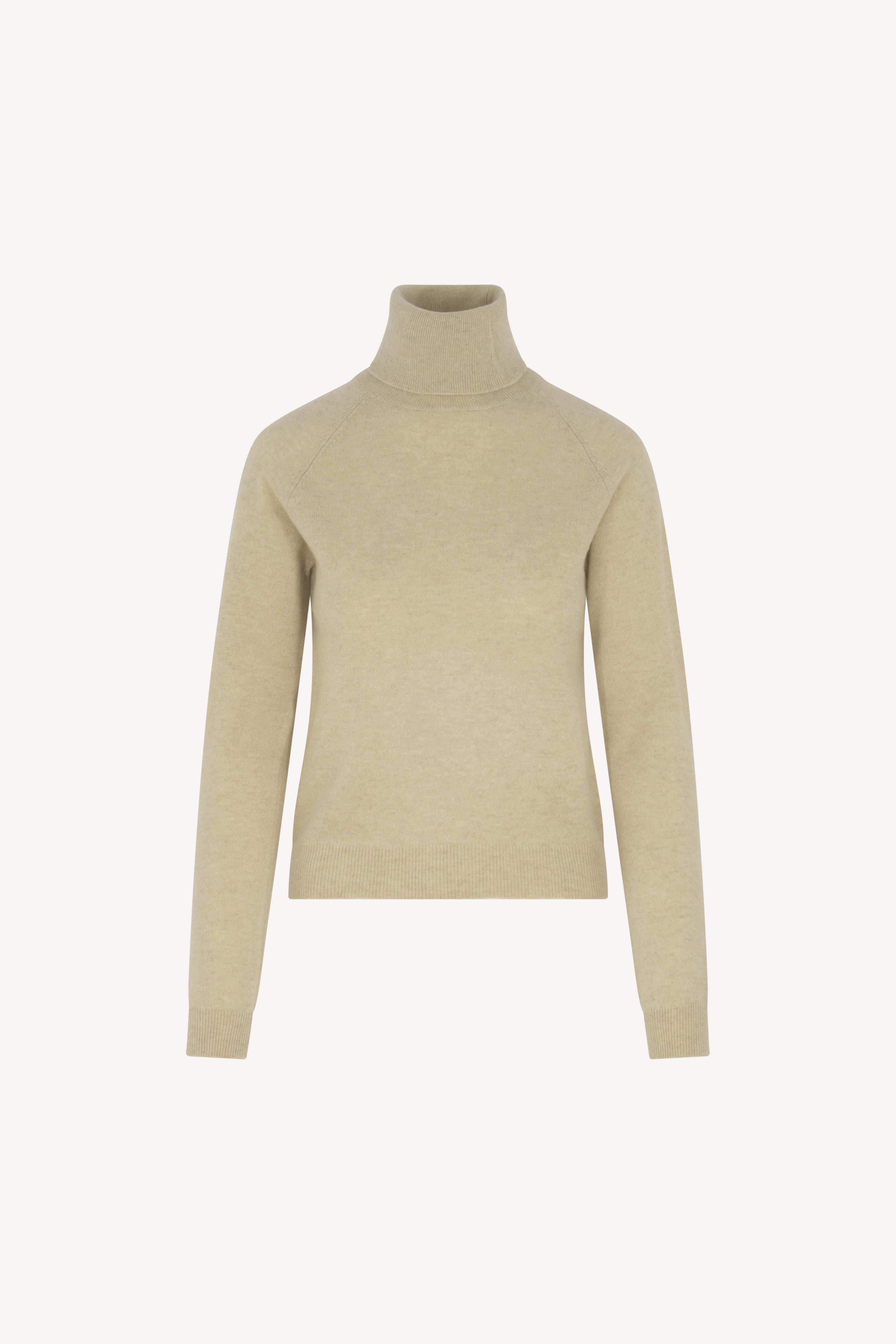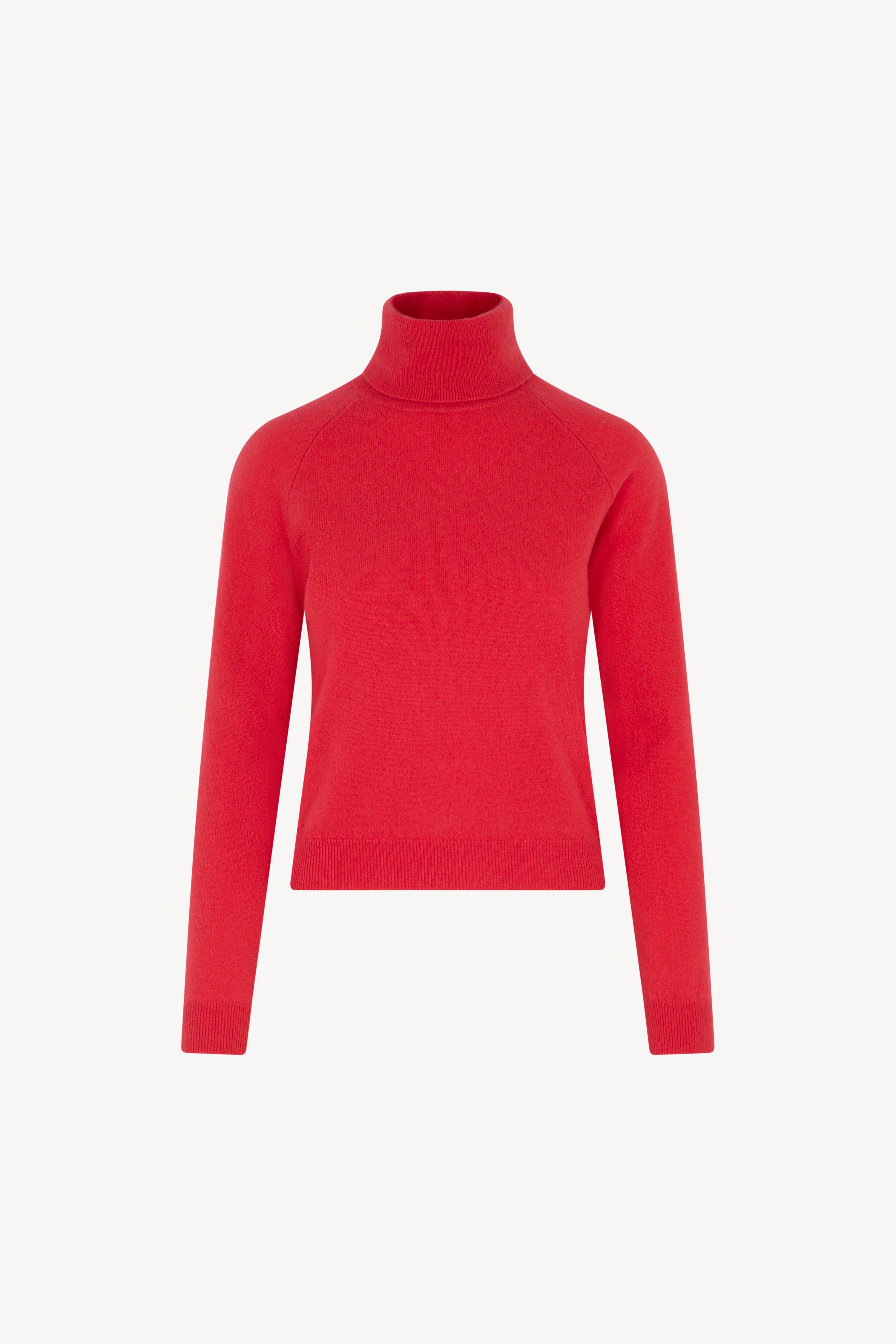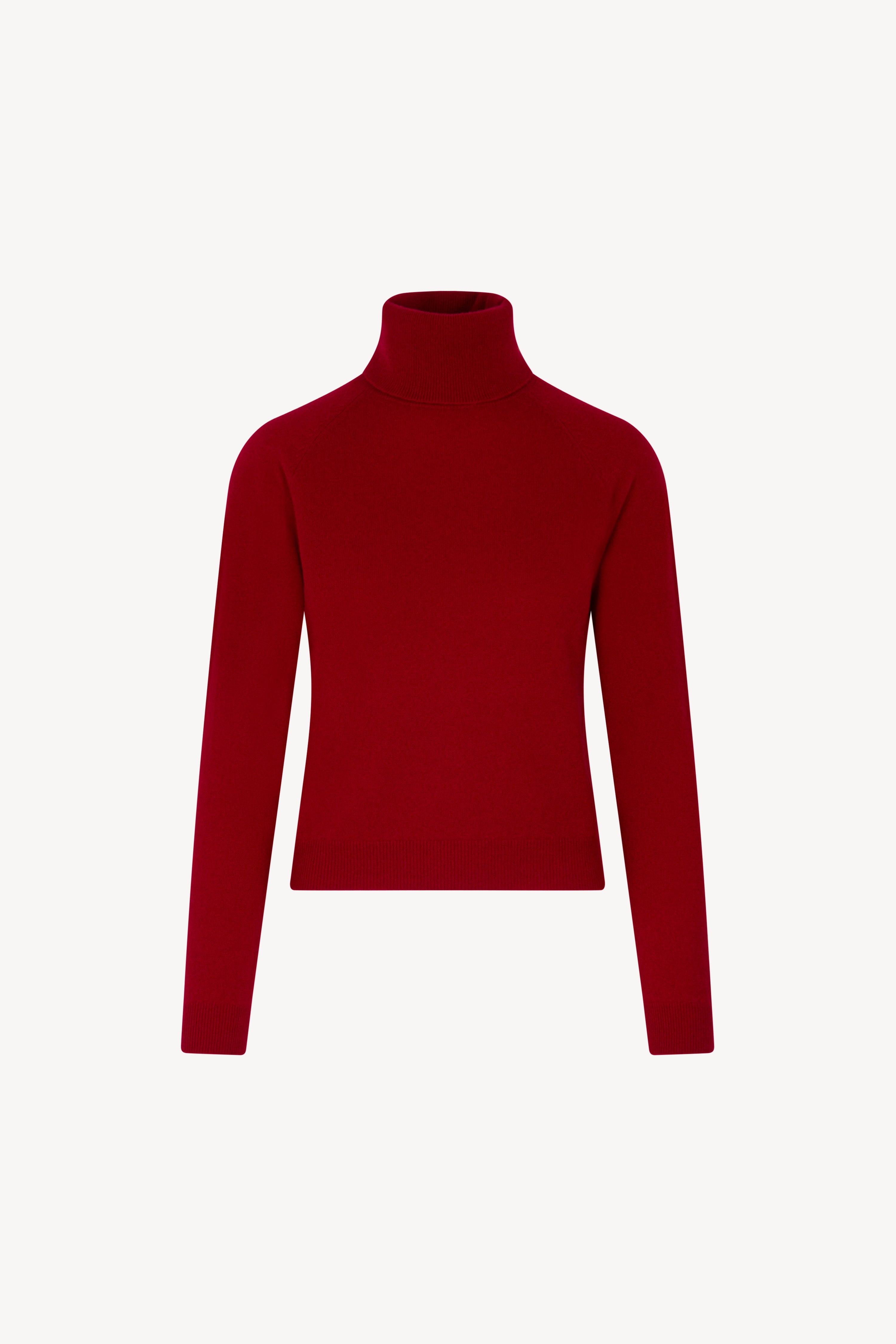 Maglia dolcevita con manica raglan con collo e fondi lavorati a coste. Vestibilità regolare. Il capo è realizzato con filato 100% Cashmere 2/27 1 filo.