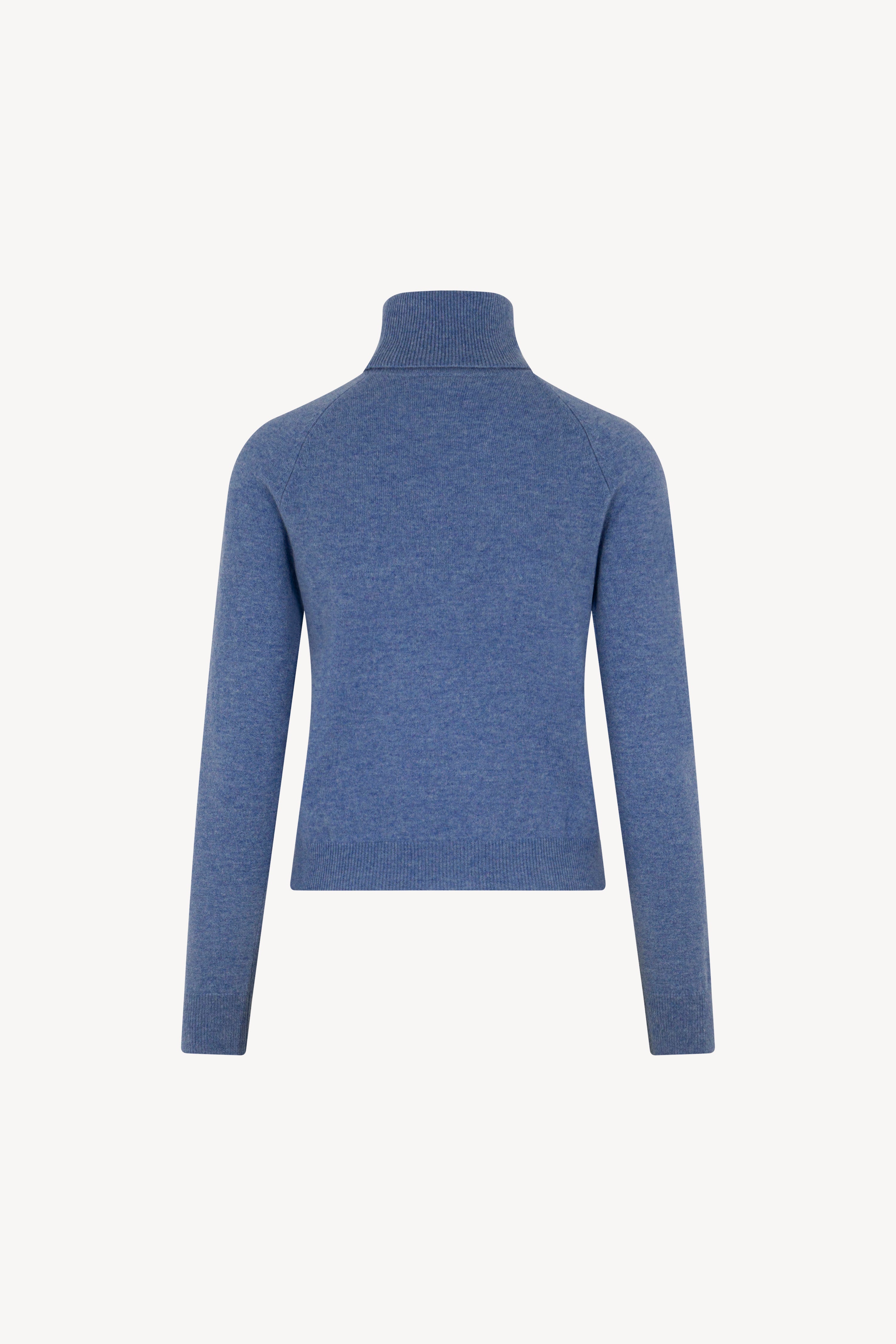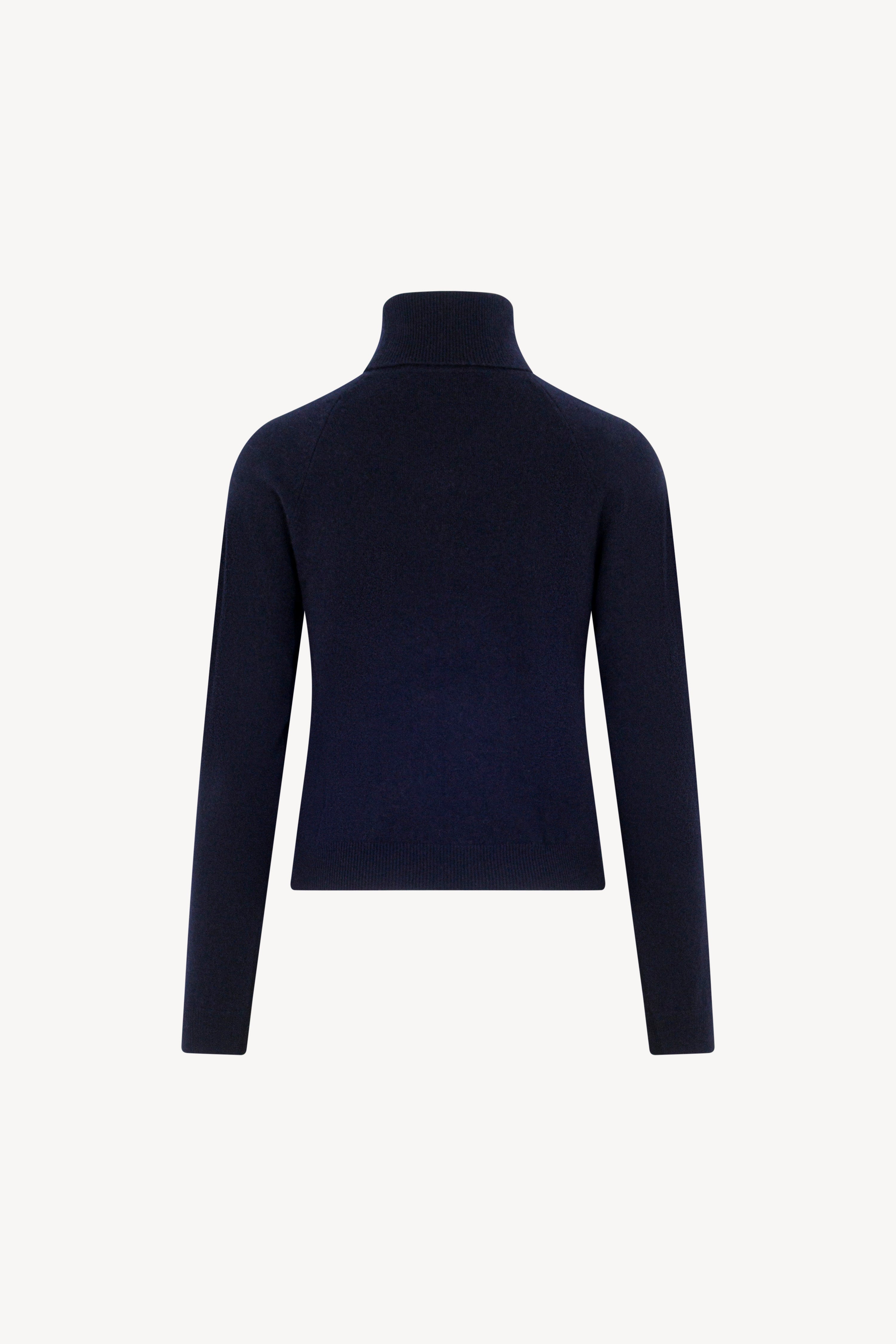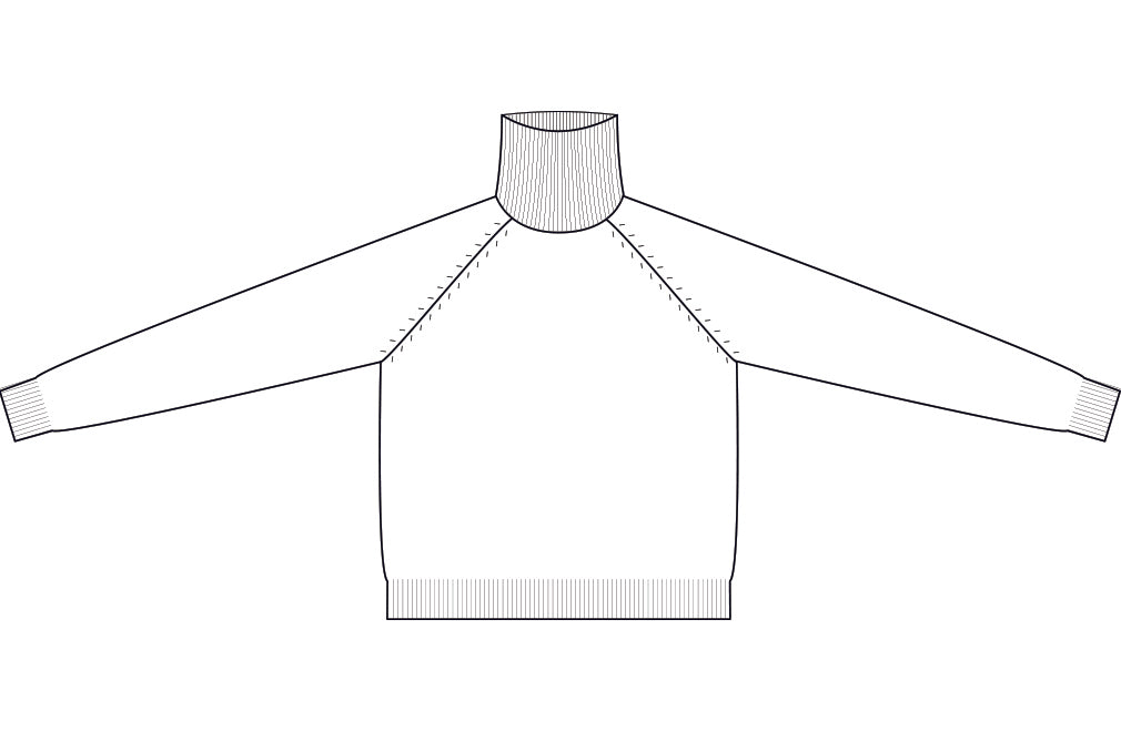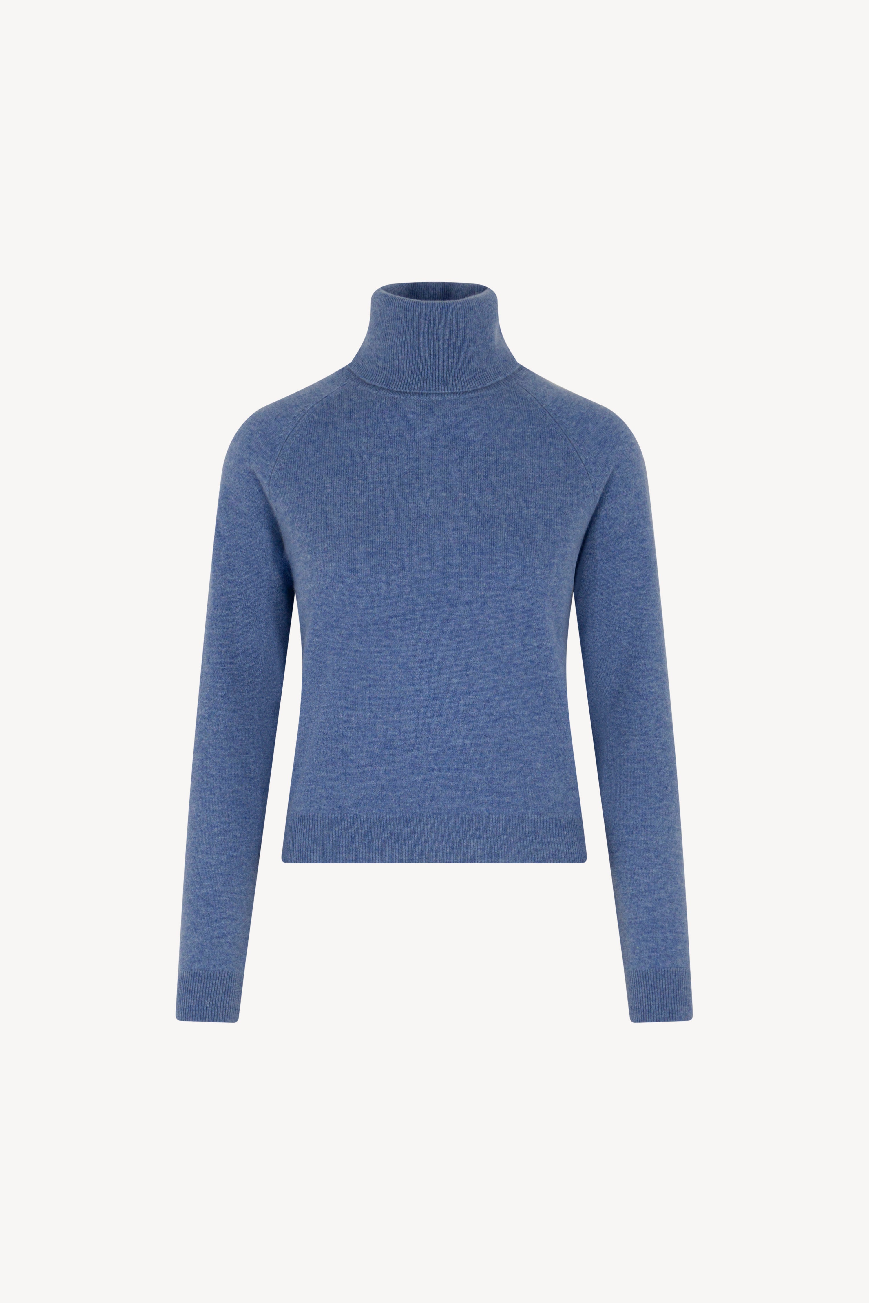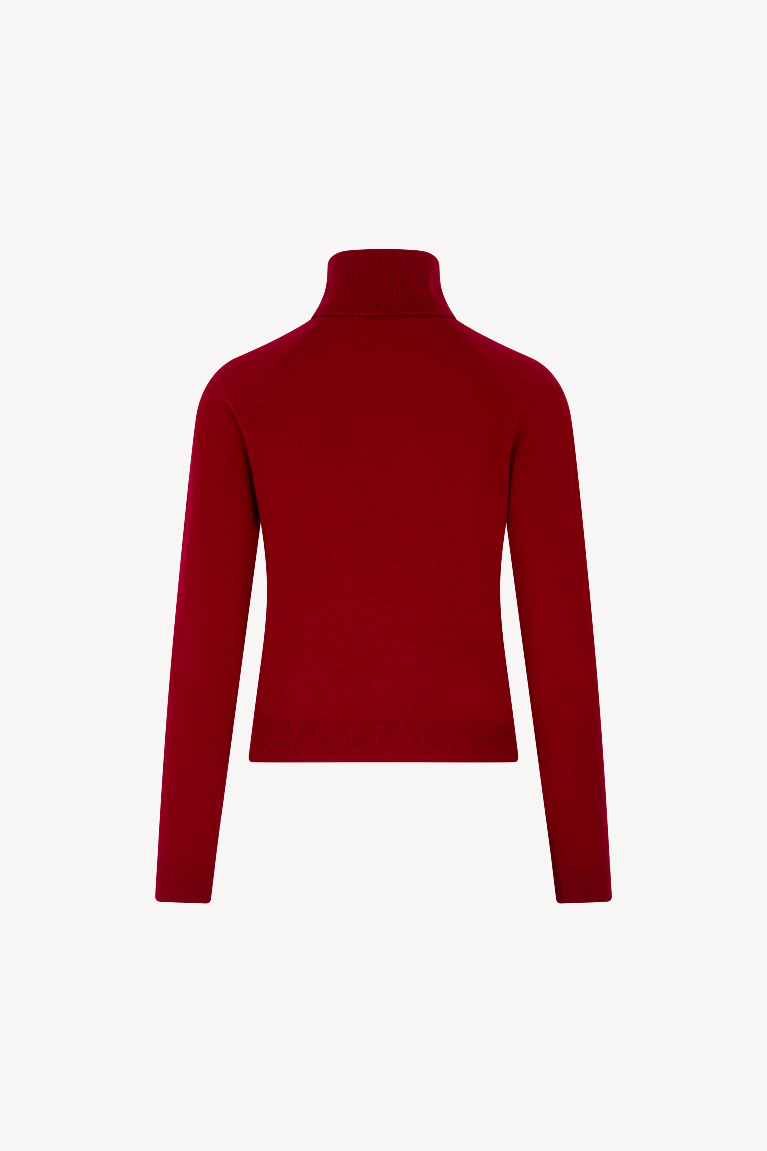 Maglia dolcevita con manica raglan con collo e fondi lavorati a coste. Vestibilità regolare. Il capo è realizzato con filato 100% Cashmere 2/27 1 filo.