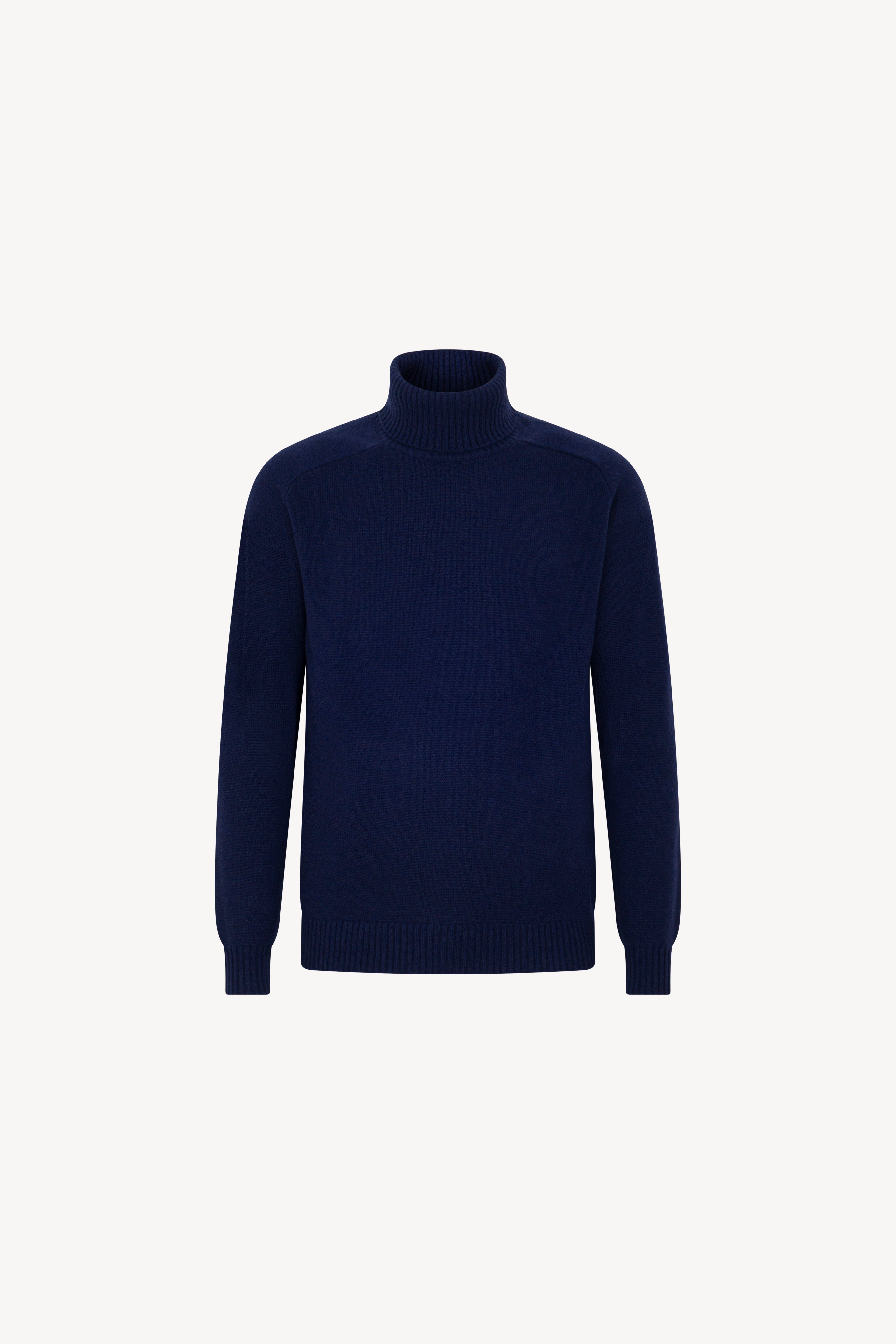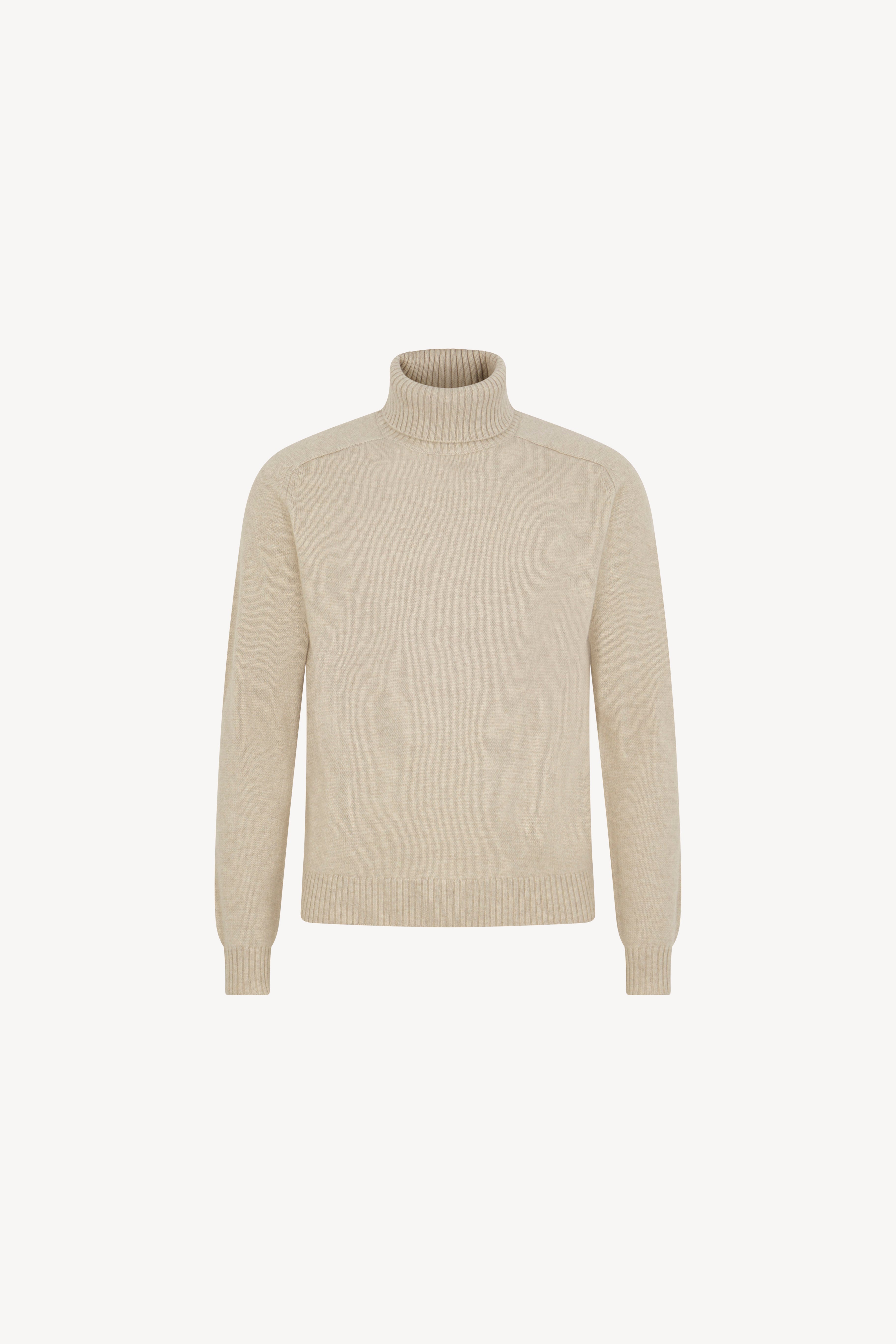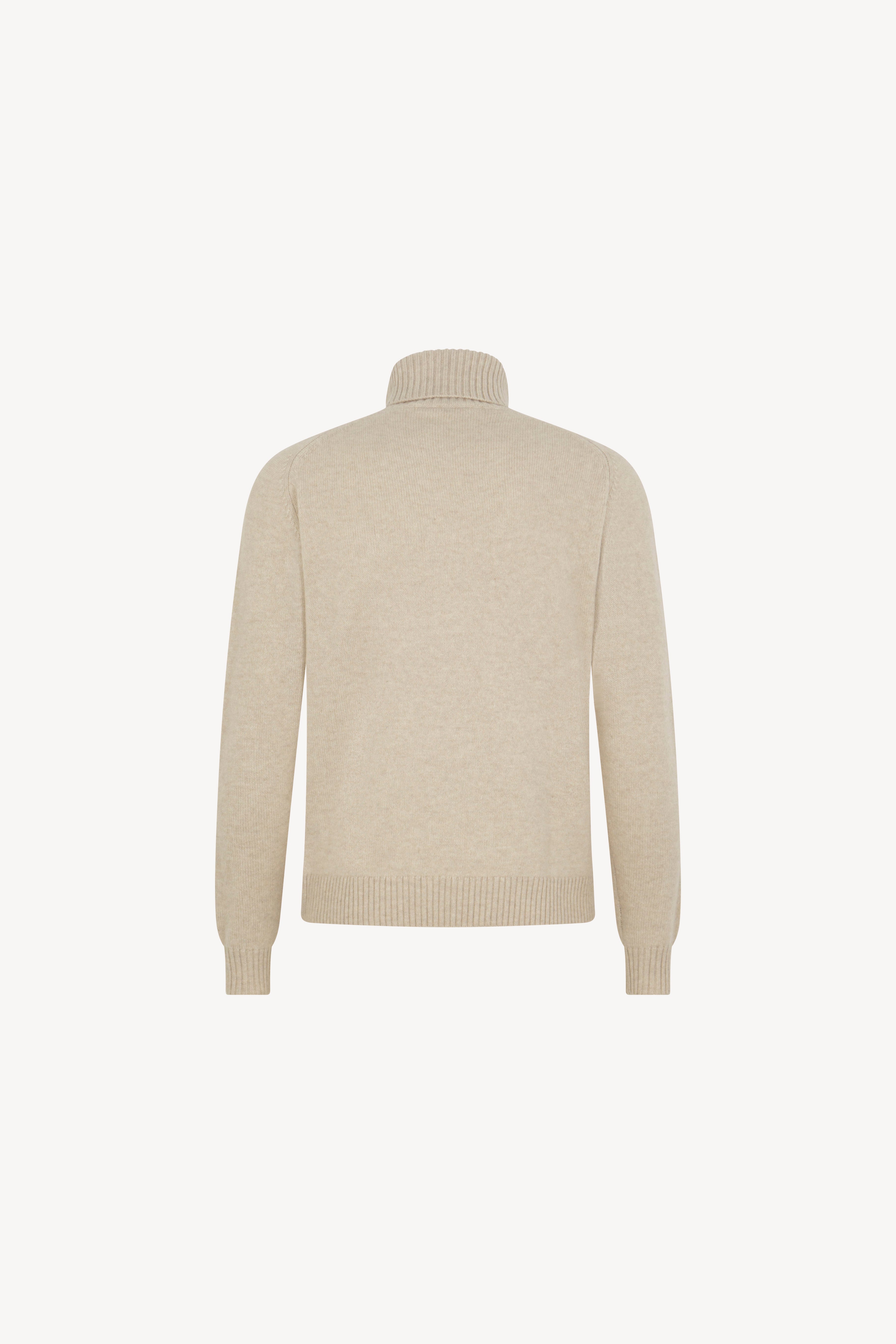 Maglia dolcevita con manica a martello. Collo e fondi lavorati a coste. La vestibilità è regolare. Il capo è realizzato con filato 100% Cashmere 2/27 2 fili.