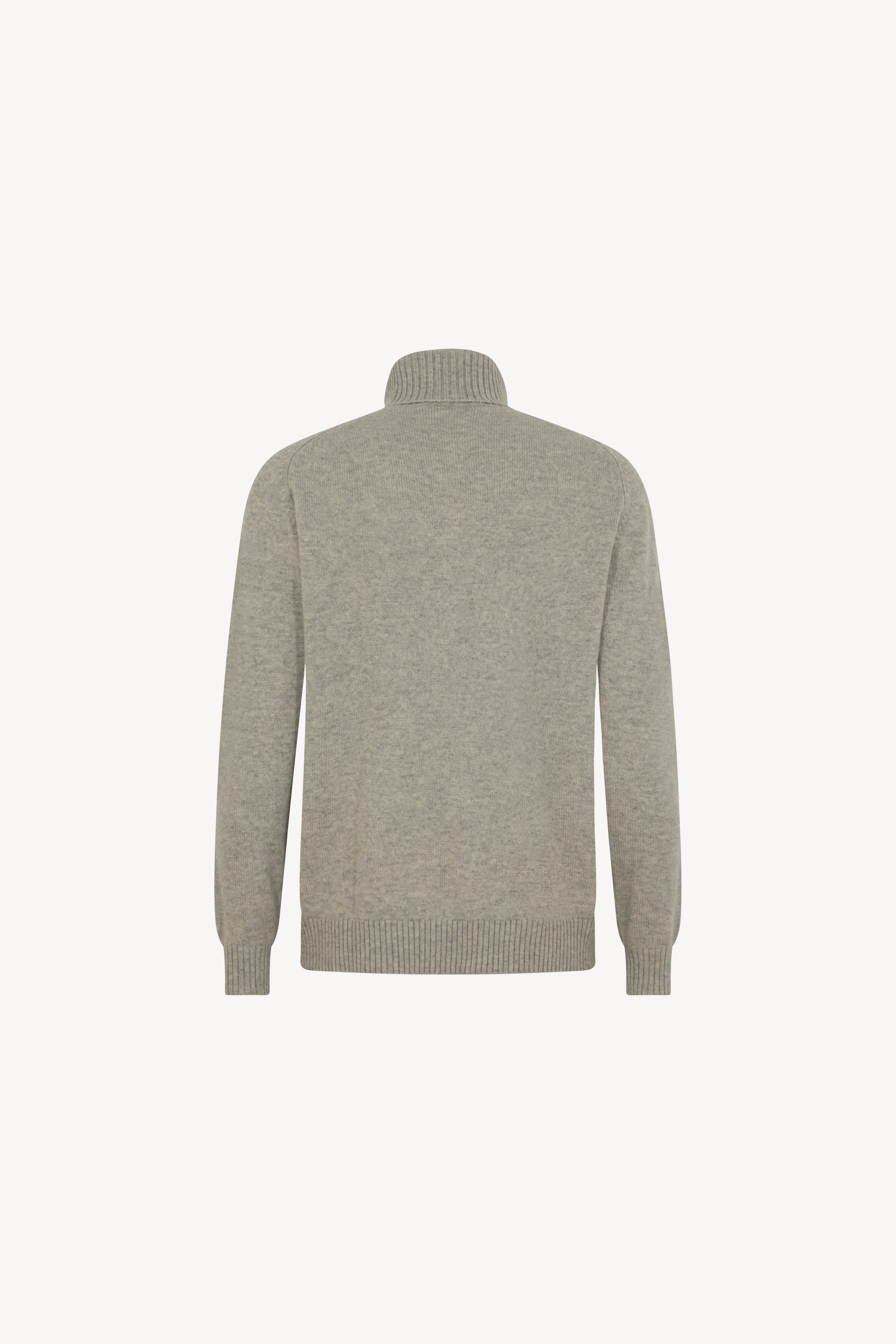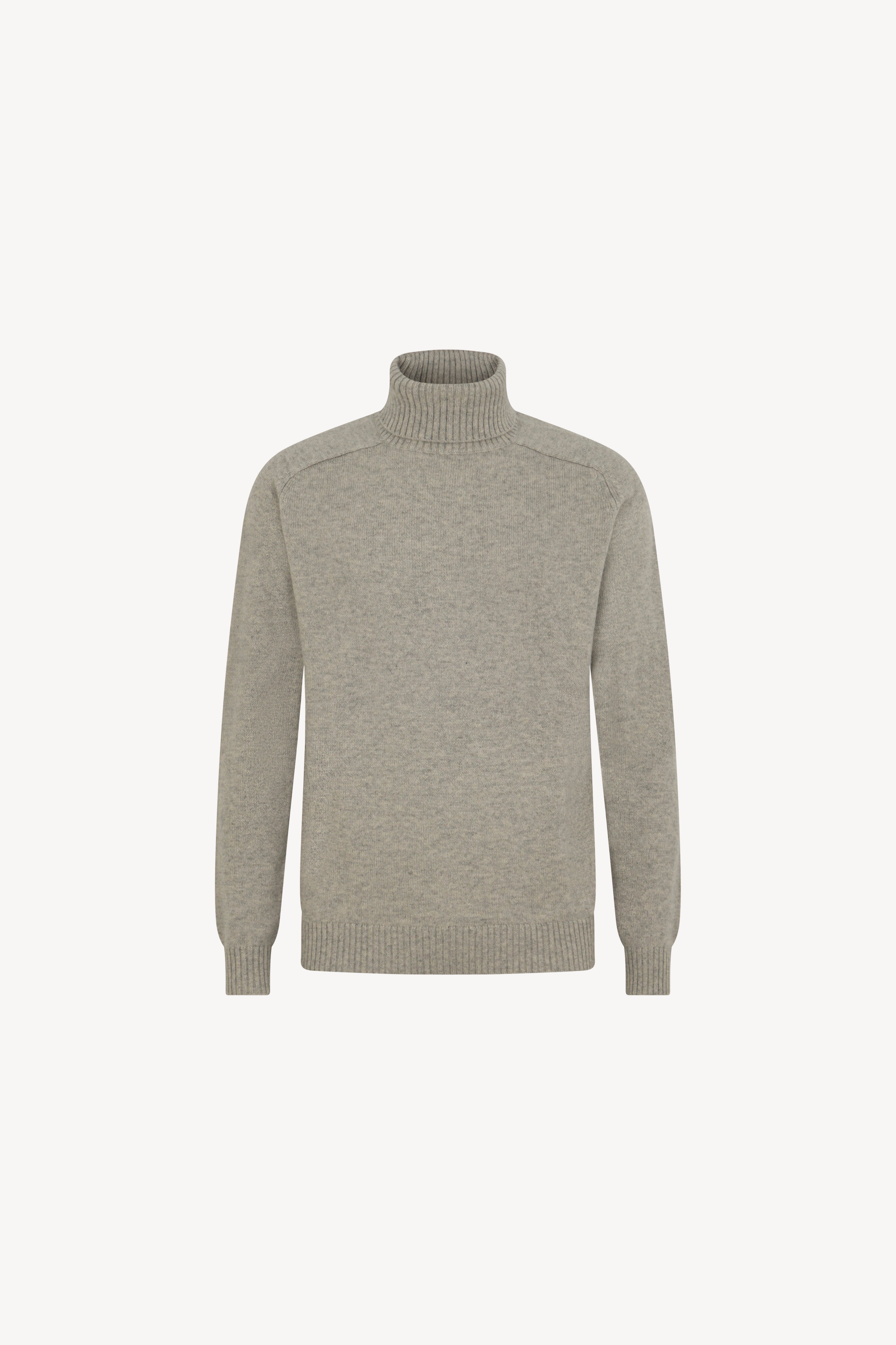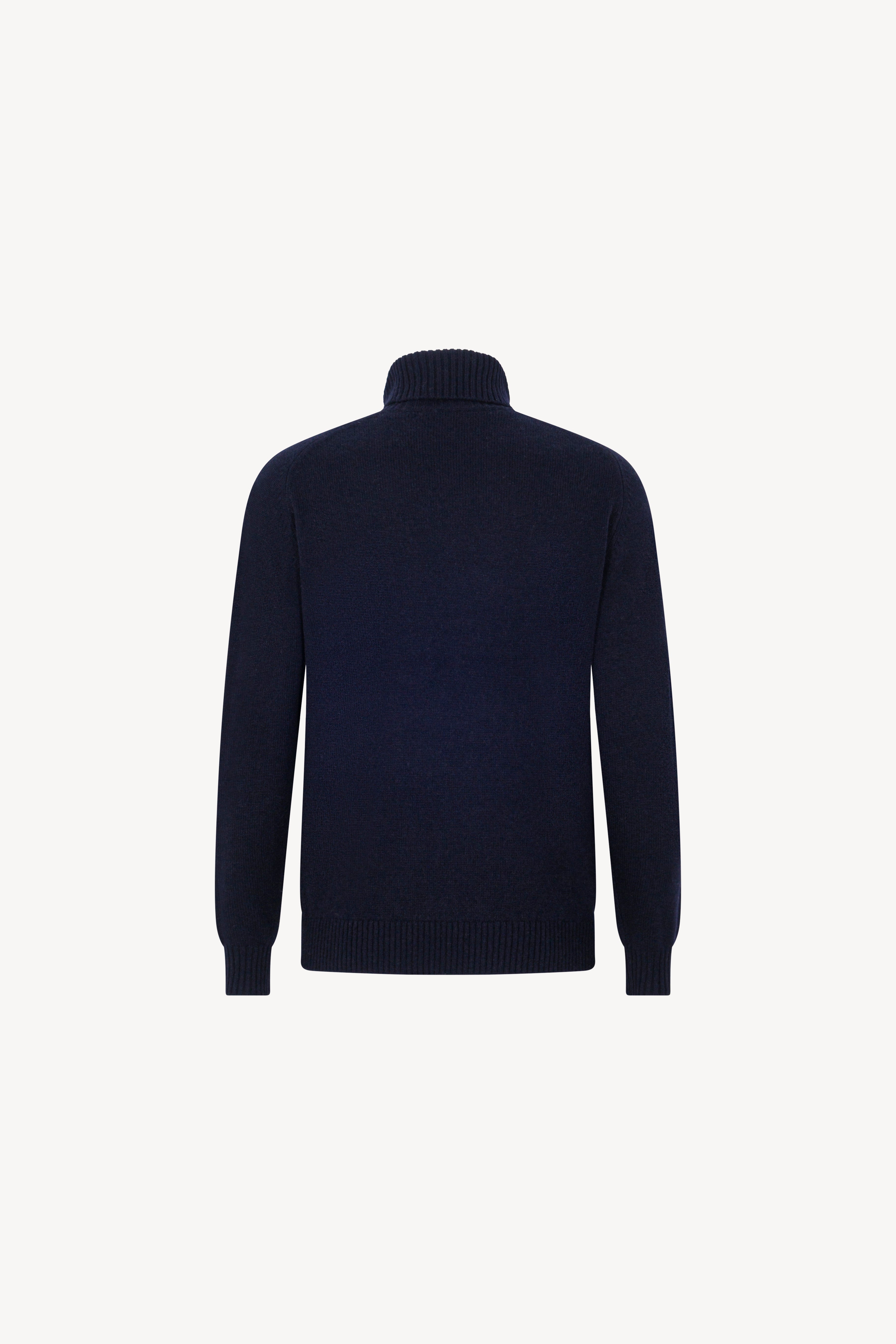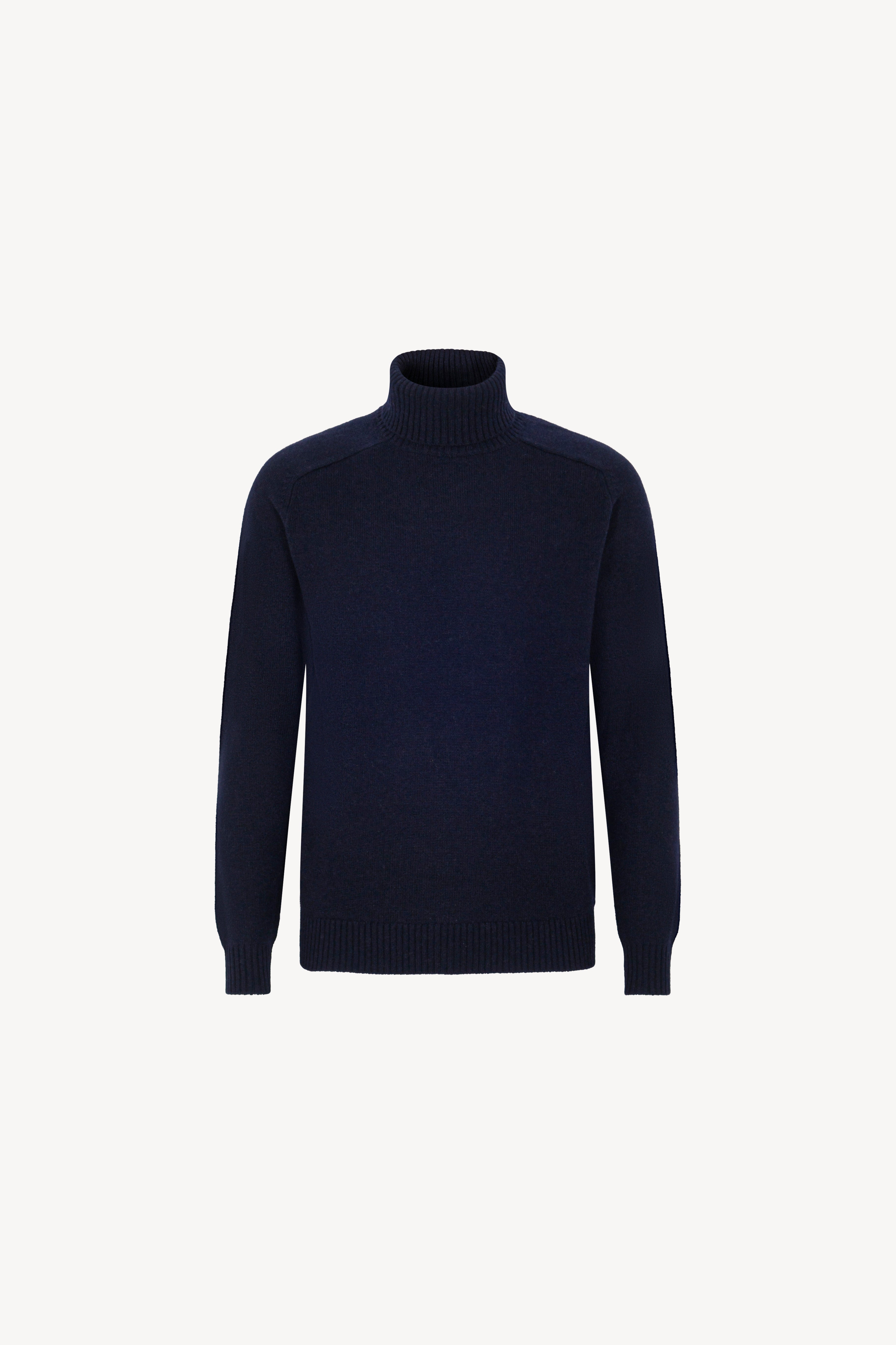 Maglia dolcevita con manica a martello. Collo e fondi lavorati a coste. La vestibilità è regolare. Il capo è realizzato con filato 100% Cashmere 2/27 2 fili.