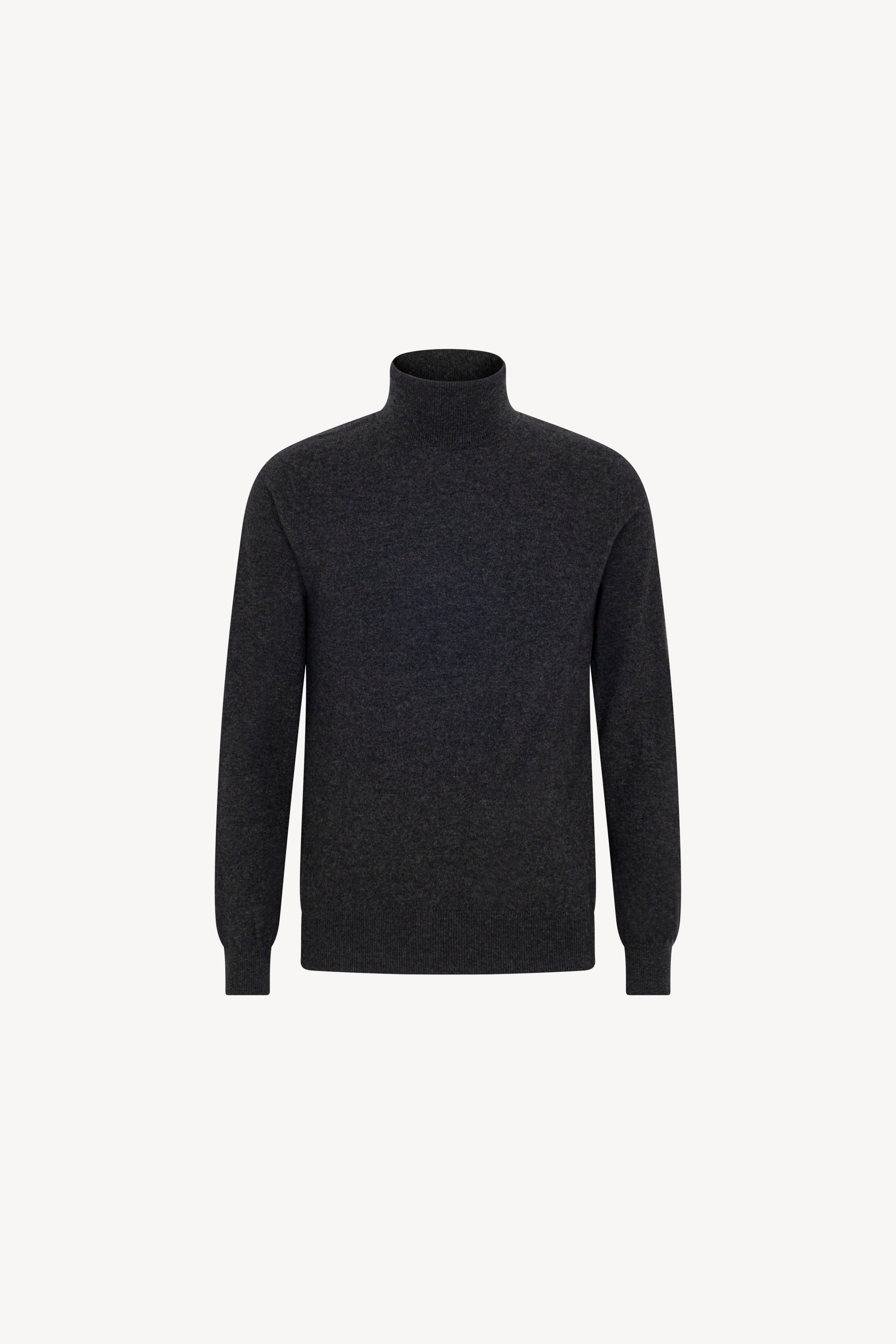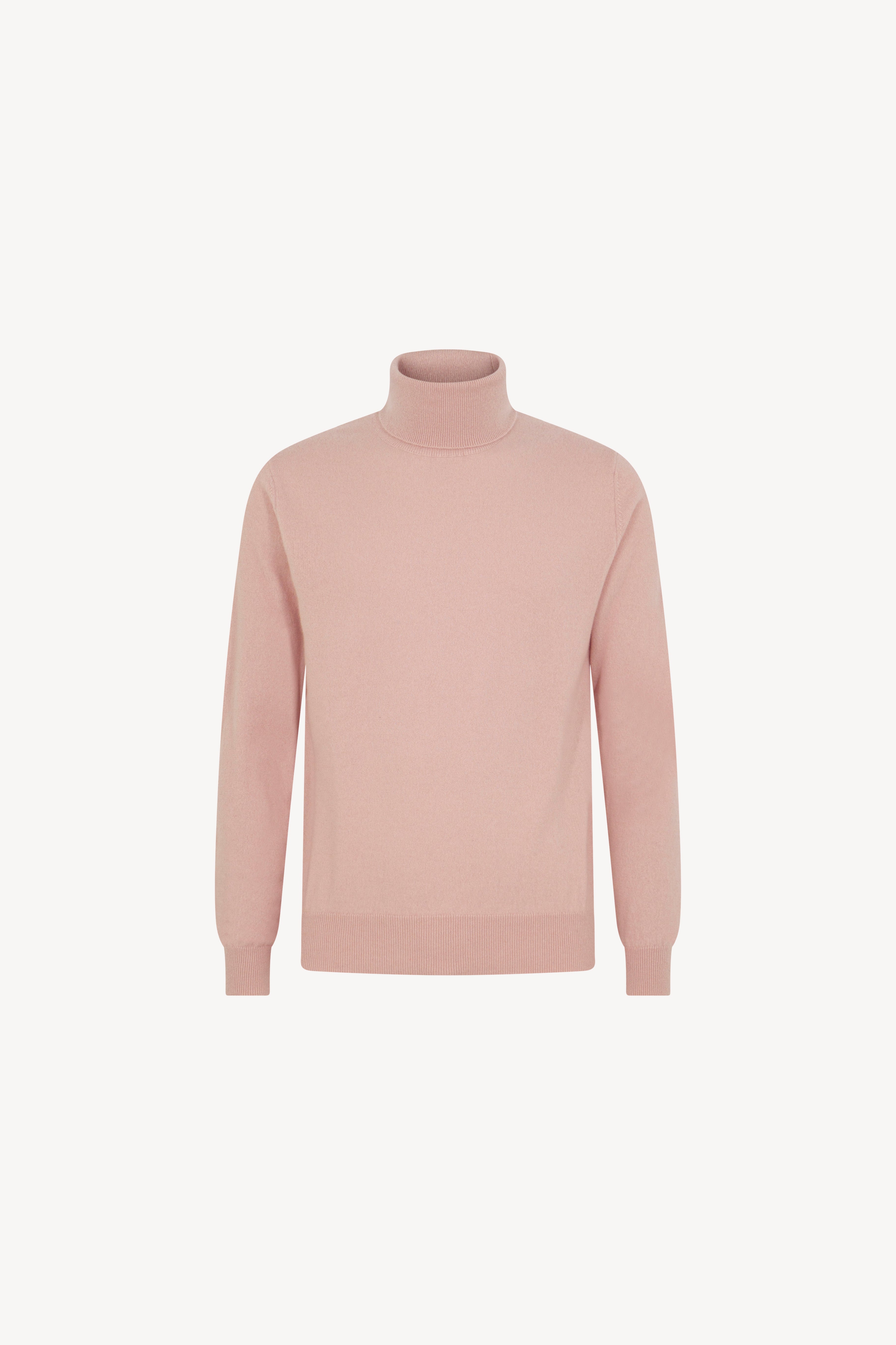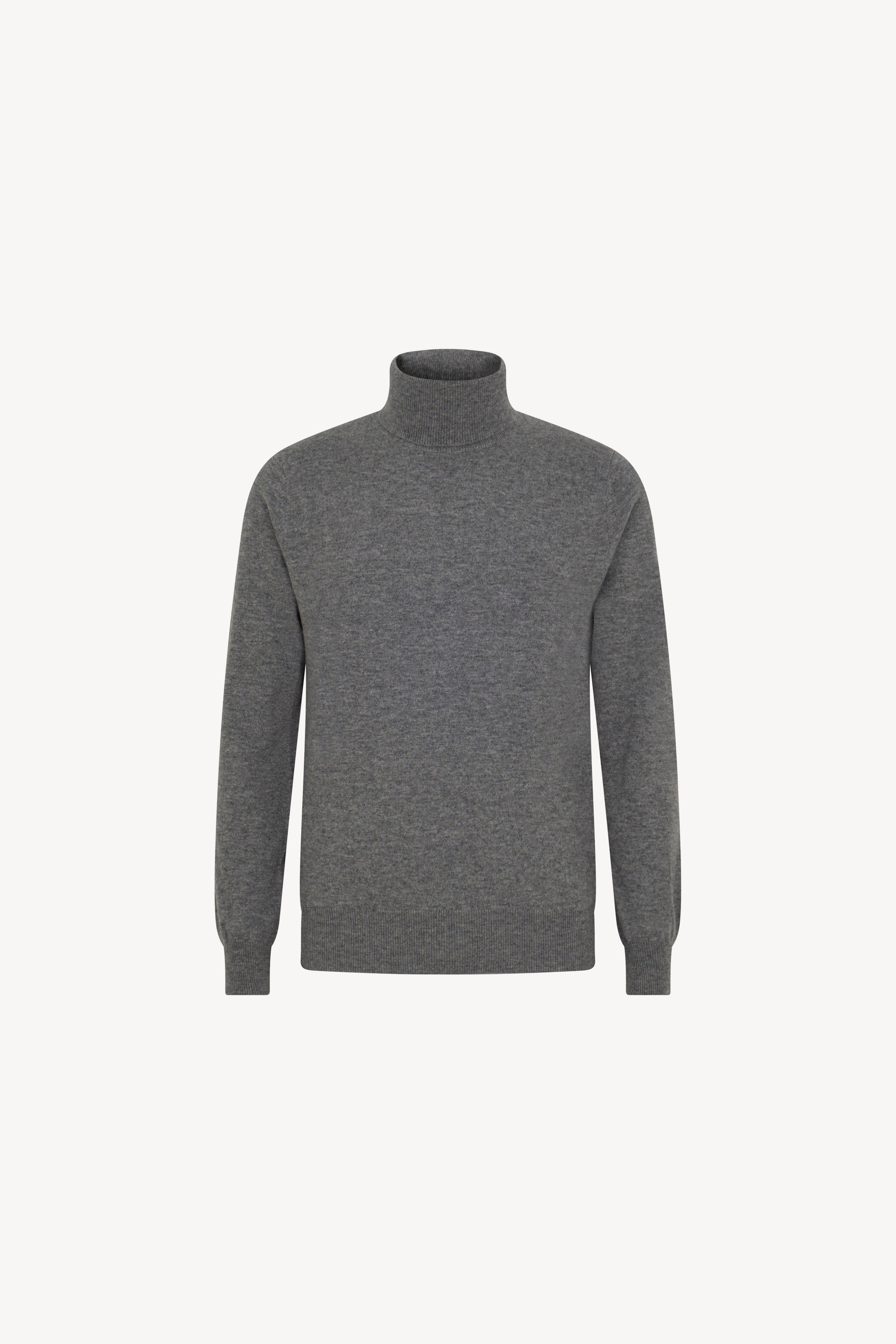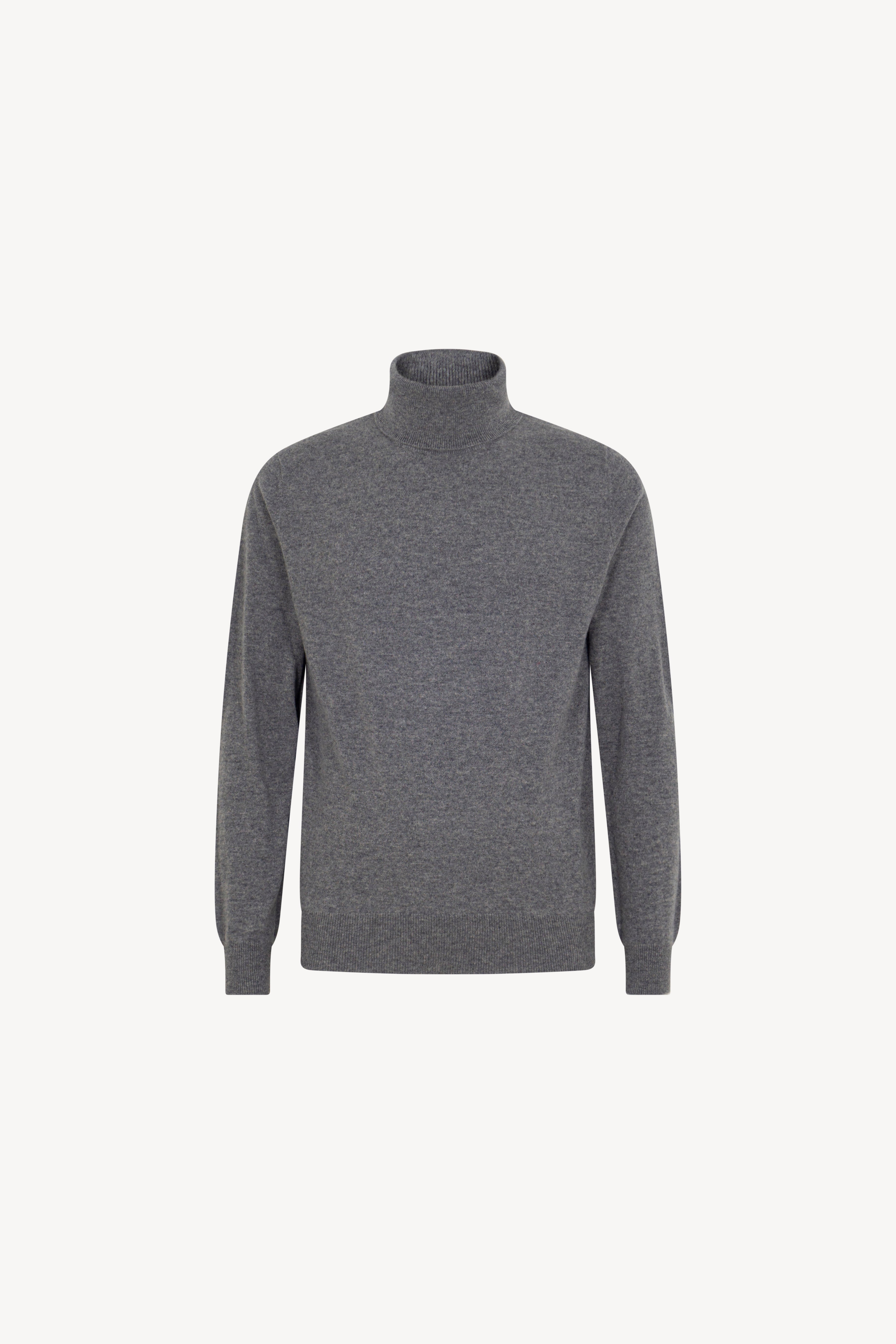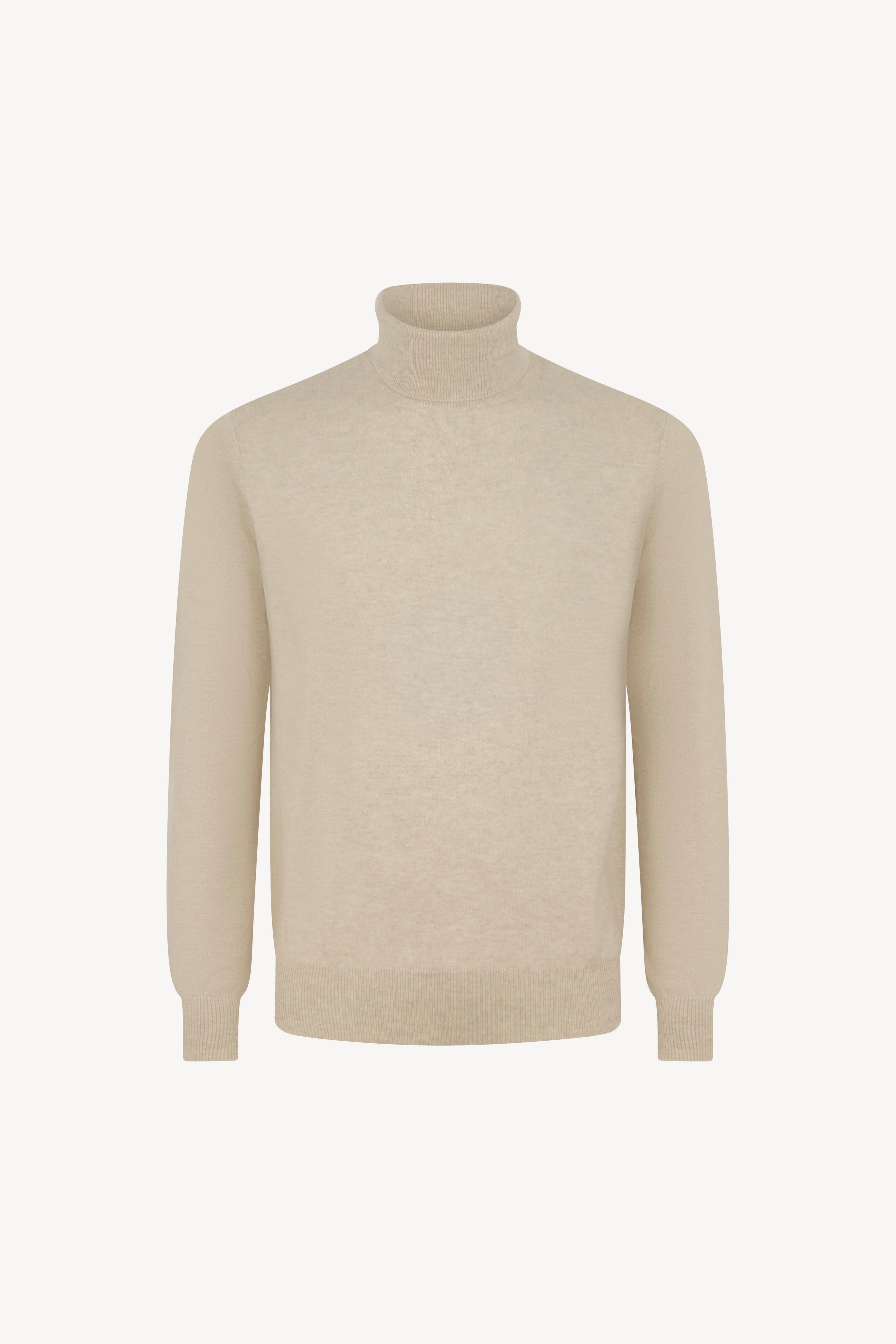Pull dolcevita in maglia rasata con collo e profili lavorati a costine. La vestibilità è regolare. Il capo è realizzato con filato 100% Cashmere 2/27 1 filo.