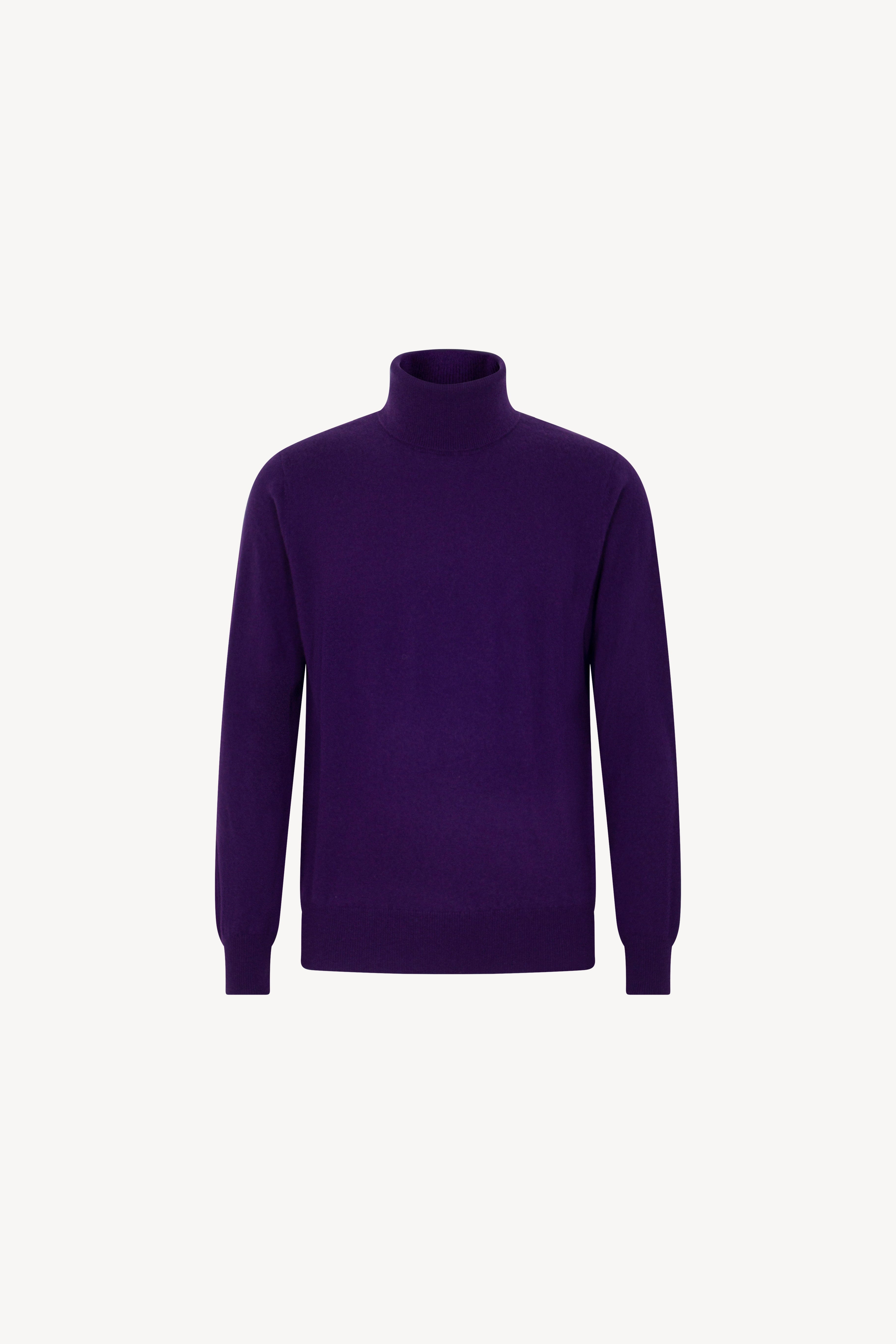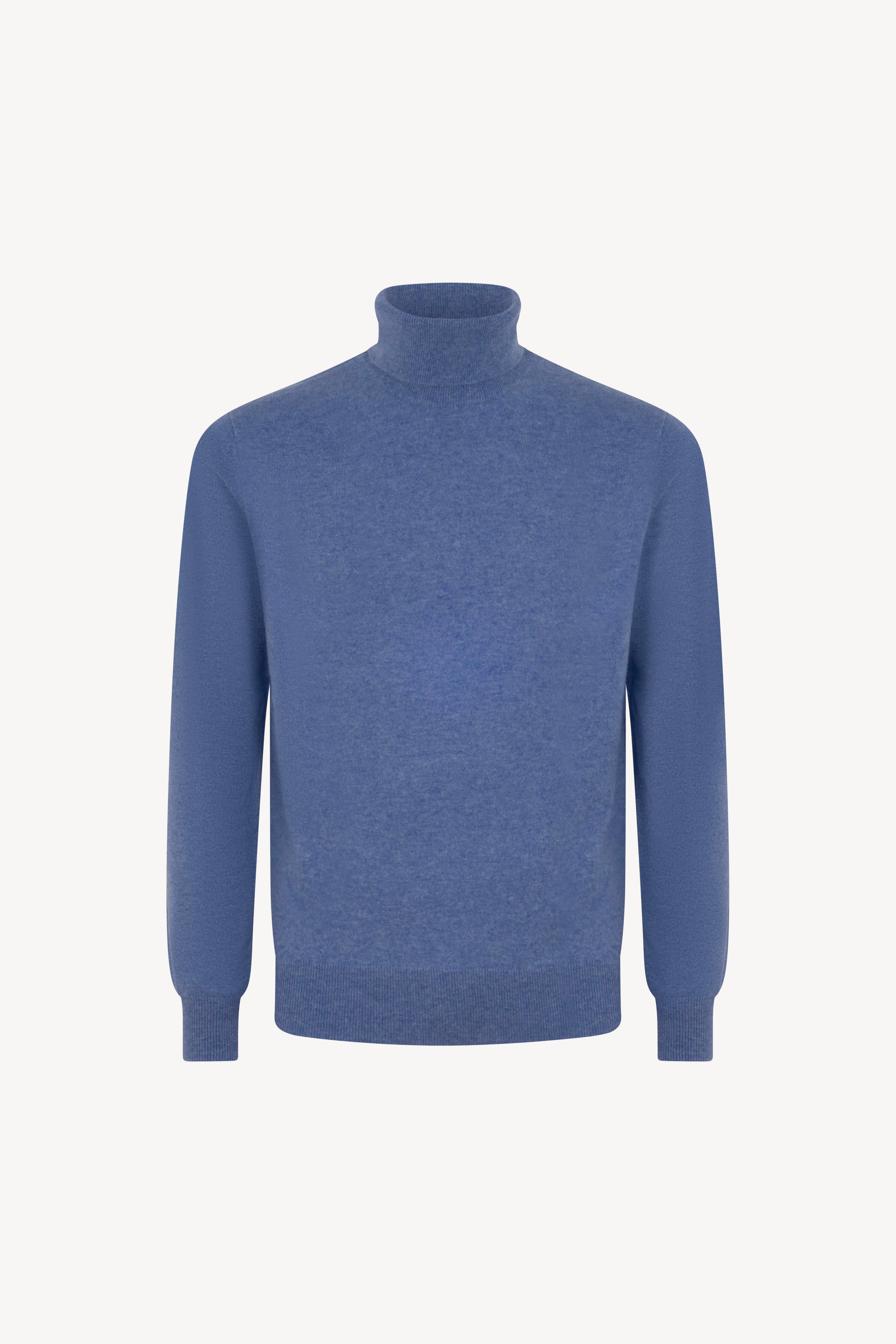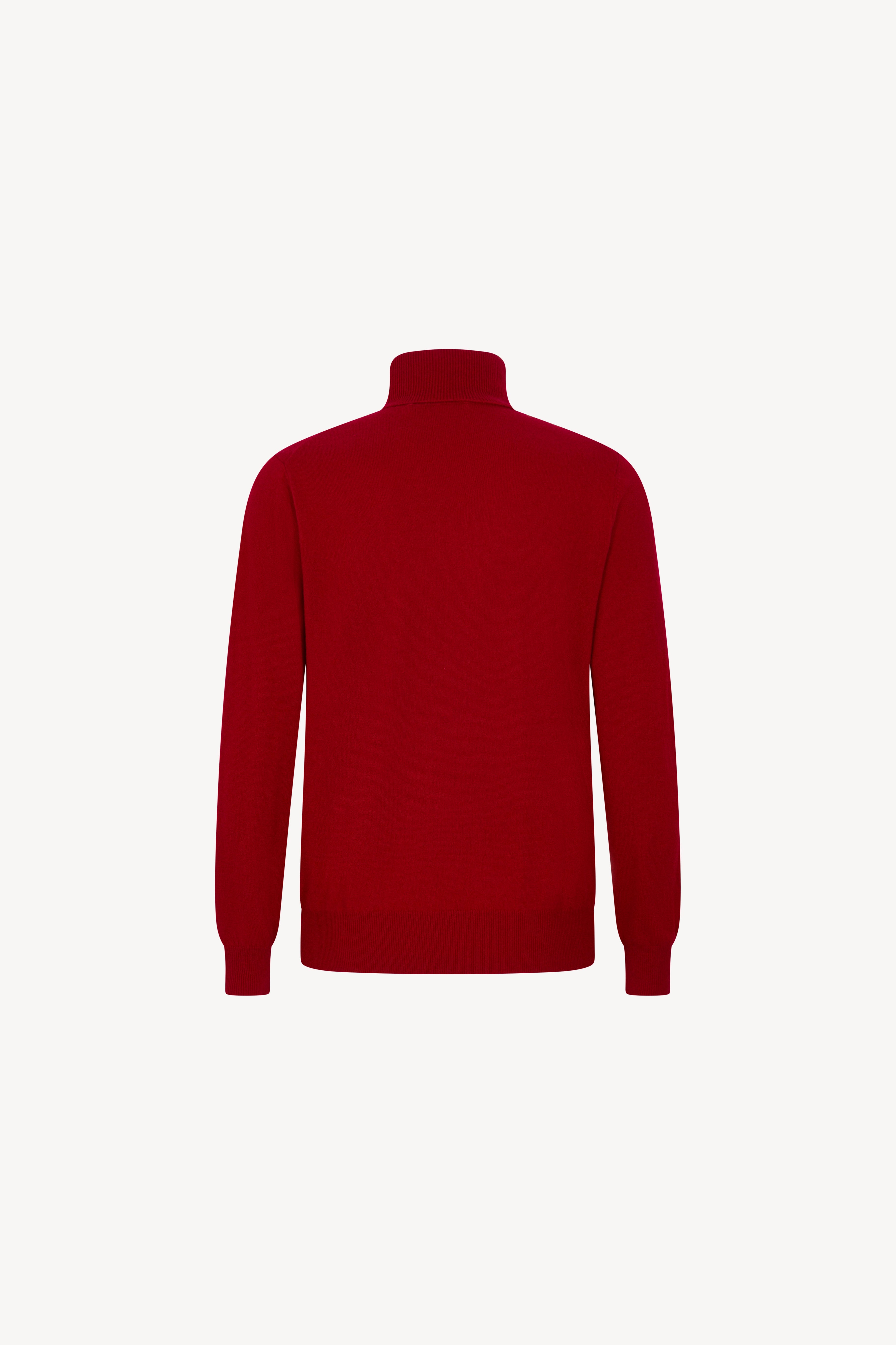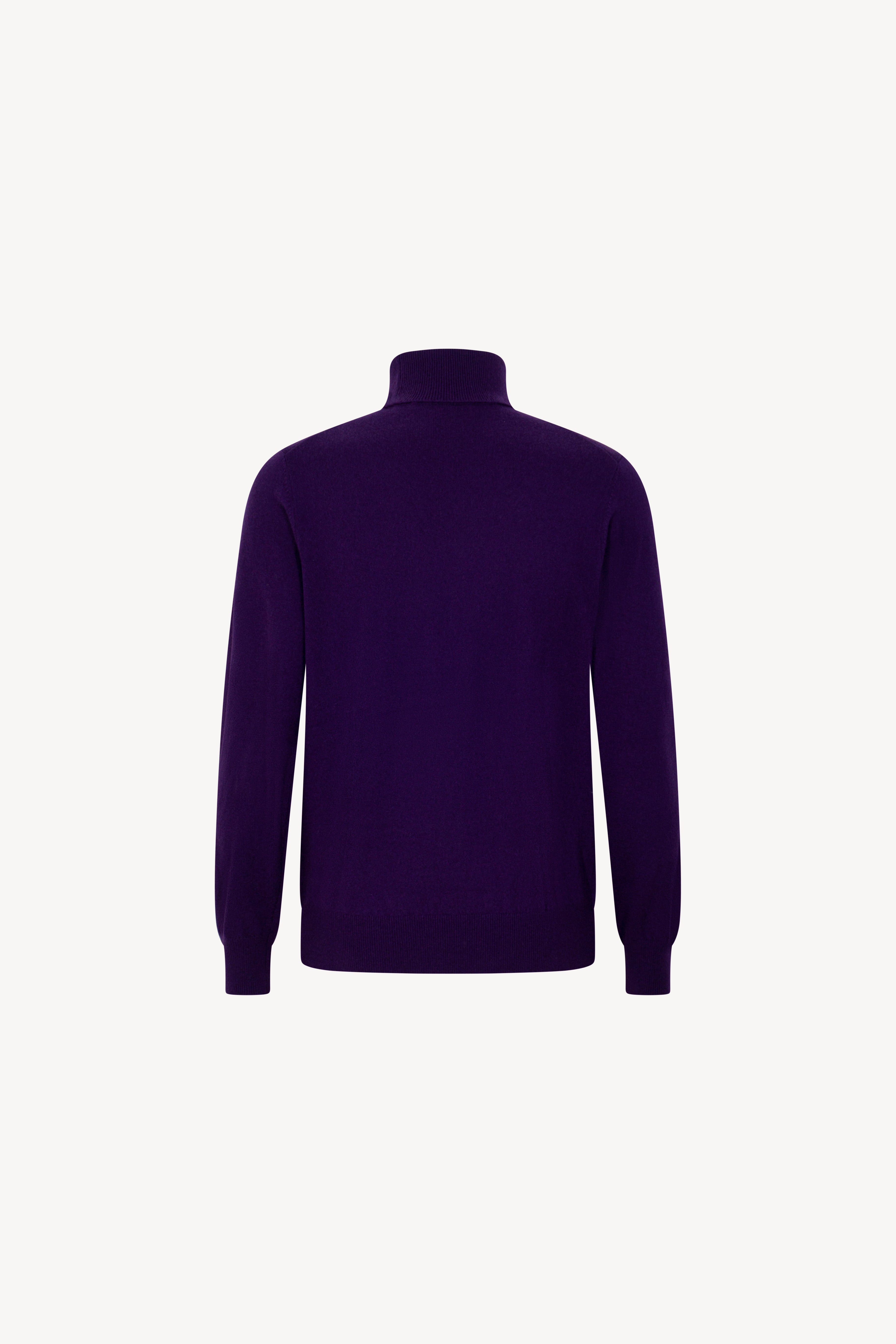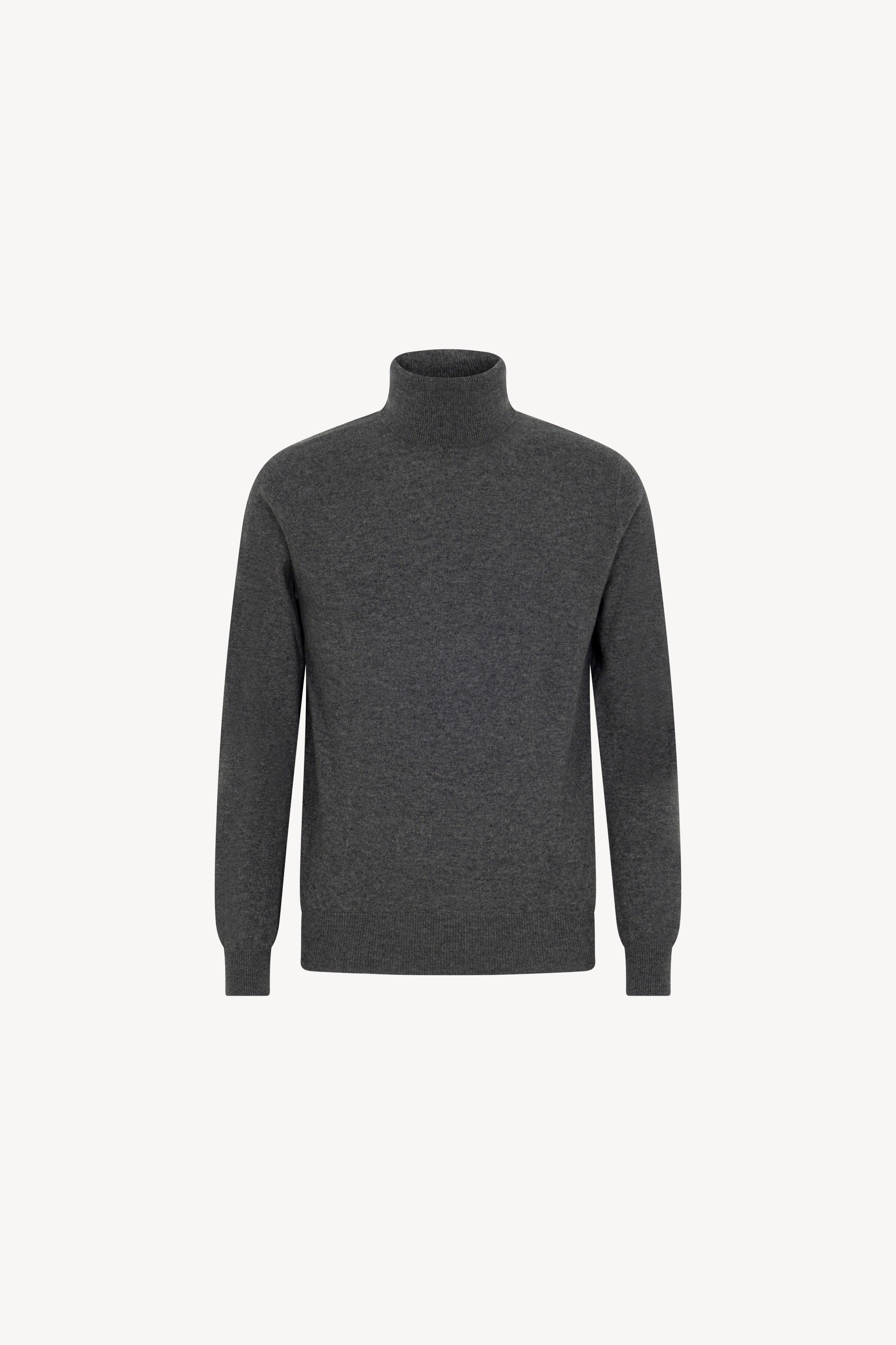 Pull dolcevita in maglia rasata con collo e profili lavorati a costine. La vestibilità è regolare. Il capo è realizzato con filato 100% Cashmere 2/27 1 filo.