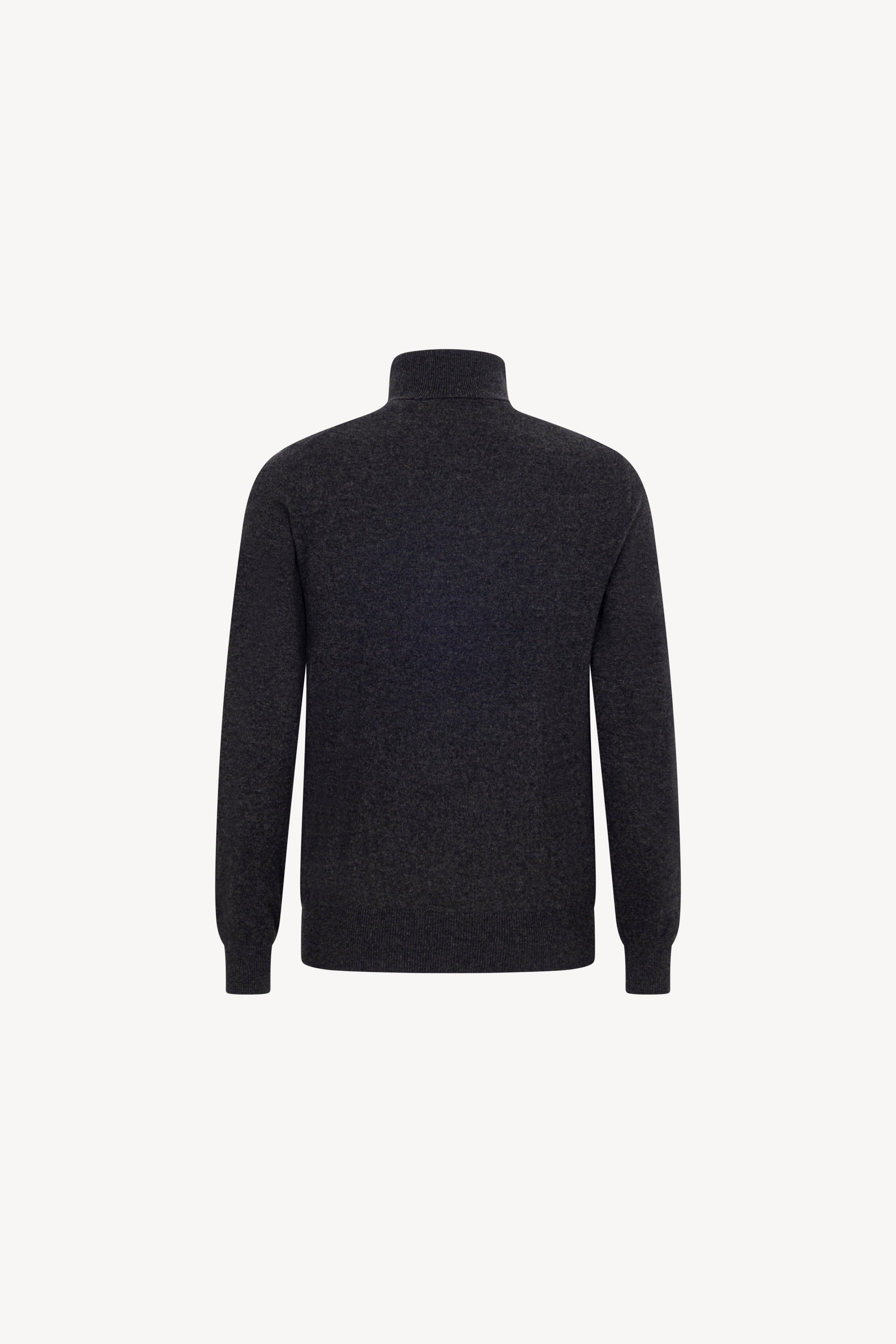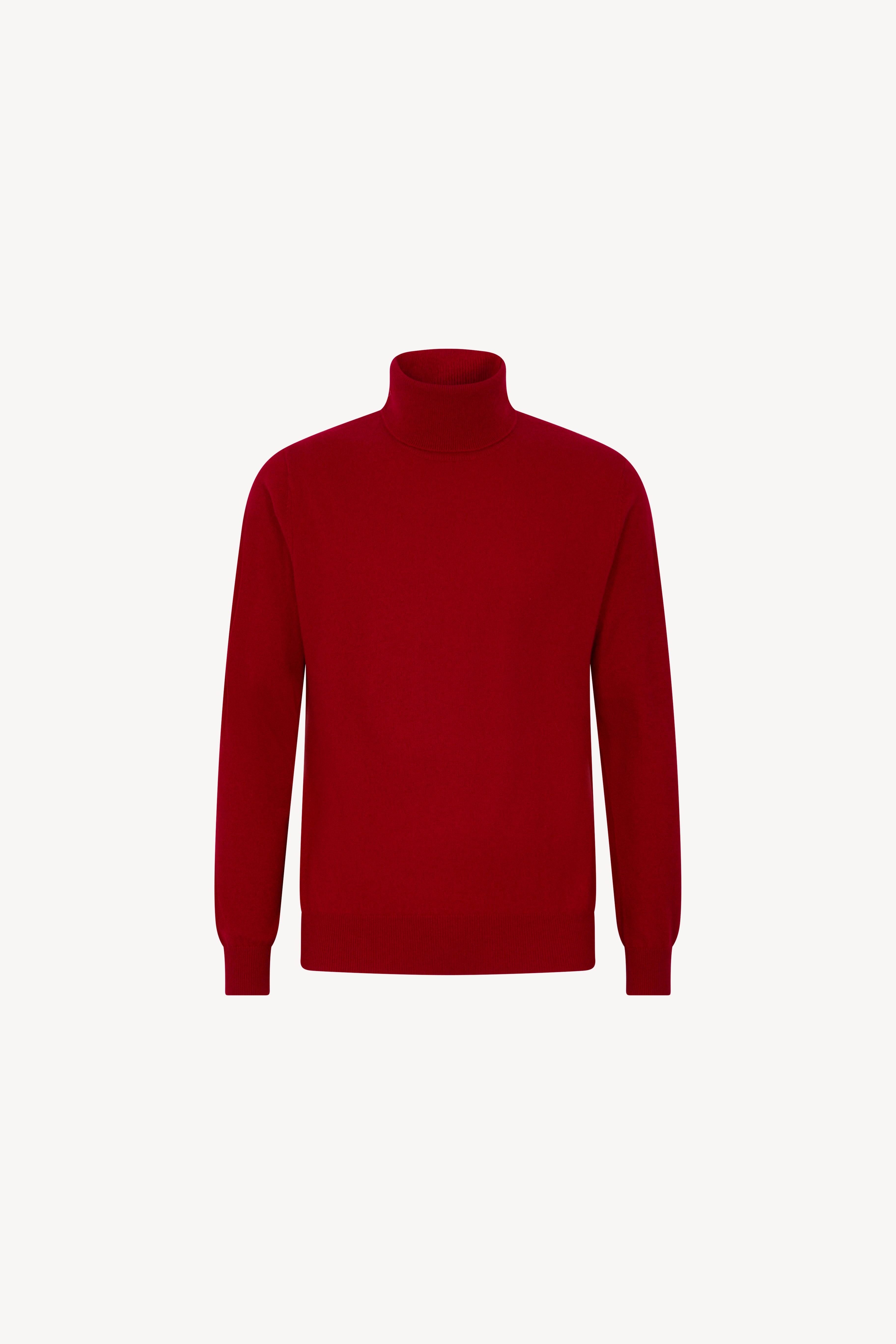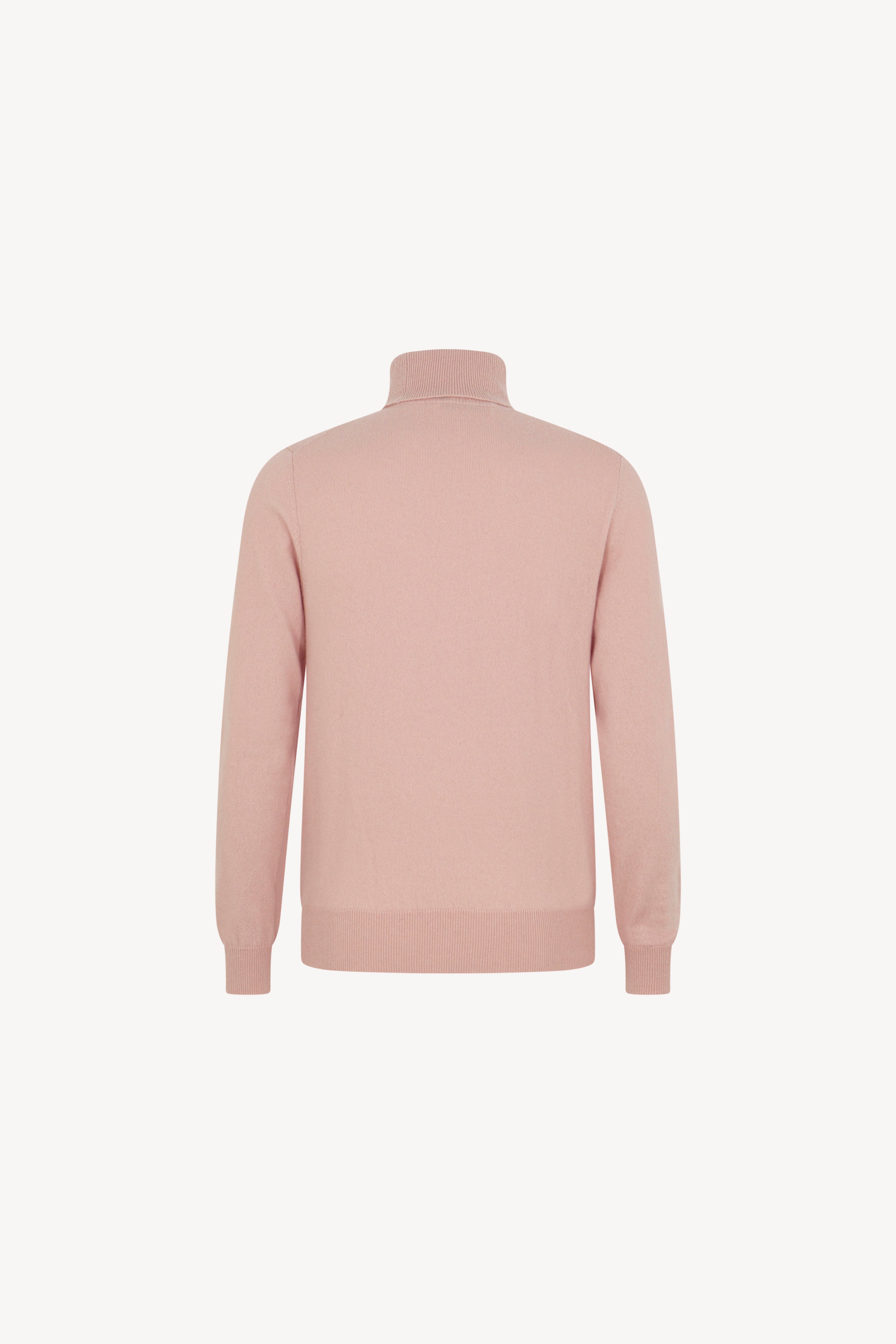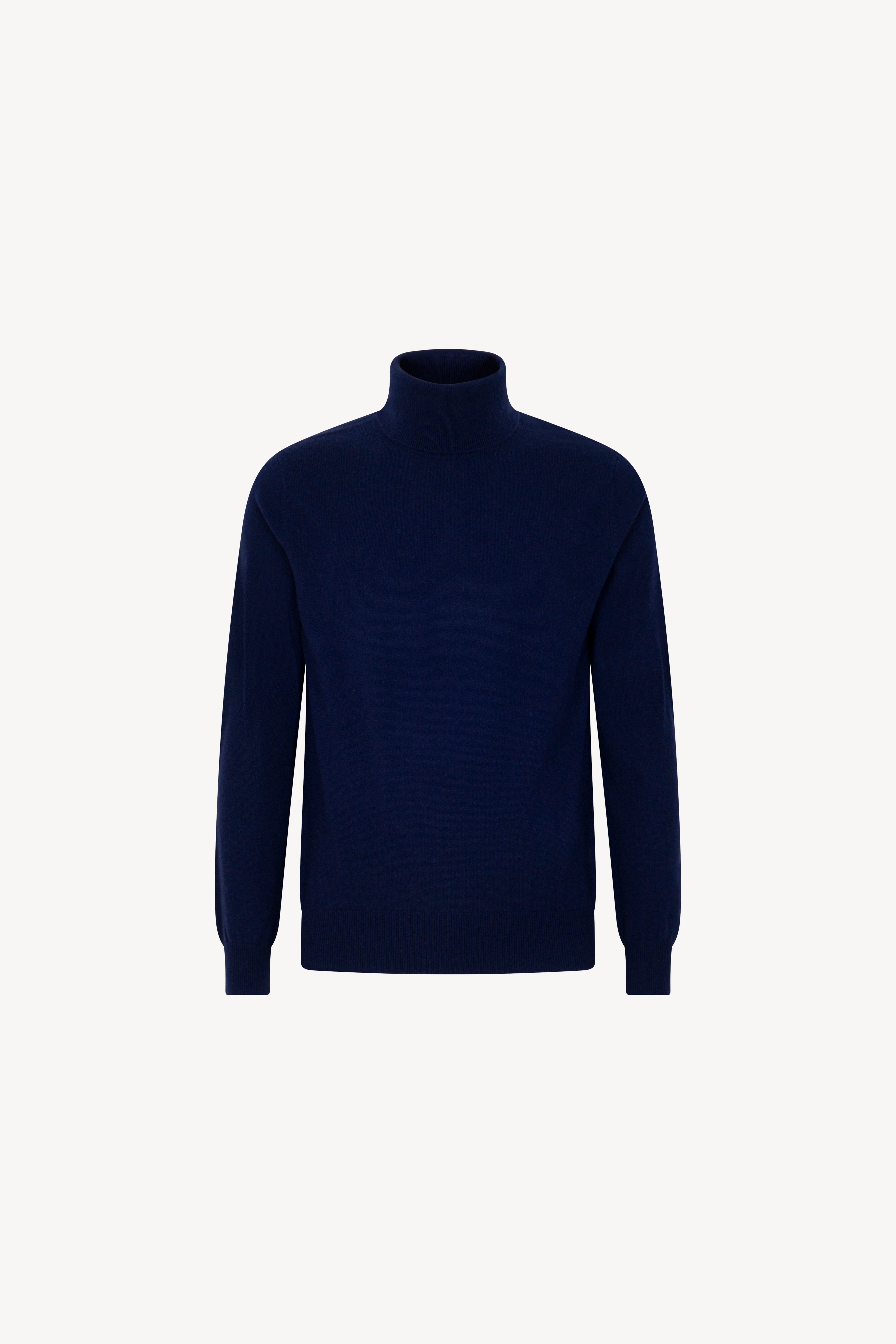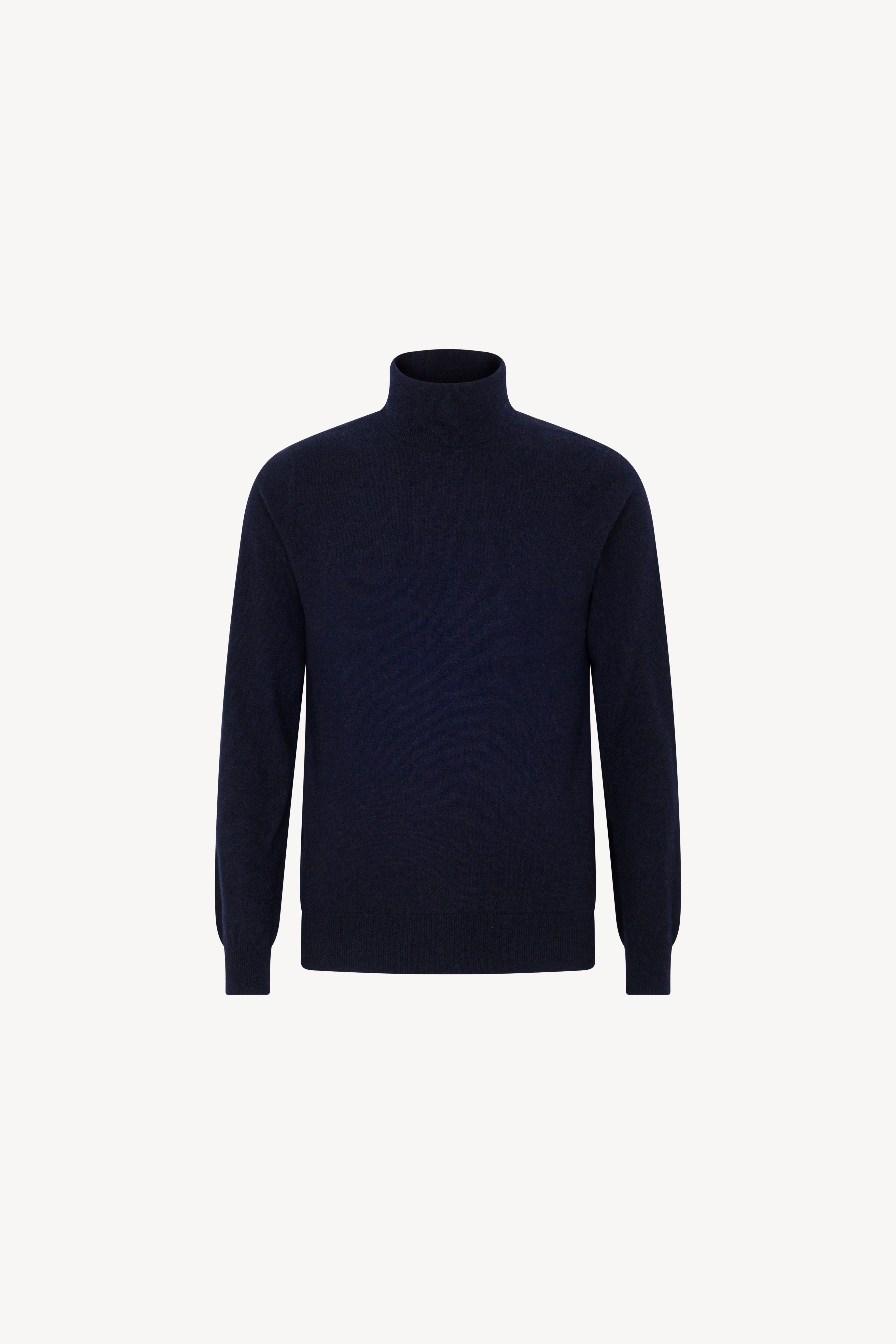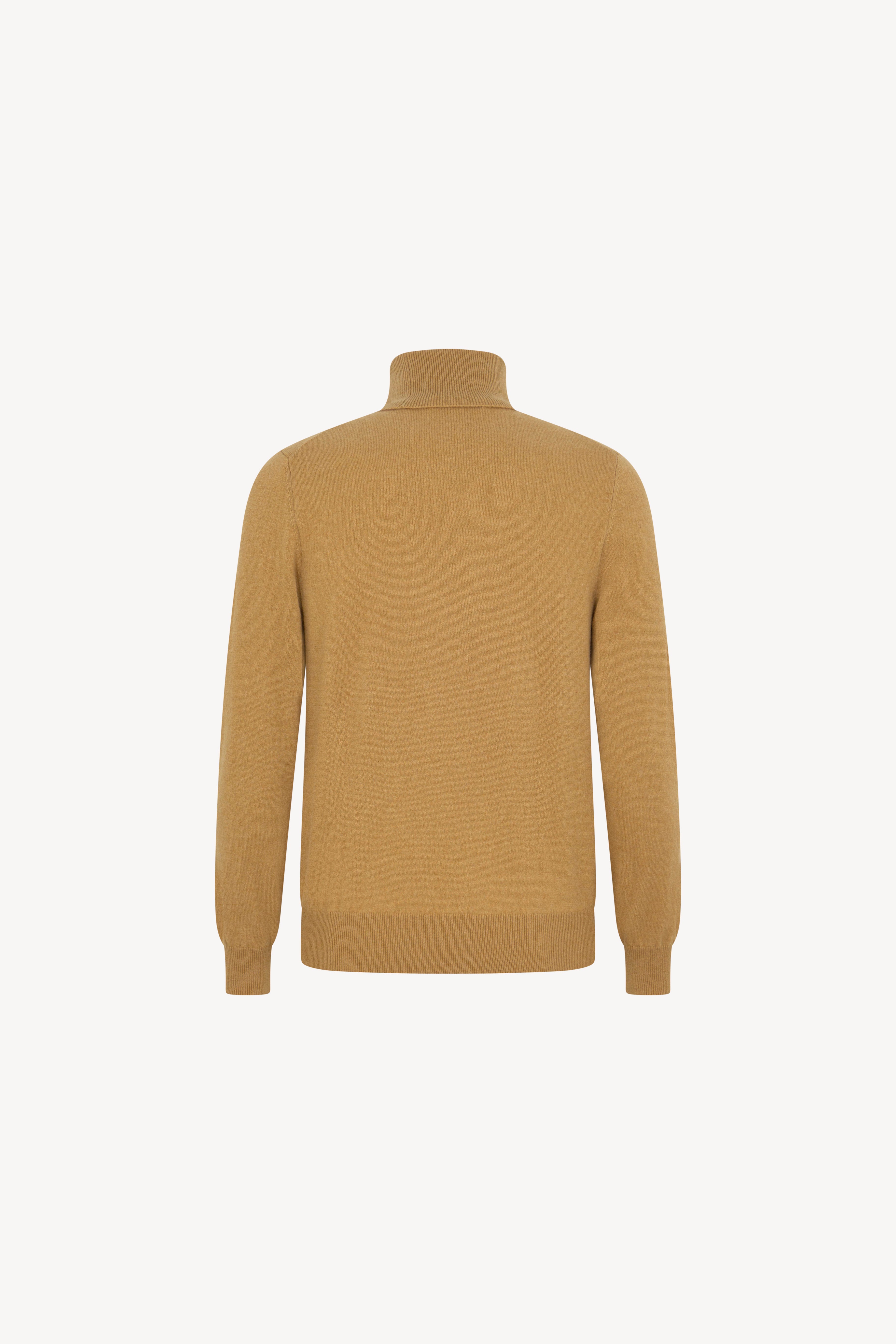 Pull dolcevita in maglia rasata con collo e profili lavorati a costine. La vestibilità è regolare. Il capo è realizzato con filato 100% Cashmere 2/27 1 filo.