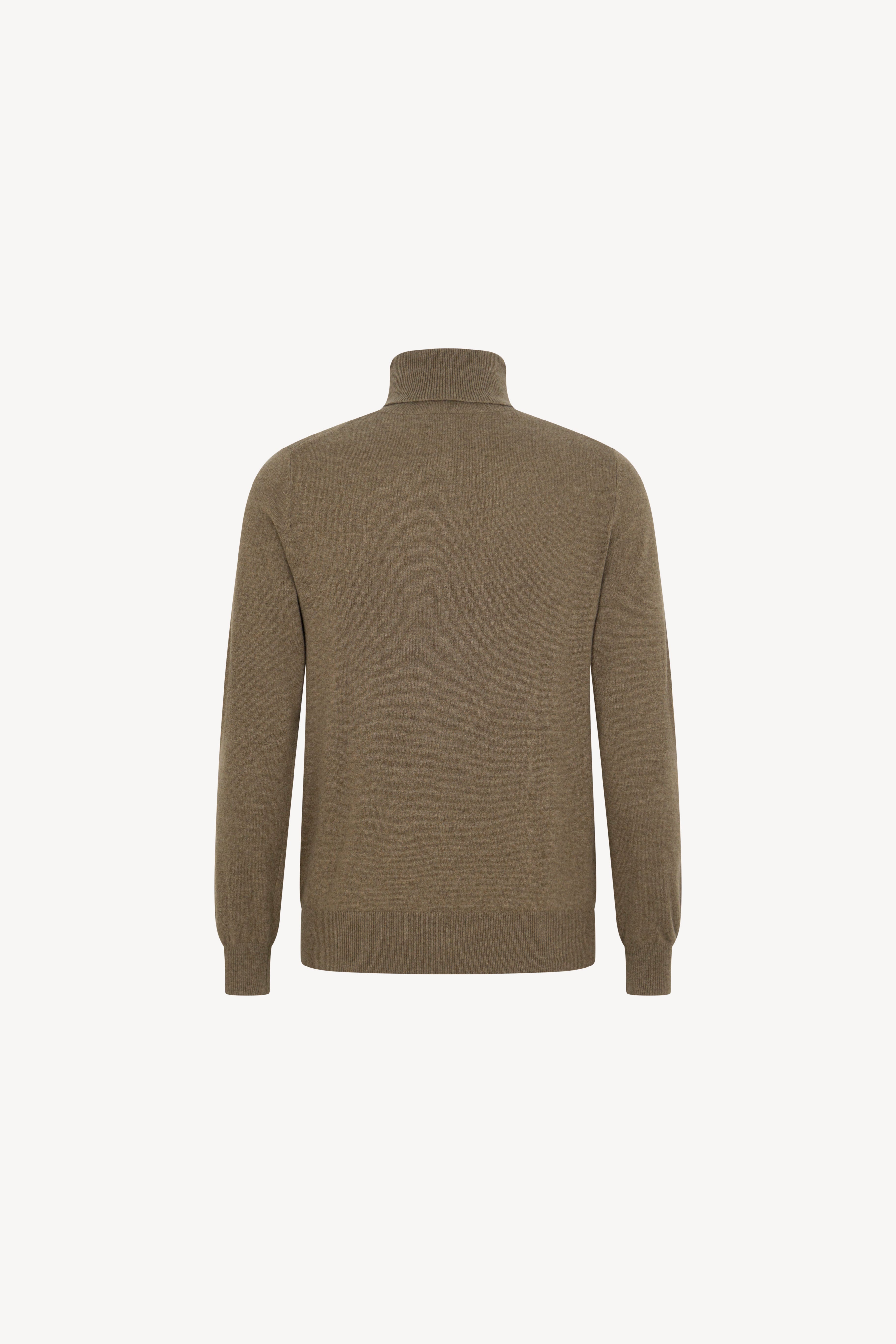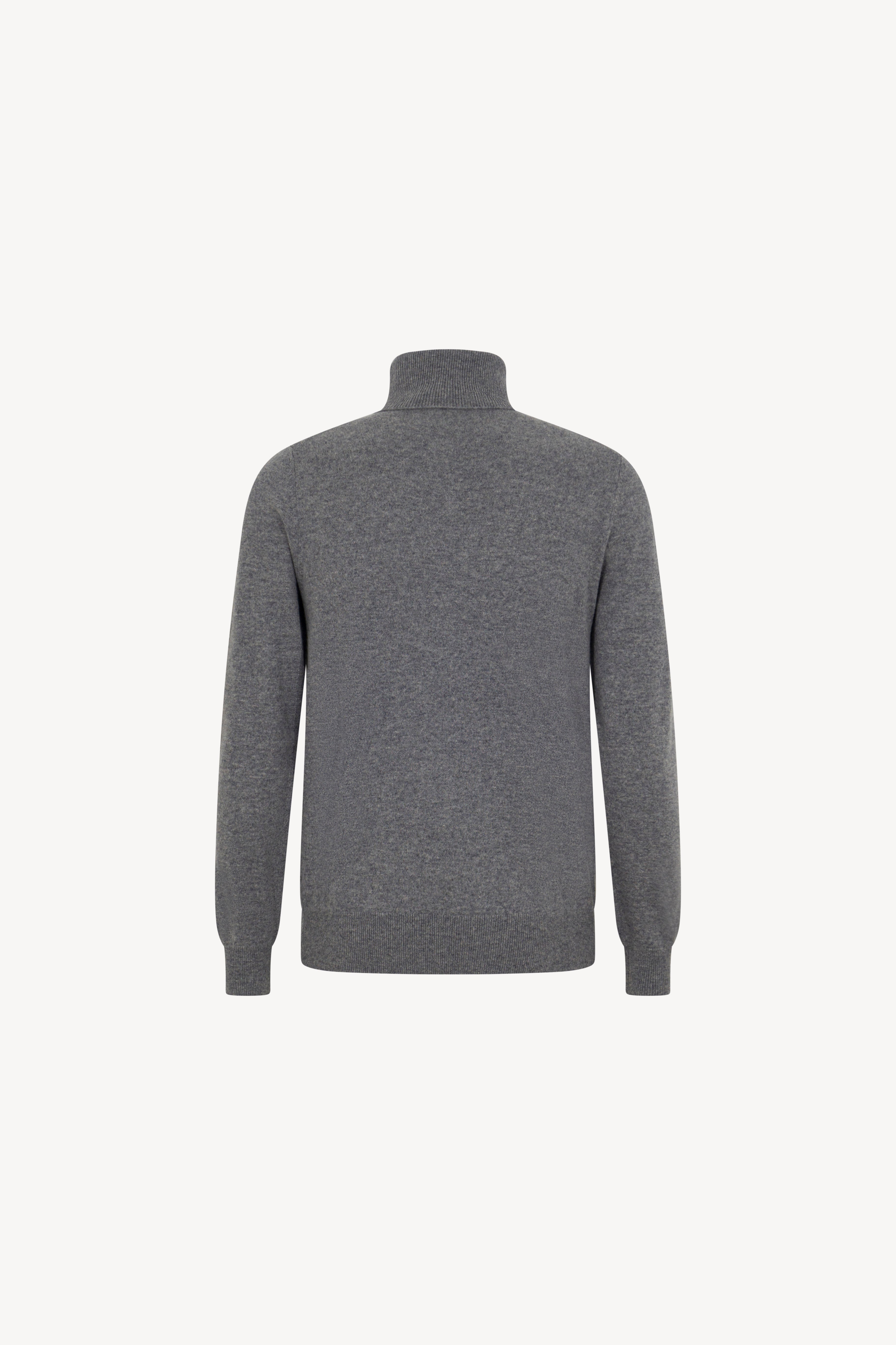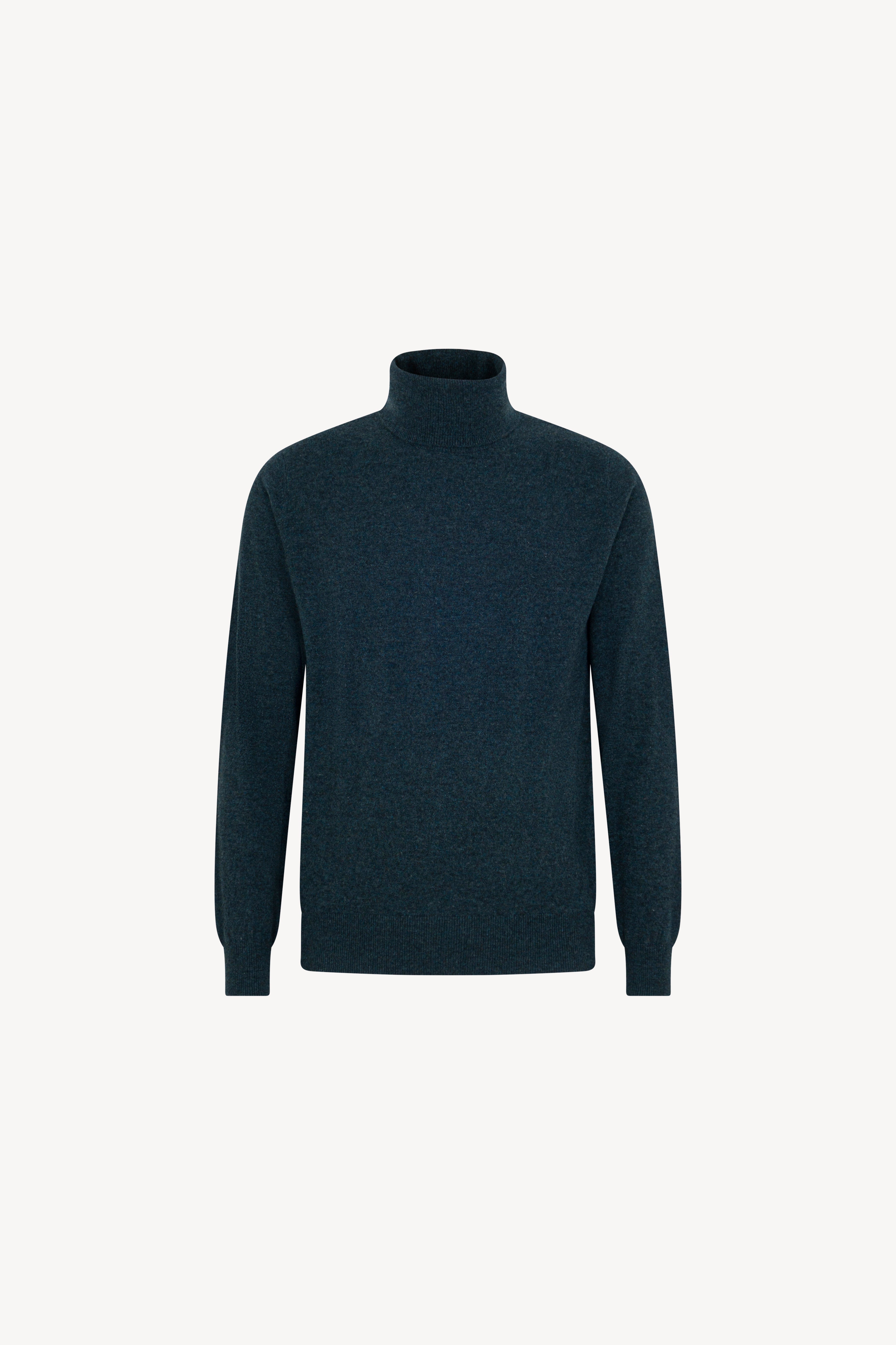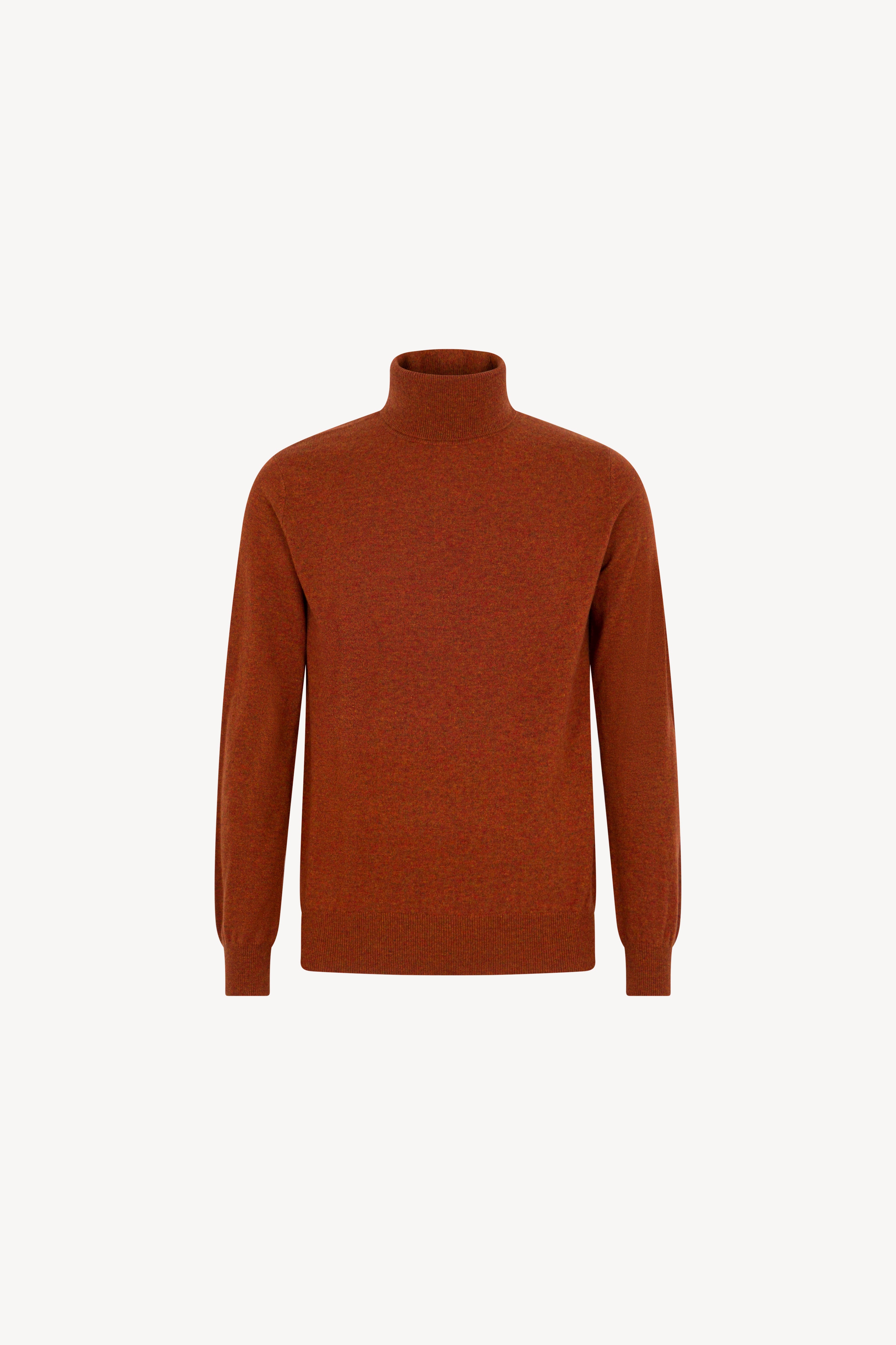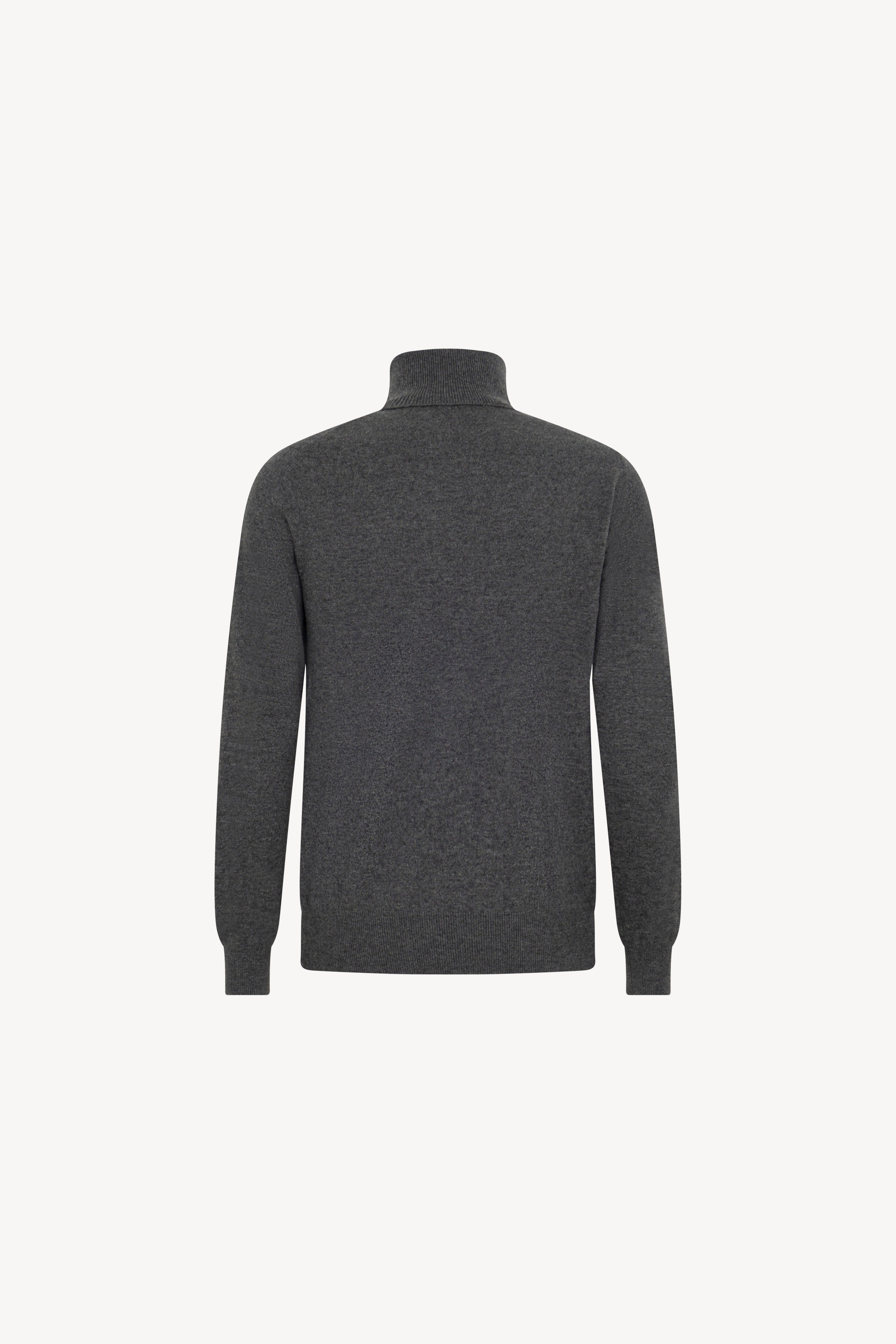 Pull dolcevita in maglia rasata con collo e profili lavorati a costine. La vestibilità è regolare. Il capo è realizzato con filato 100% Cashmere 2/27 1 filo.