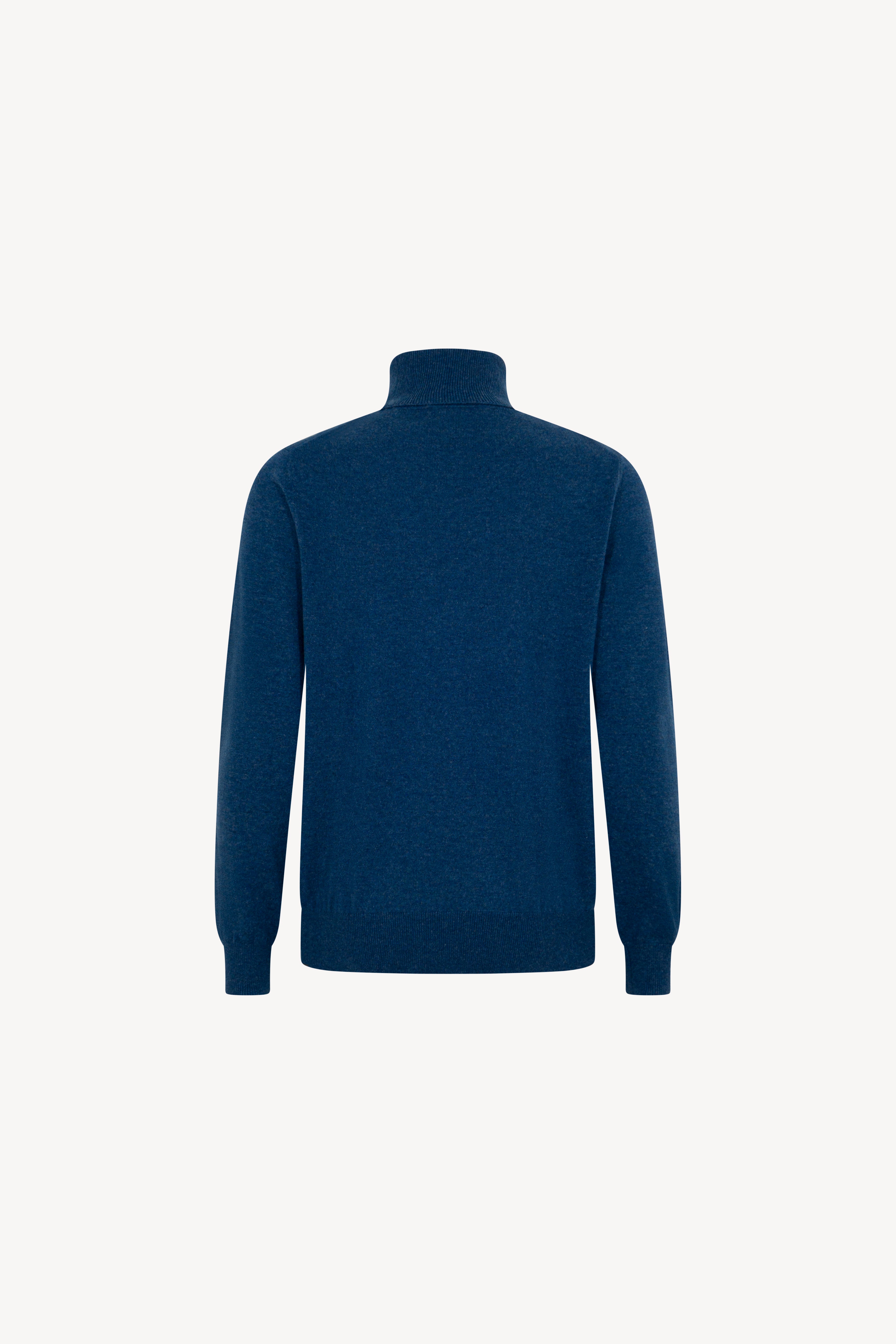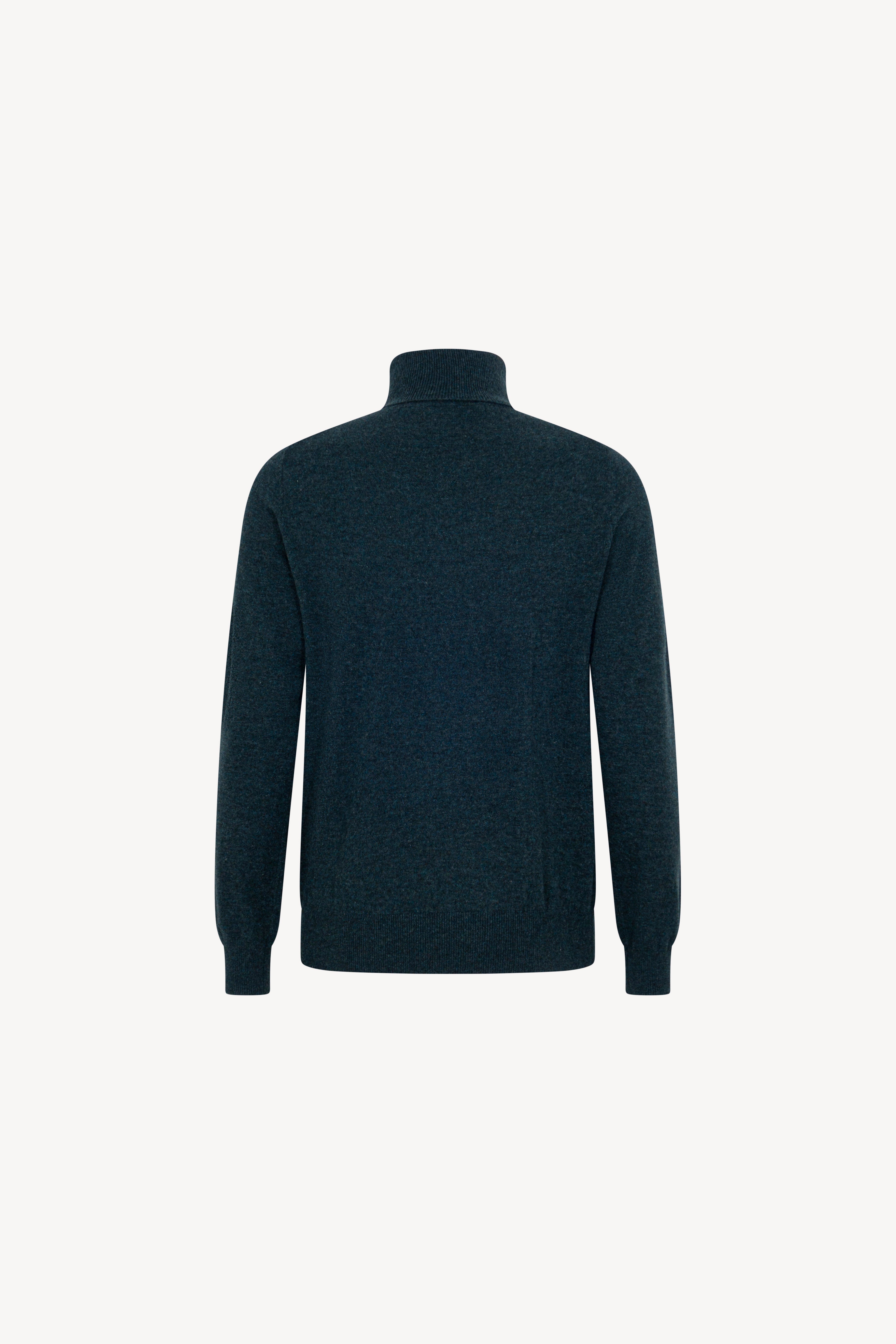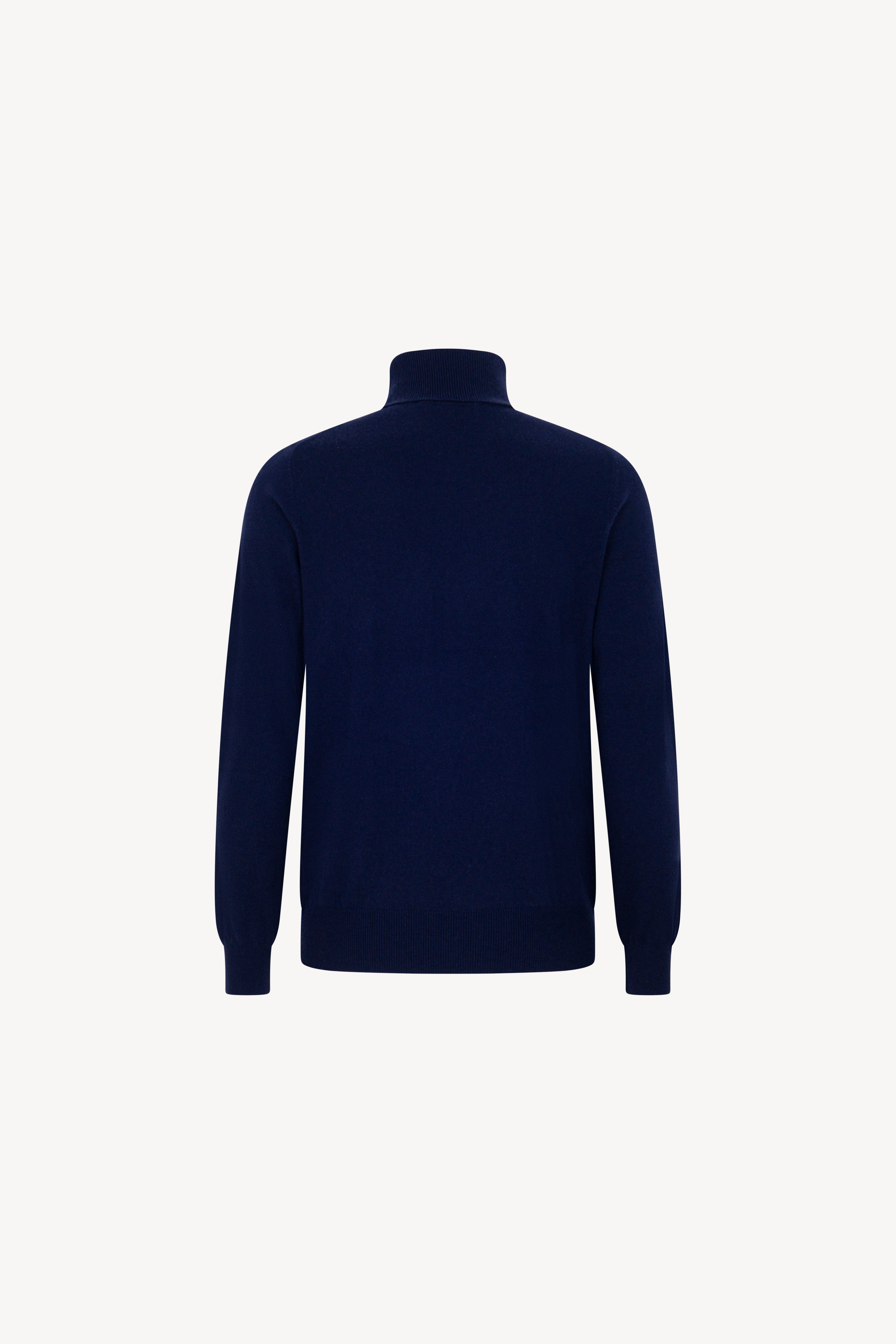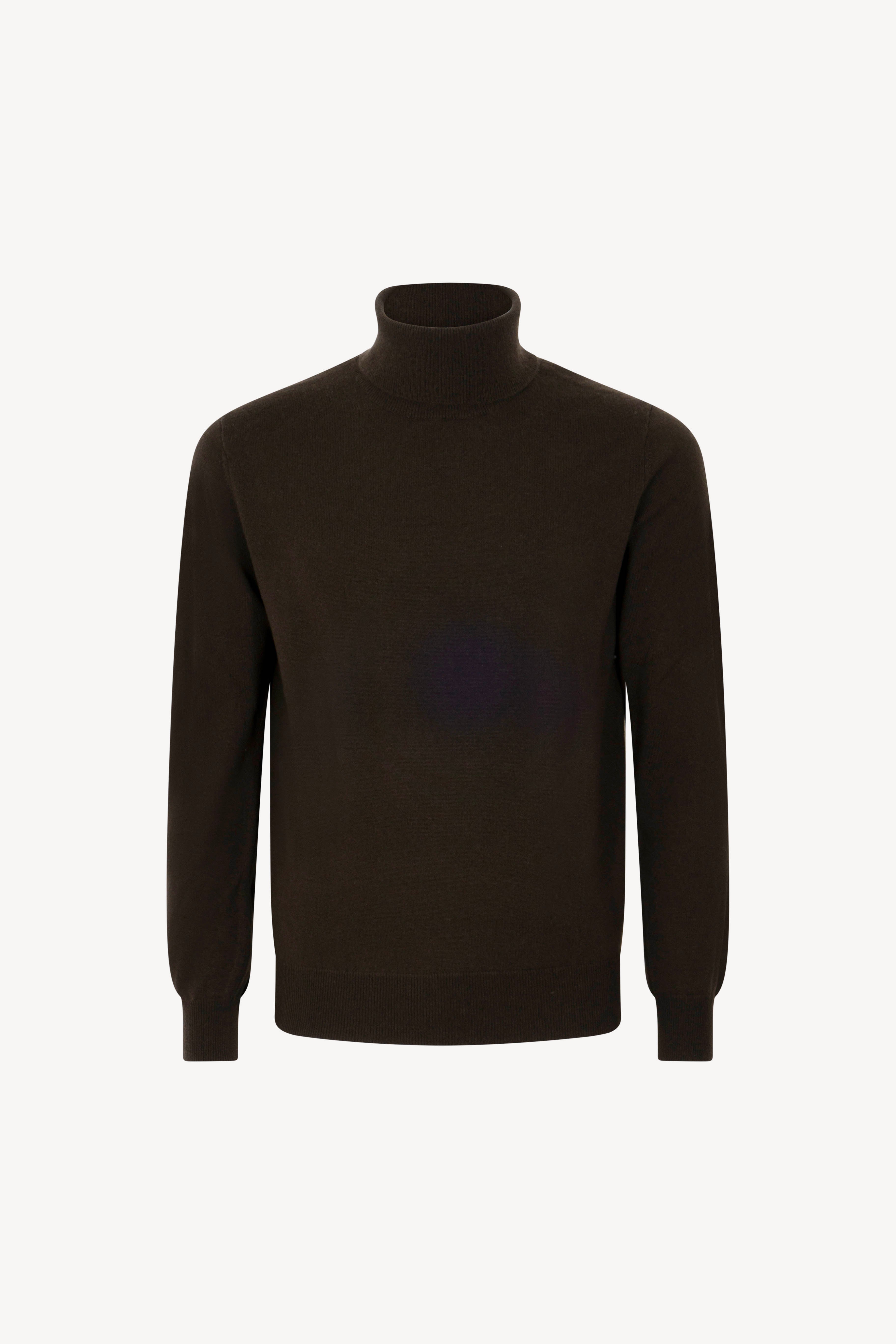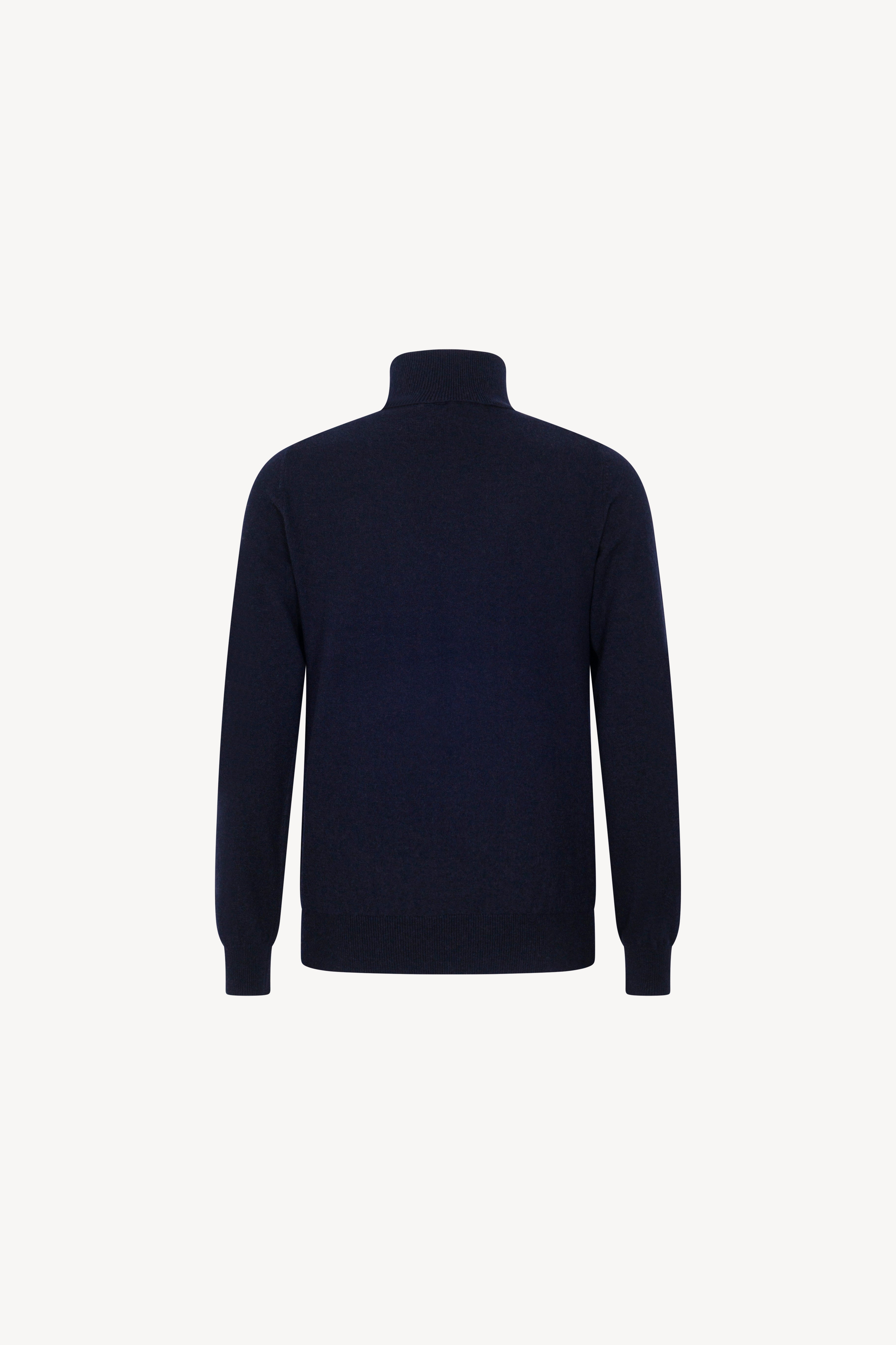 Pull dolcevita in maglia rasata con collo e profili lavorati a costine. La vestibilità è regolare. Il capo è realizzato con filato 100% Cashmere 2/27 1 filo.