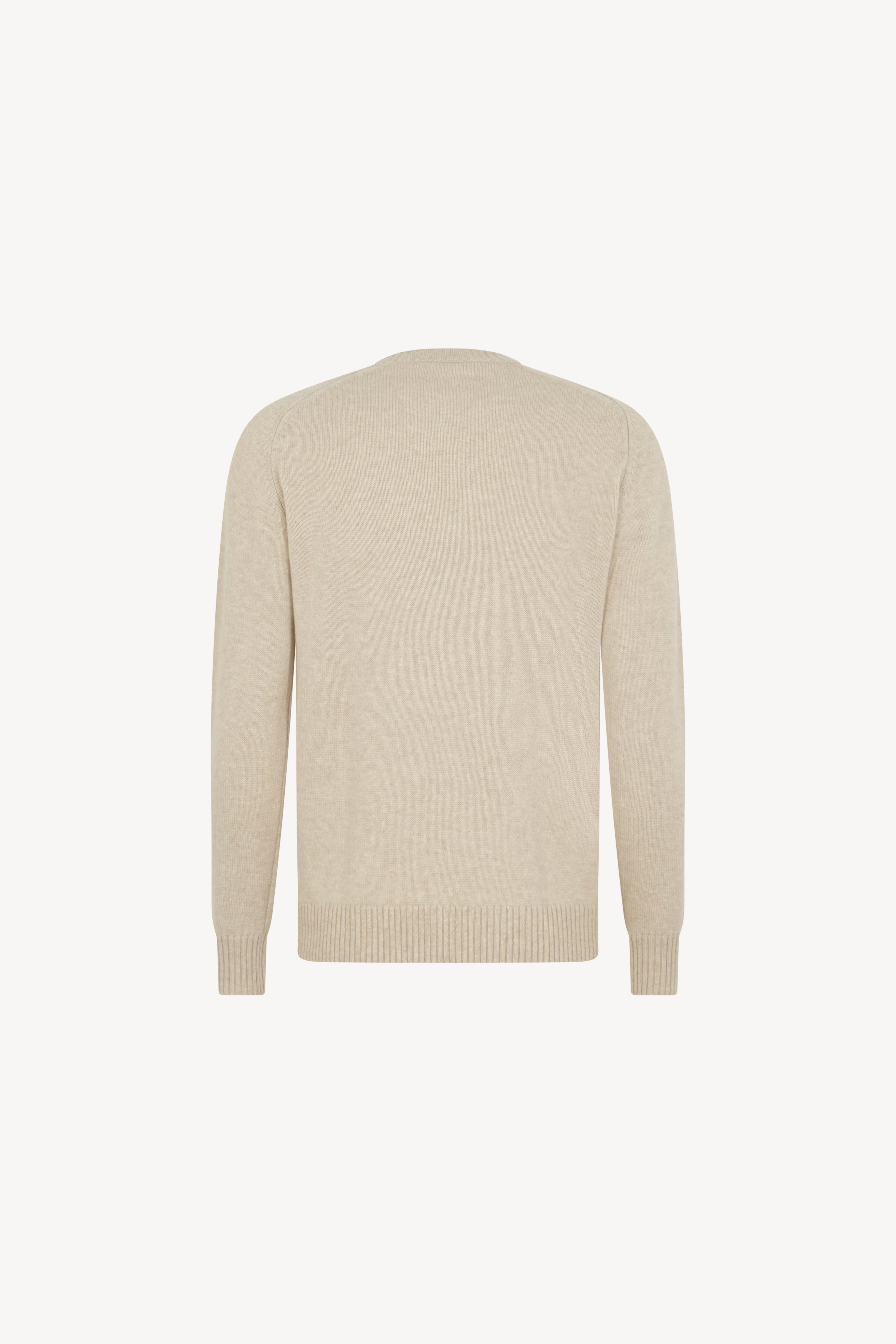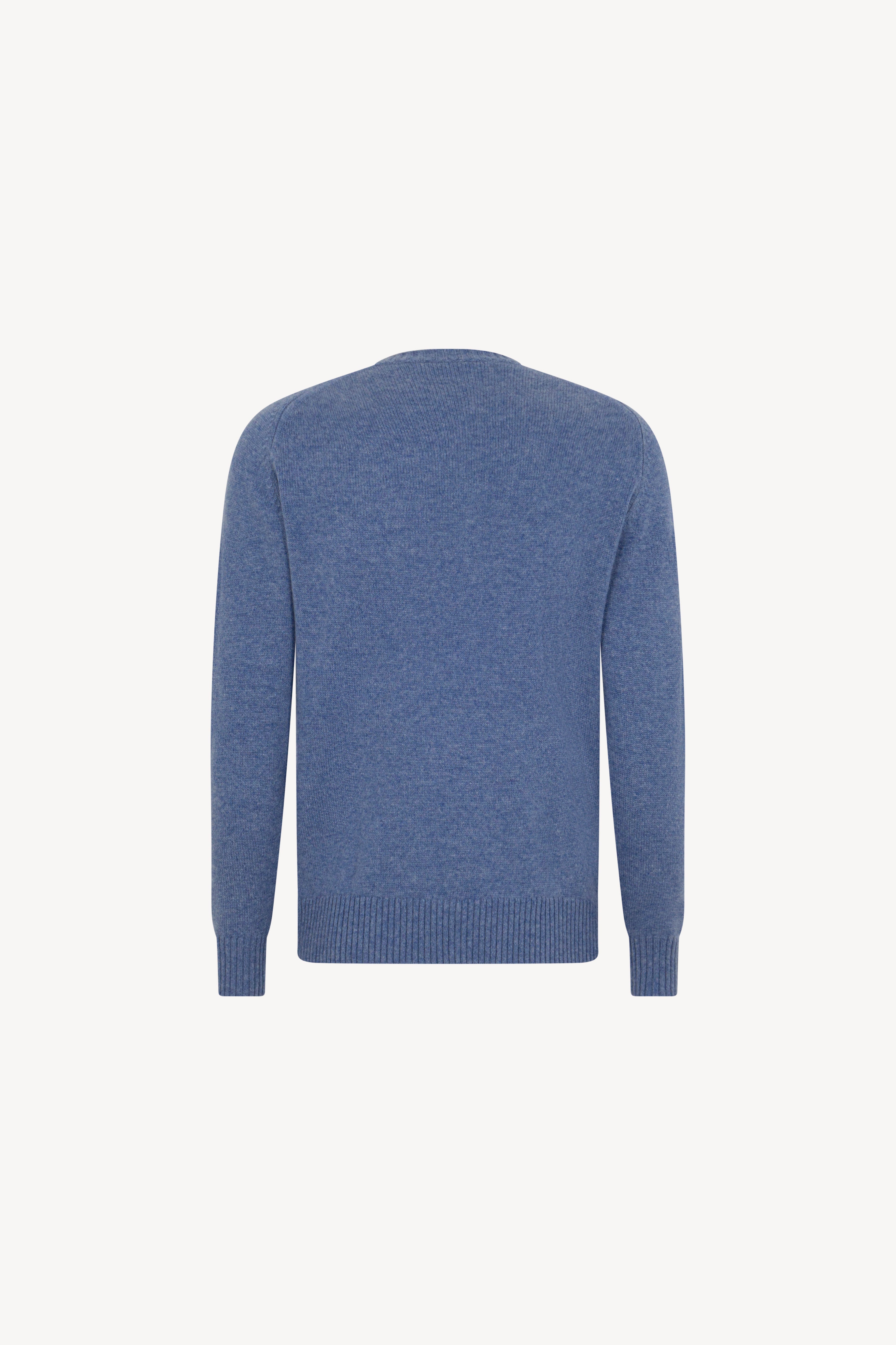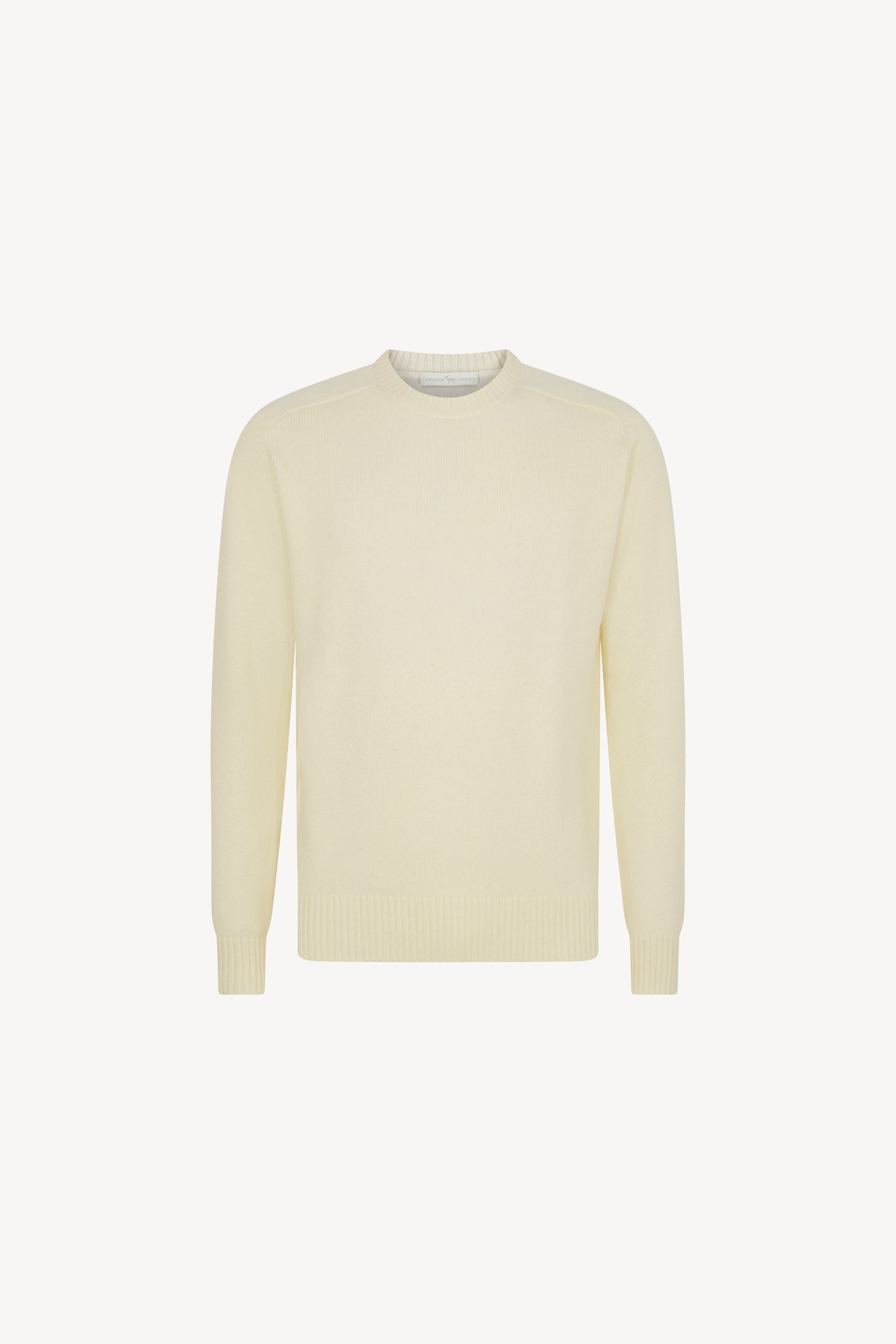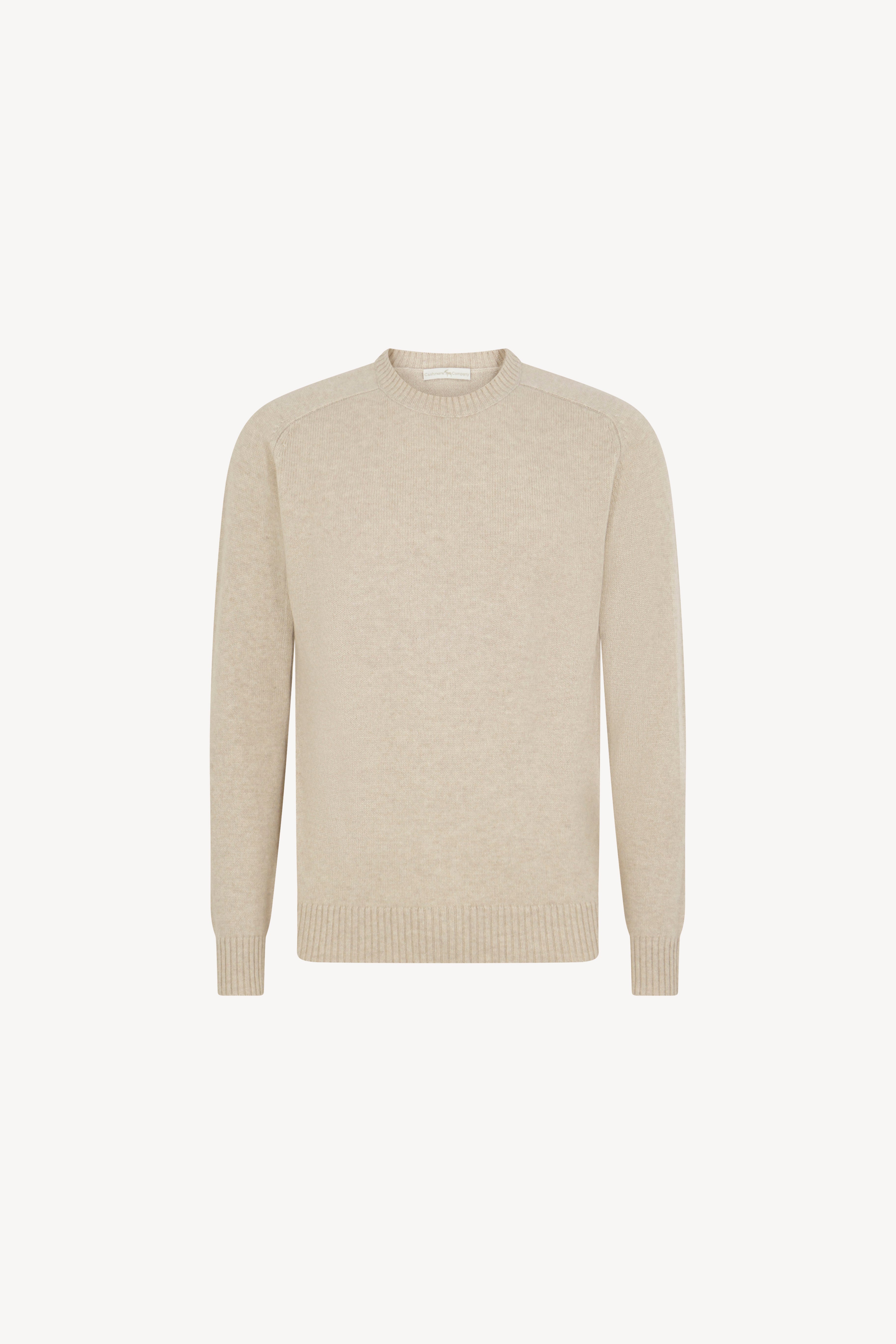 Girocollo con manica a martello. Collo e fondi lavorati a coste. La vestibilità è regolare. Il capo è realizzato con filato 100% Cashmere 2/27 2 fili.