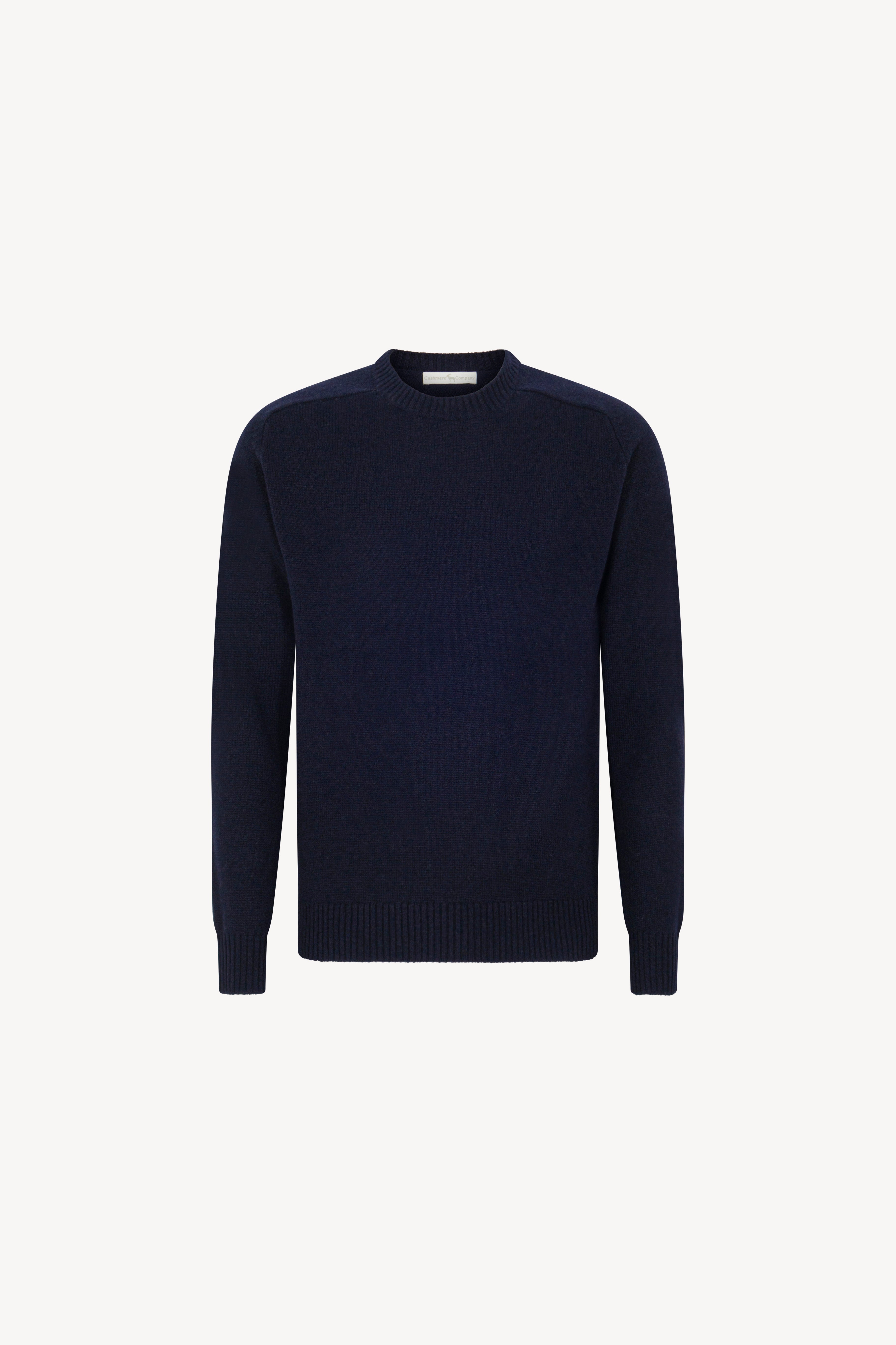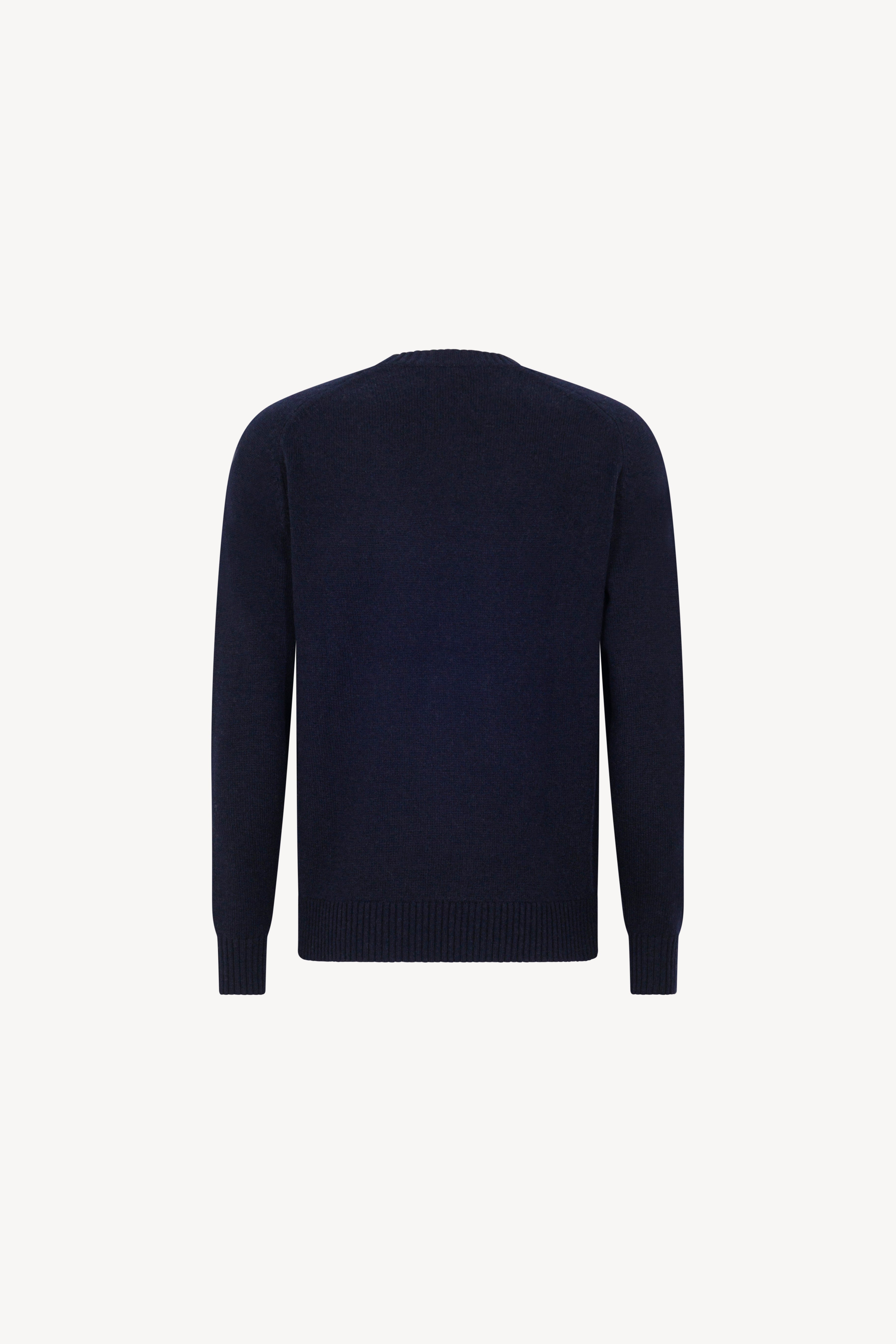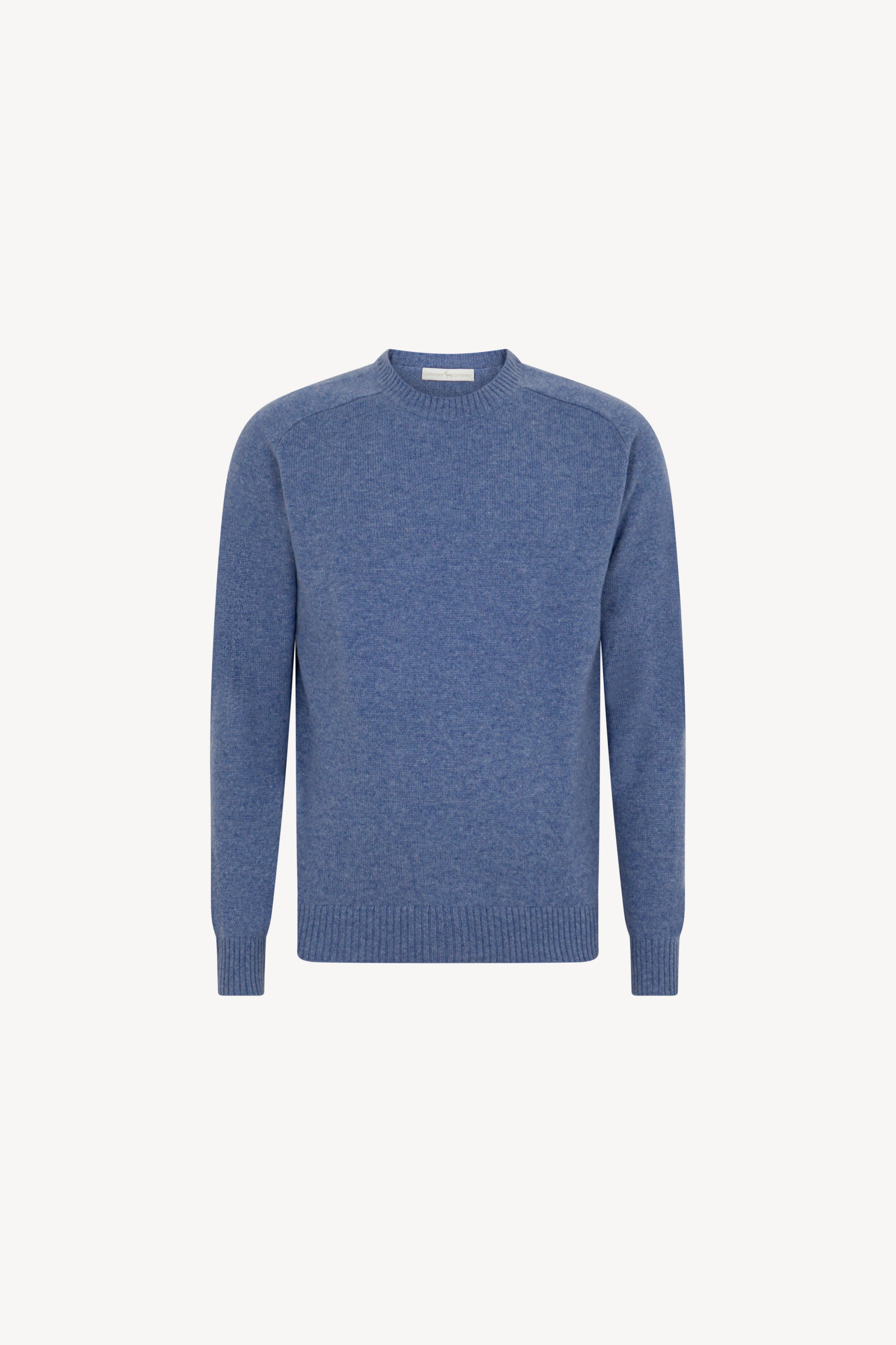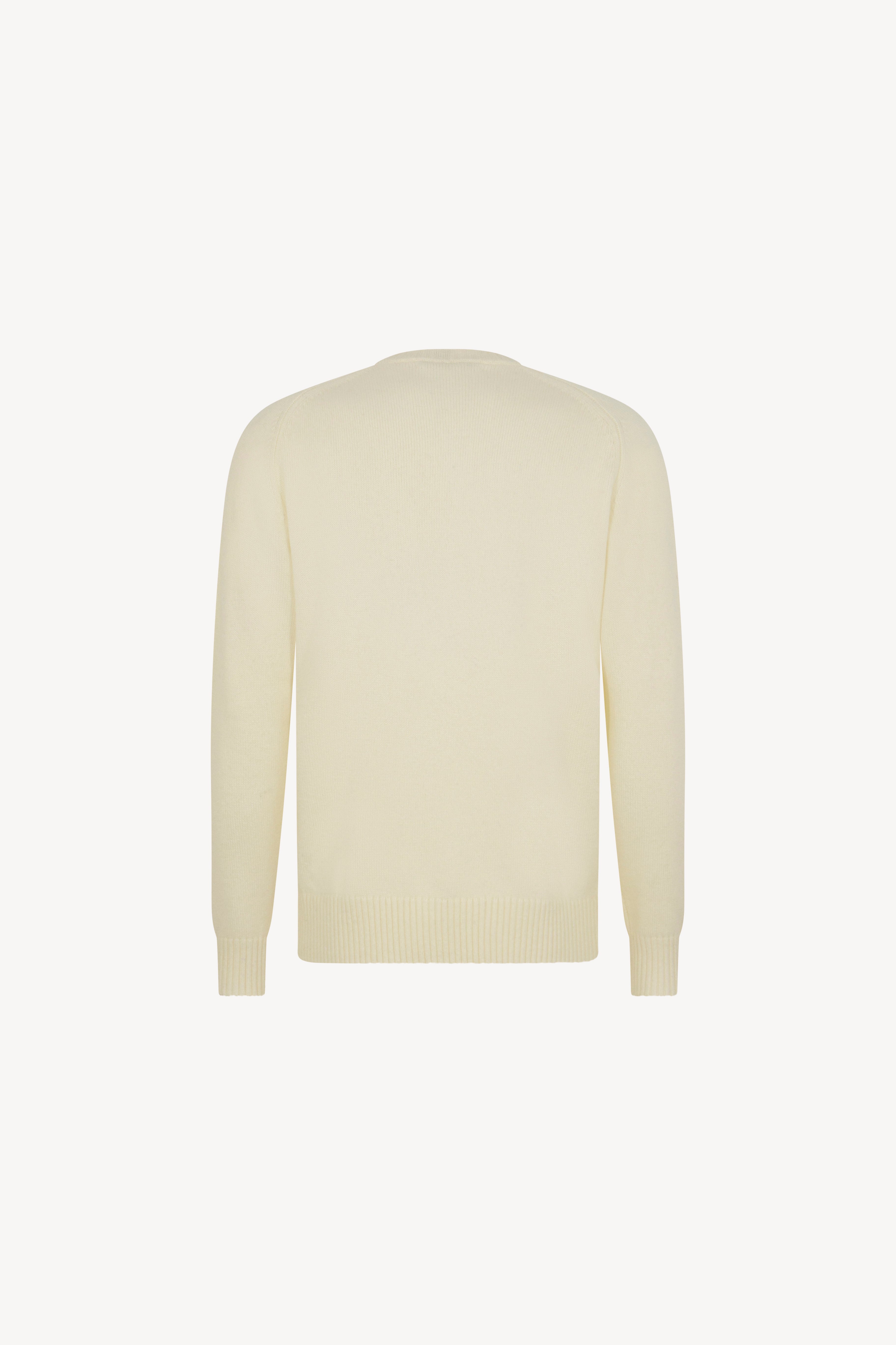 Girocollo con manica a martello. Collo e fondi lavorati a coste. La vestibilità è regolare. Il capo è realizzato con filato 100% Cashmere 2/27 2 fili.