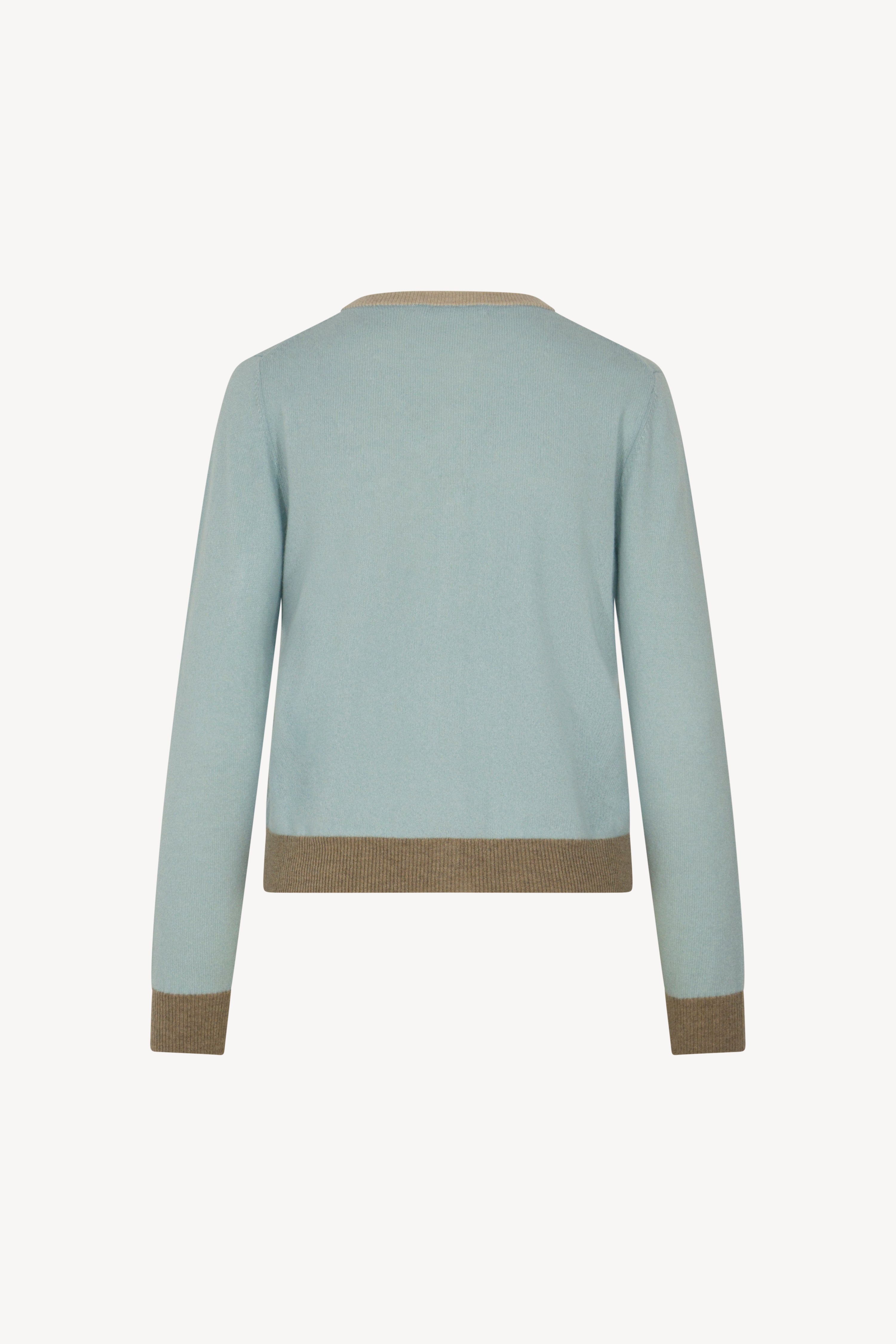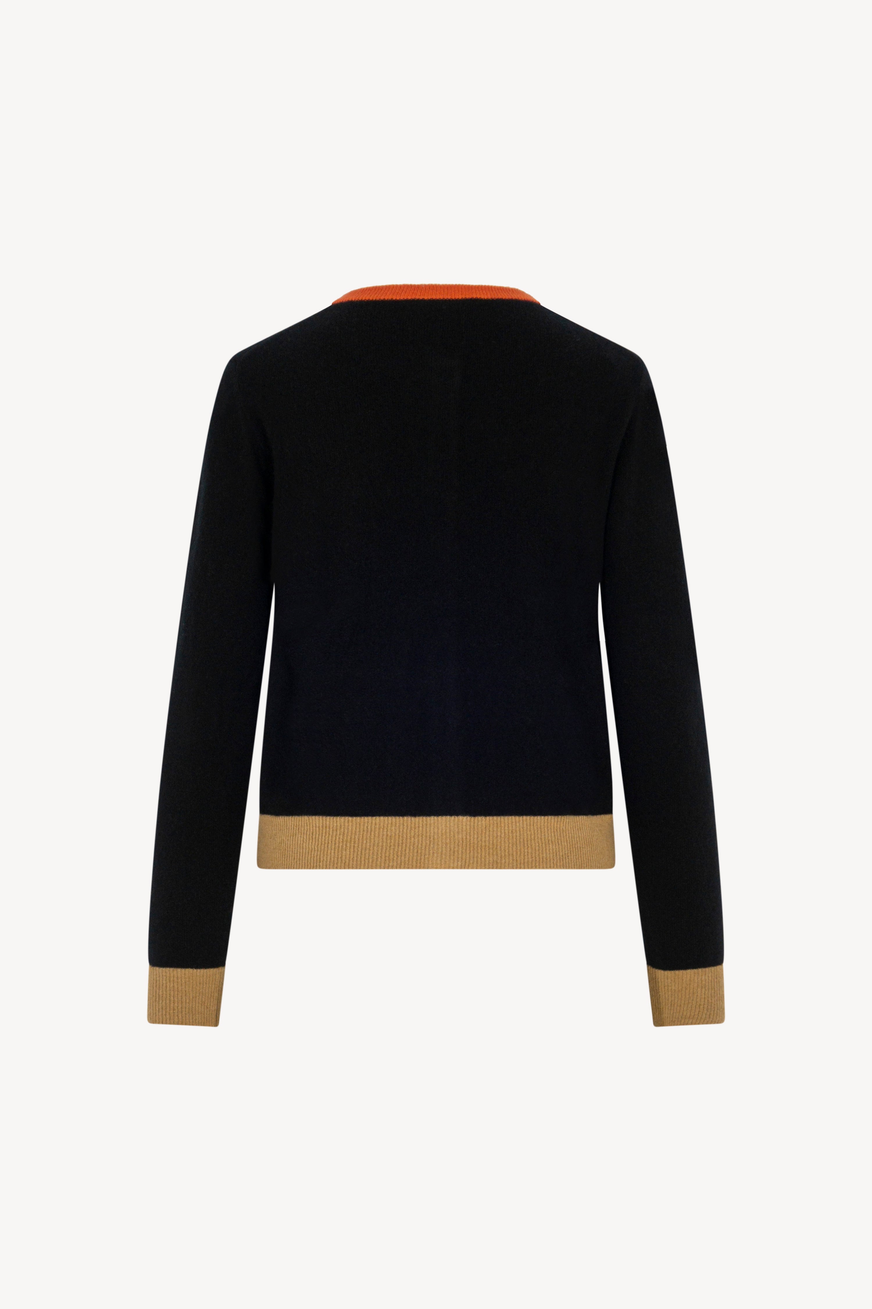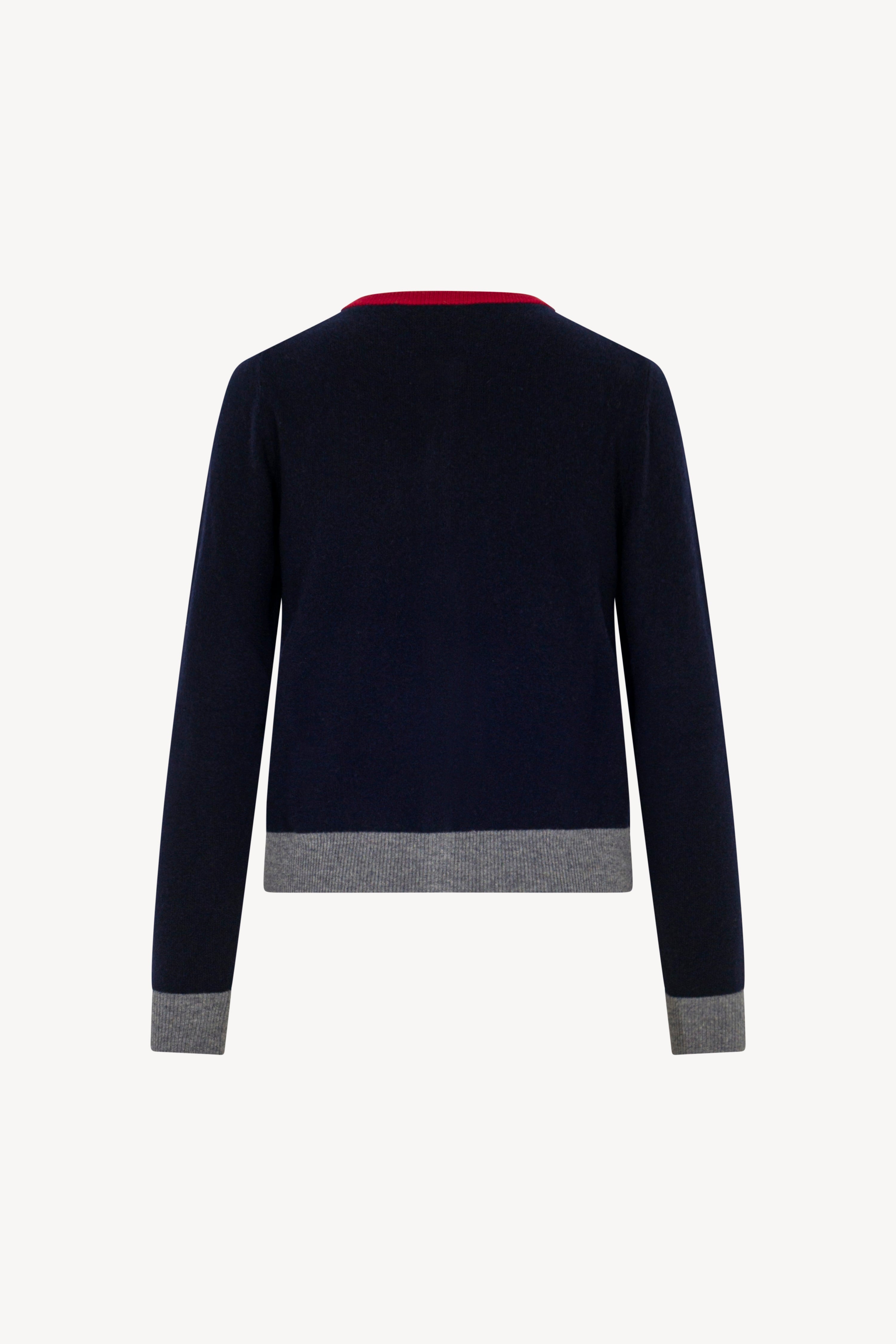 Golfino girocollo con scollo e bordi colore a contrasto. La vestibilità è regolare. Il capo è realizzato con filato 100% Cashmere 2/27 1 filo.