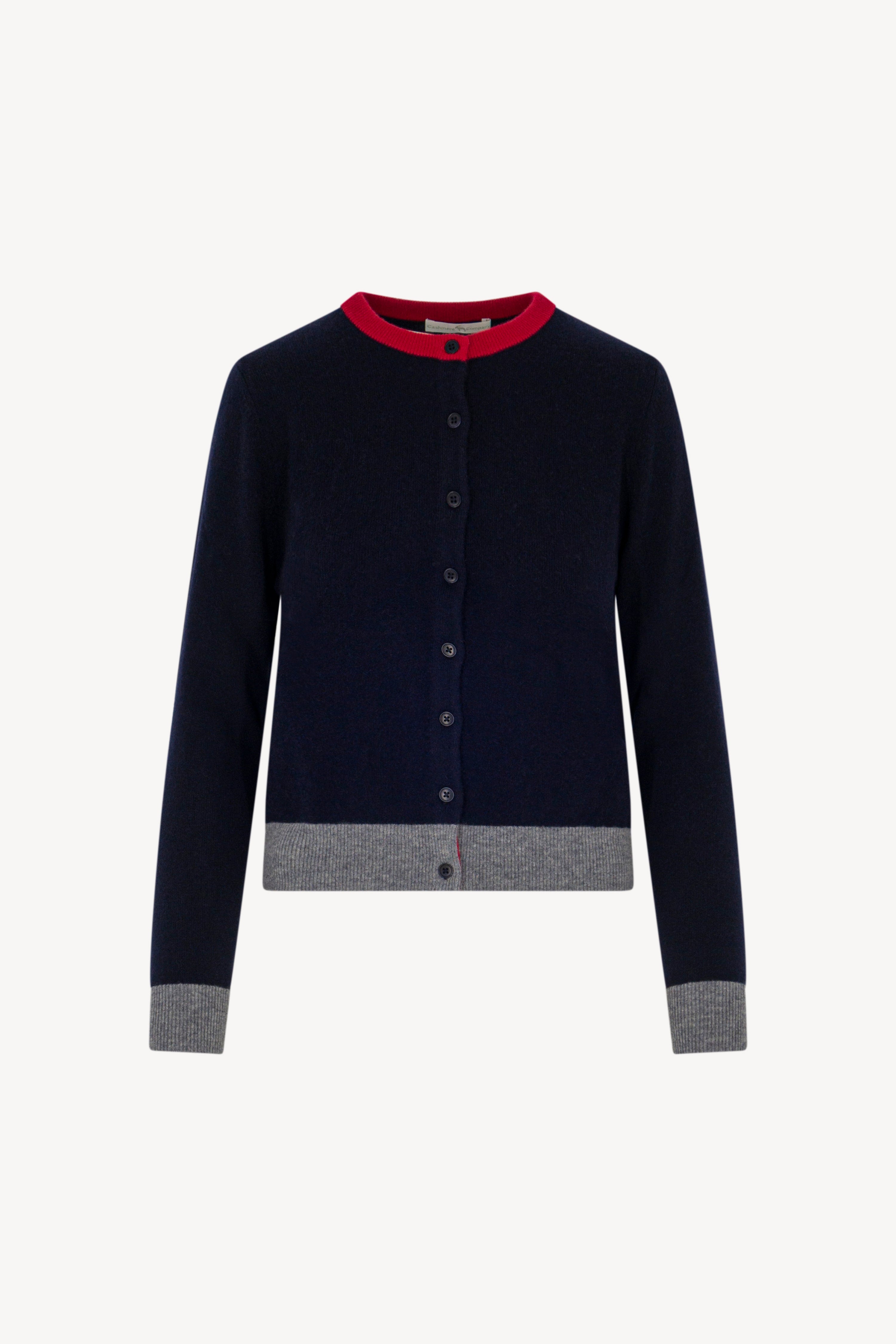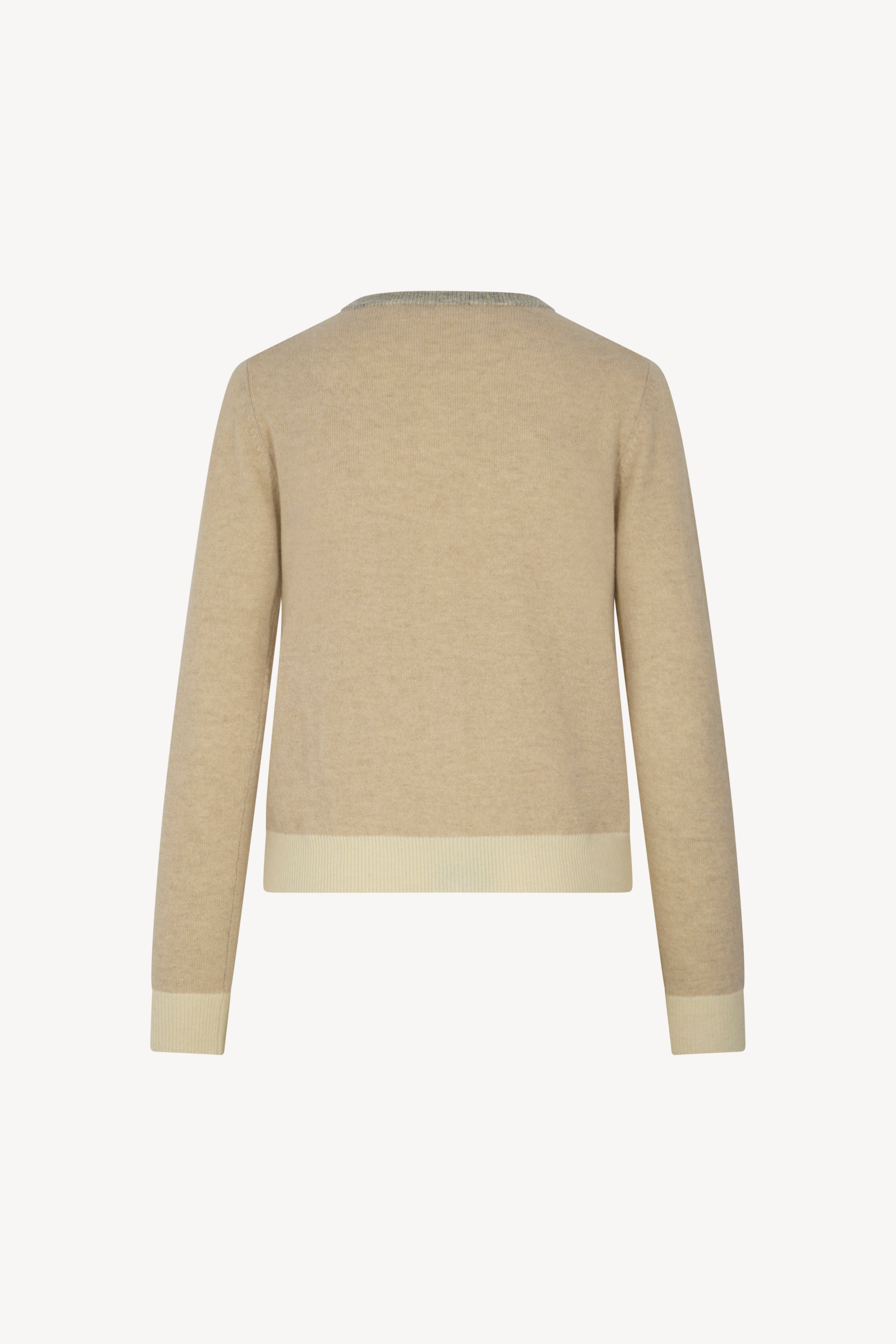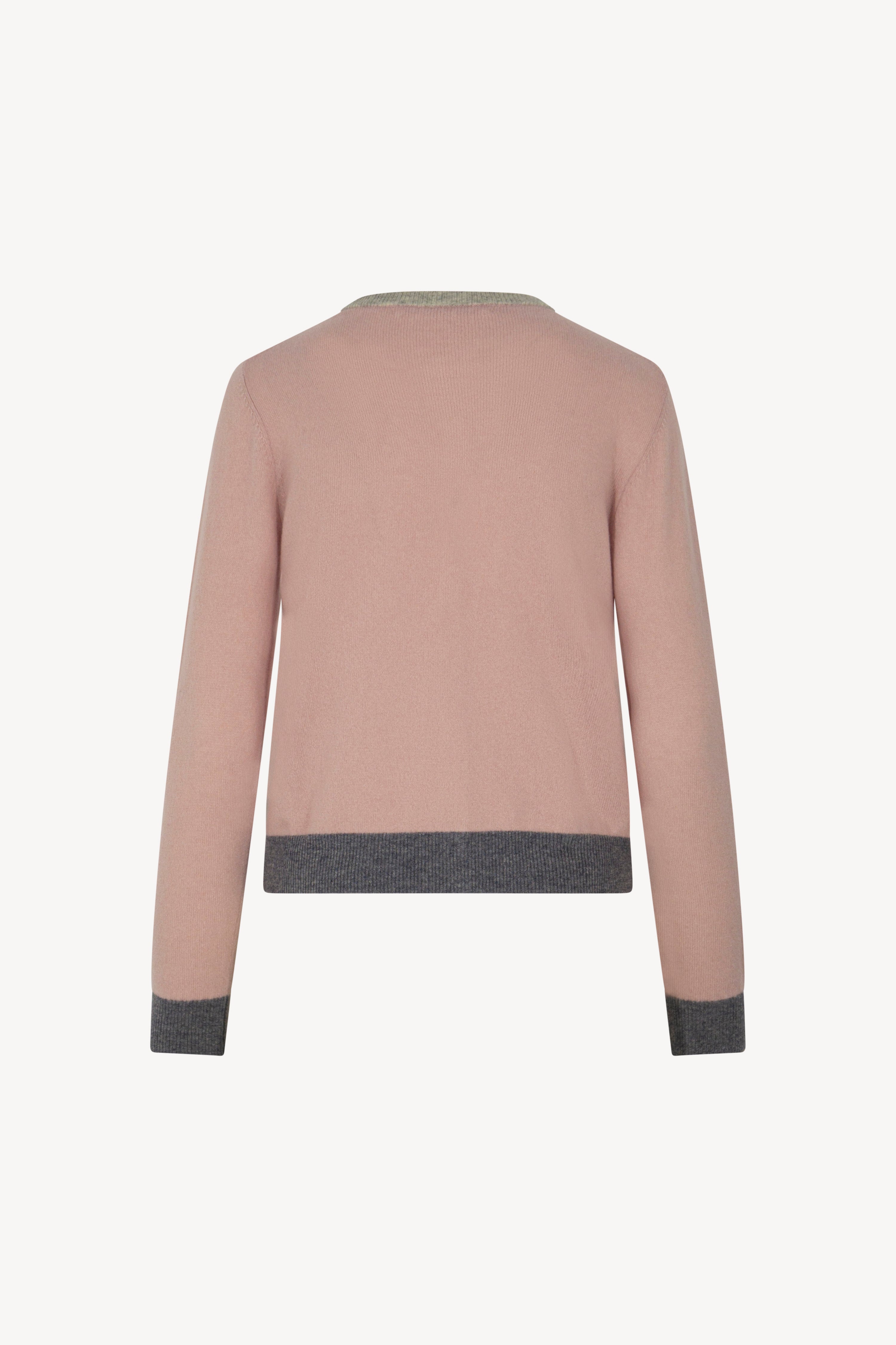 Golfino girocollo con scollo e bordi colore a contrasto. La vestibilità è regolare. Il capo è realizzato con filato 100% Cashmere 2/27 1 filo.