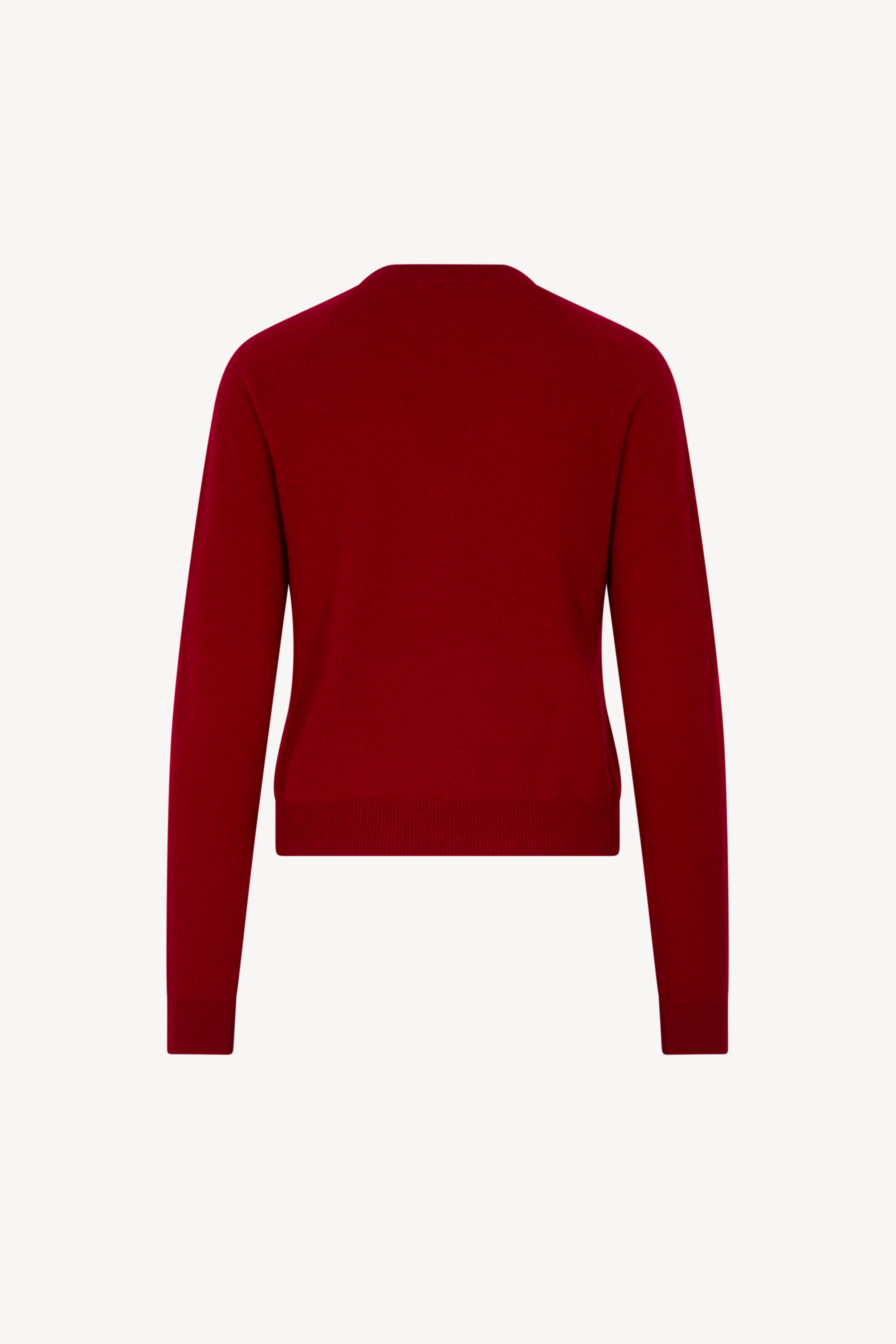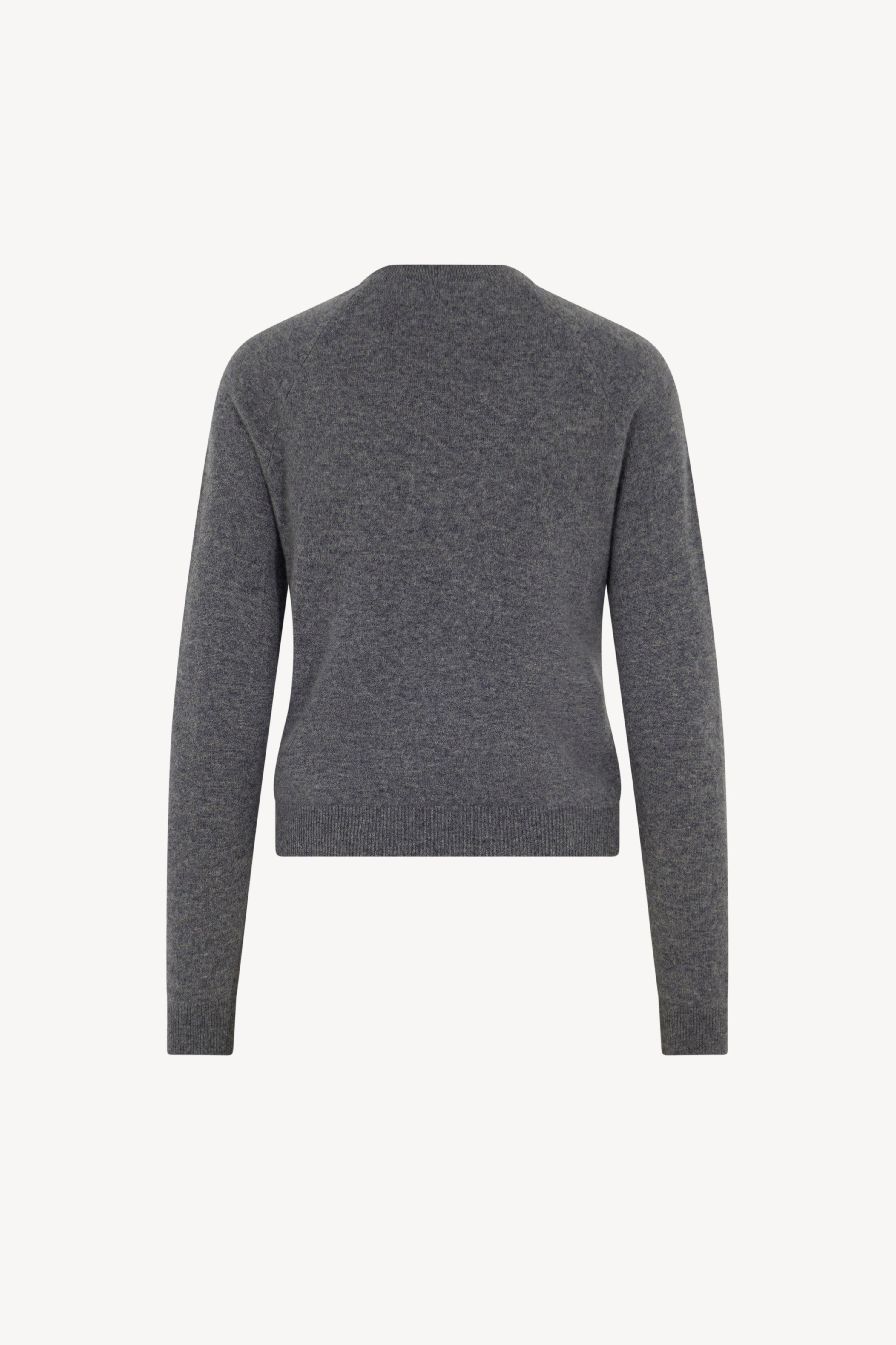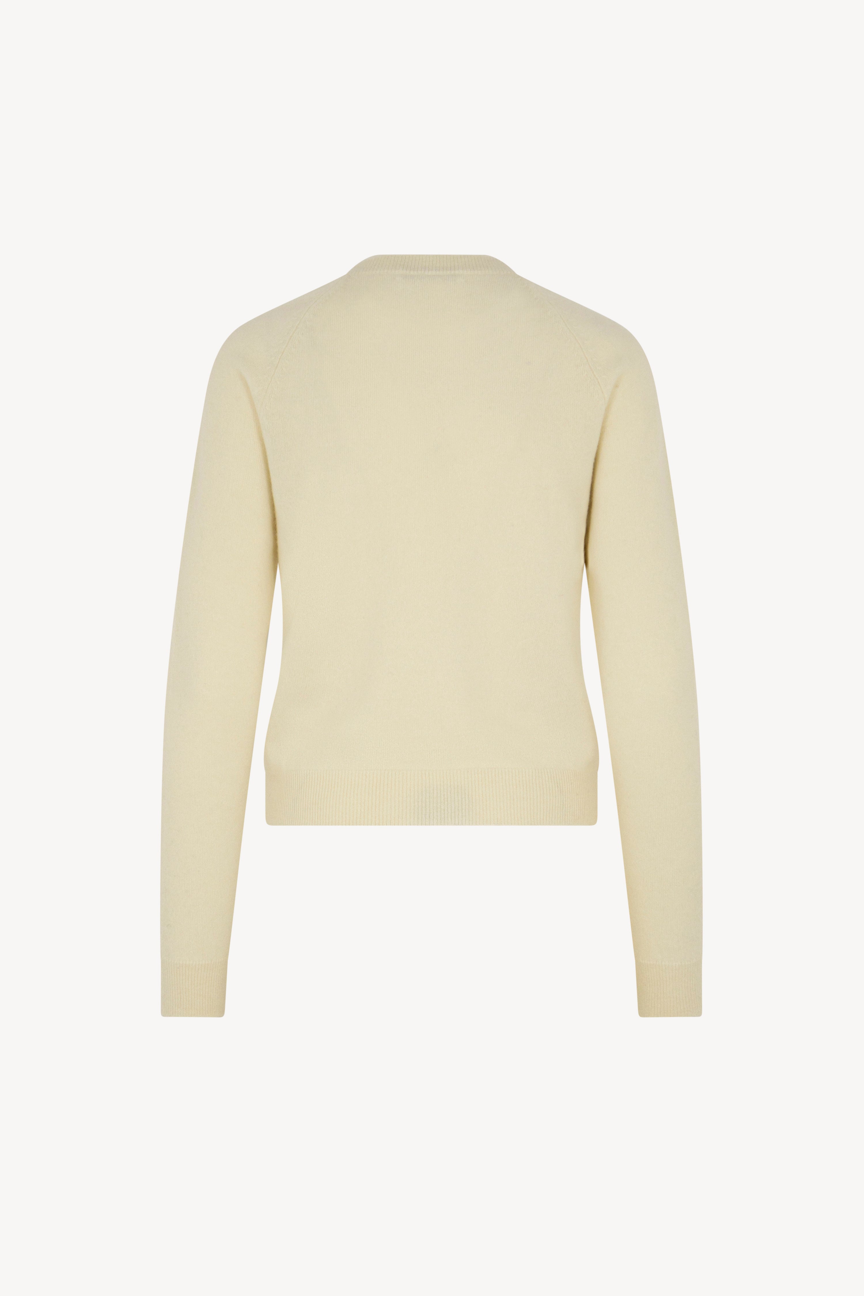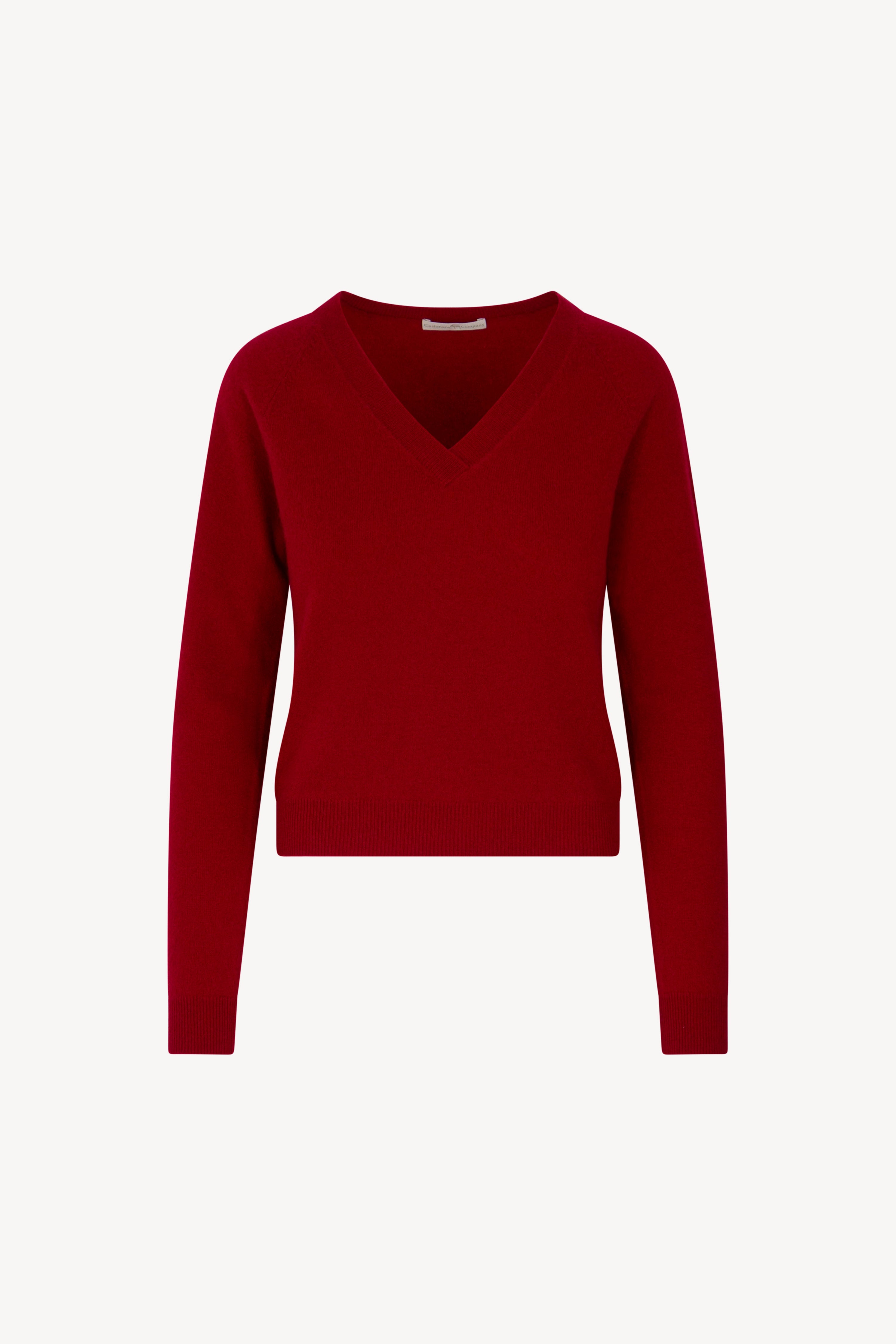 Maglia con scollo a V con manica raglan con collo e fondi lavorati a coste. Vestibilità regolare. Il capo è realizzato con filato 100% Cashmere 2/27 1 filo.
