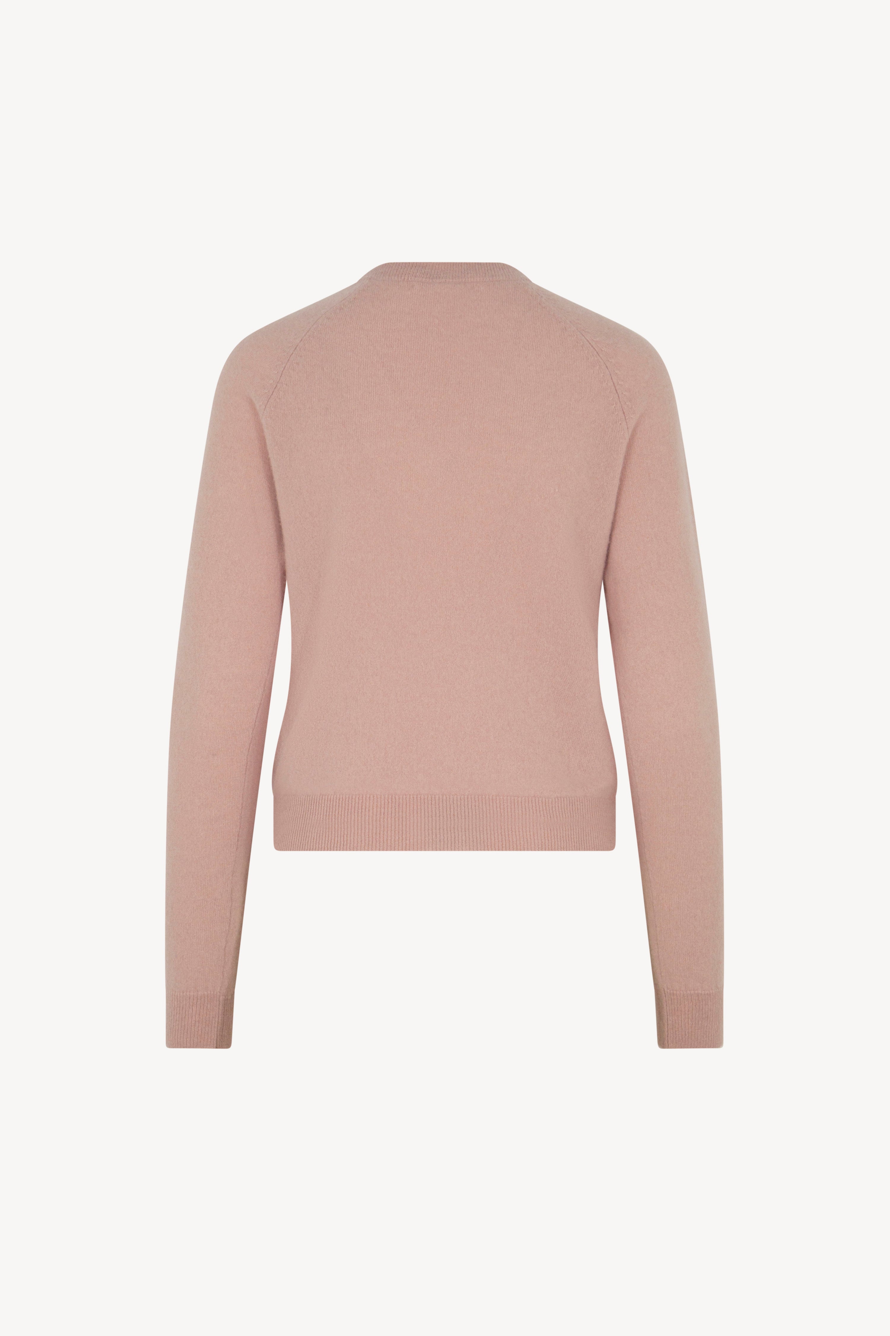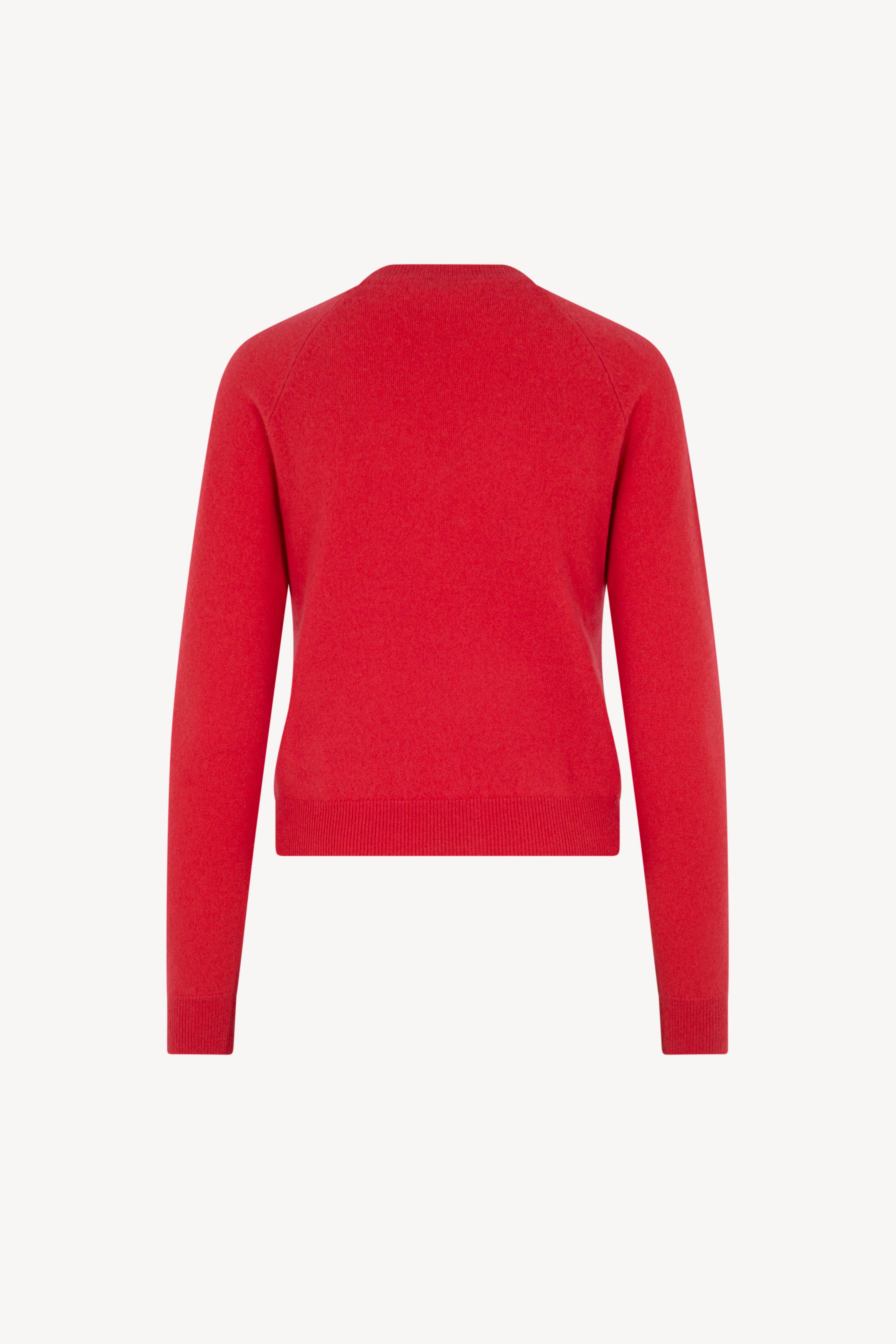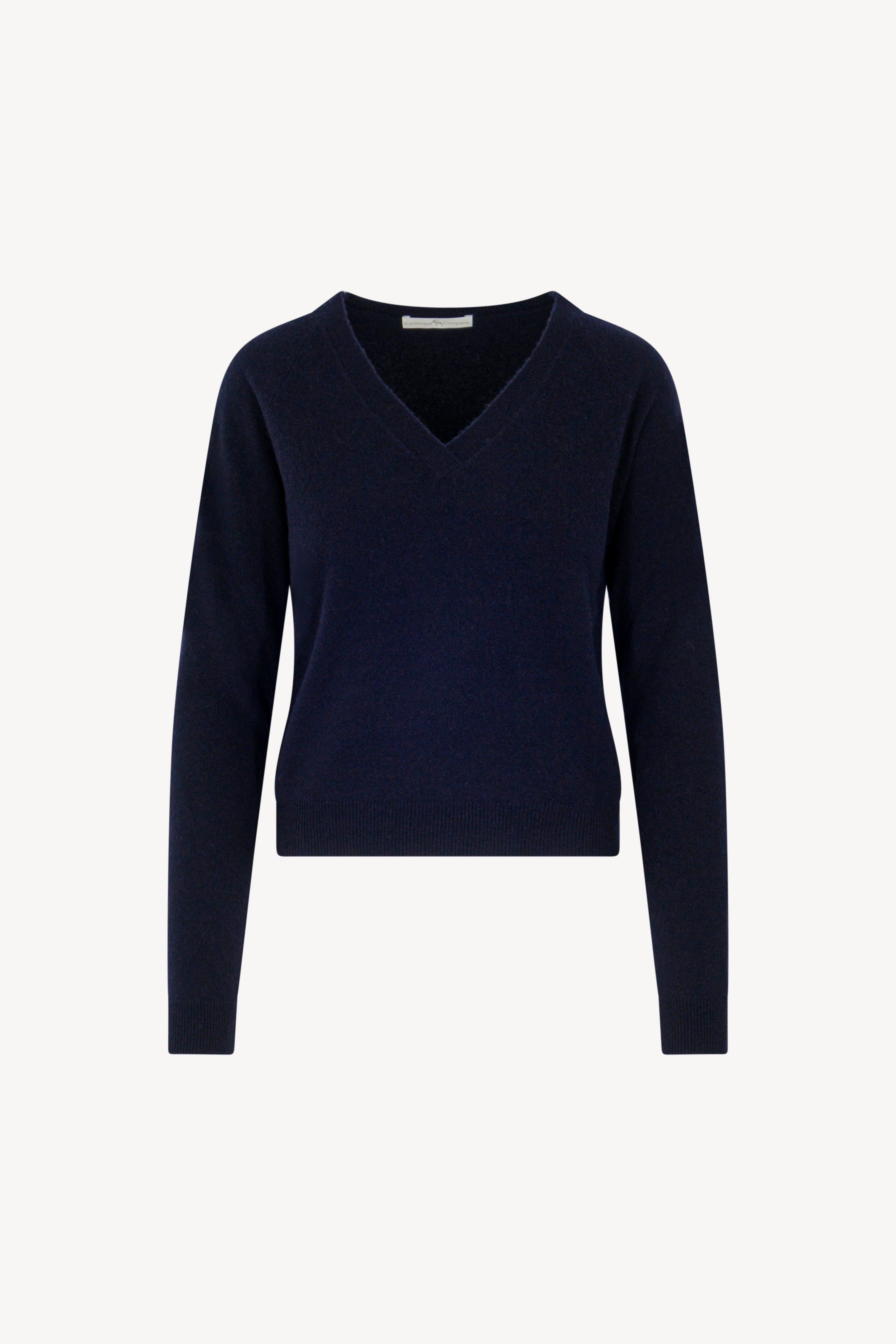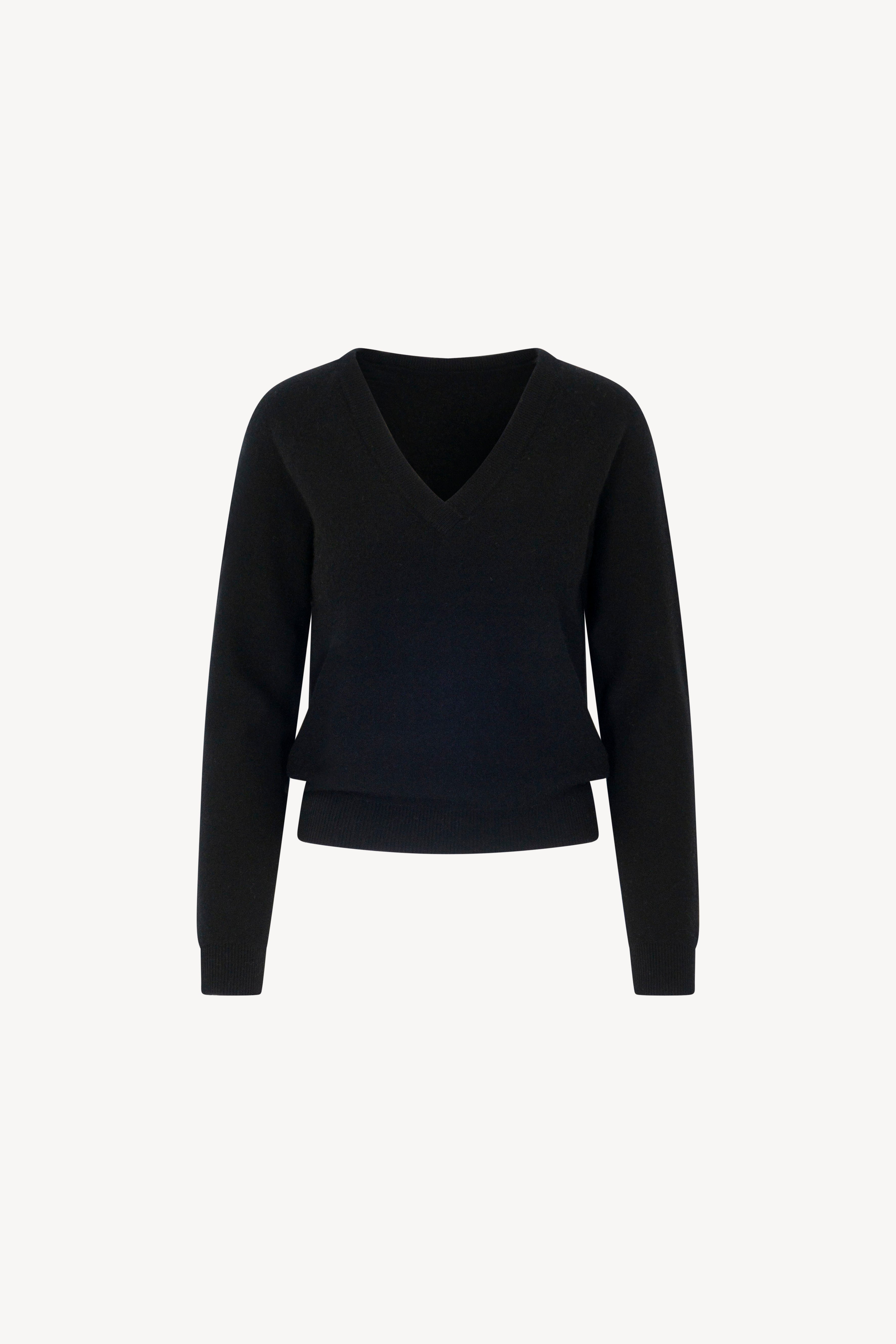 Maglia con scollo a V con manica raglan con collo e fondi lavorati a coste. Vestibilità regolare. Il capo è realizzato con filato 100% Cashmere 2/27 1 filo.