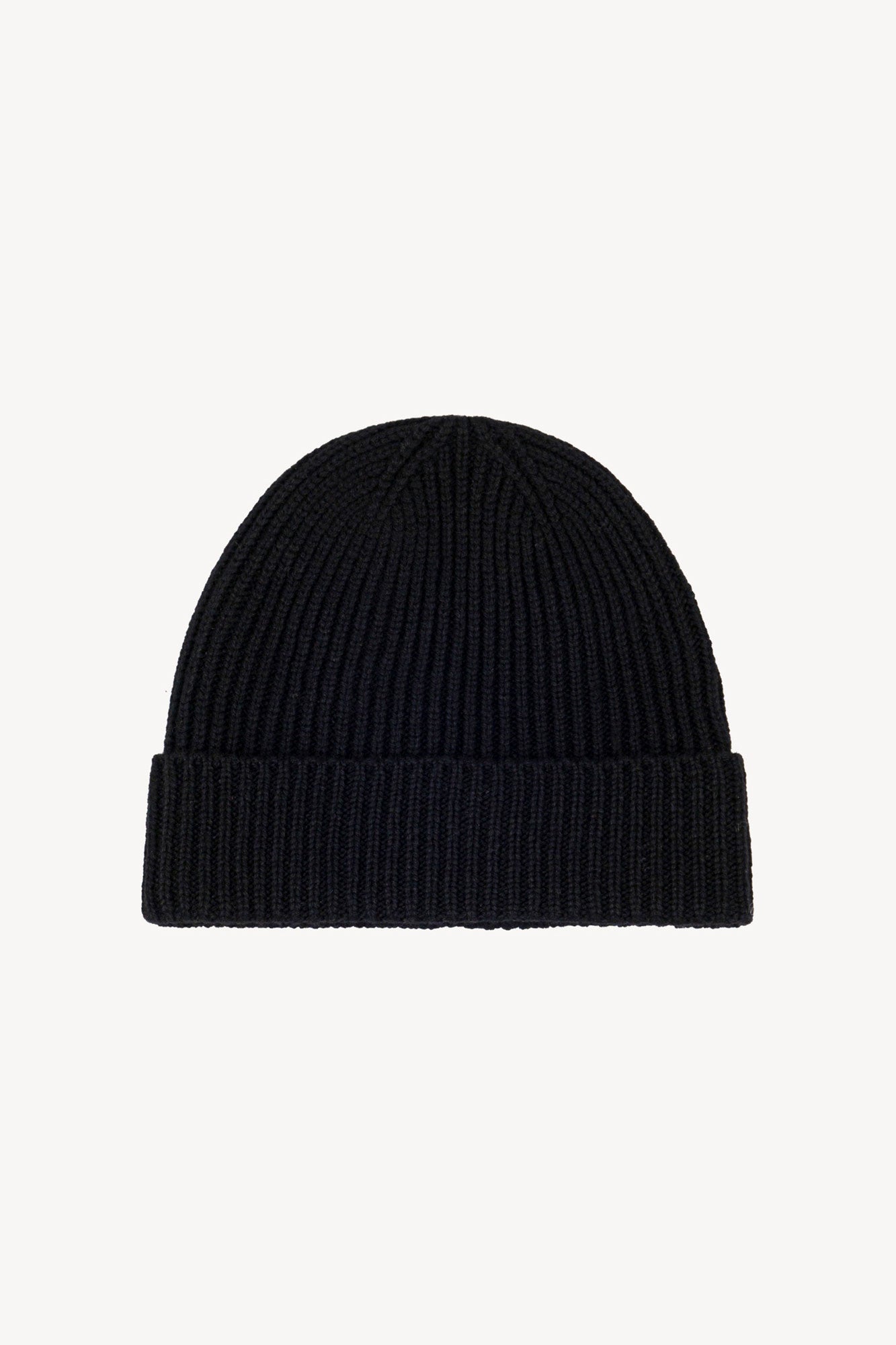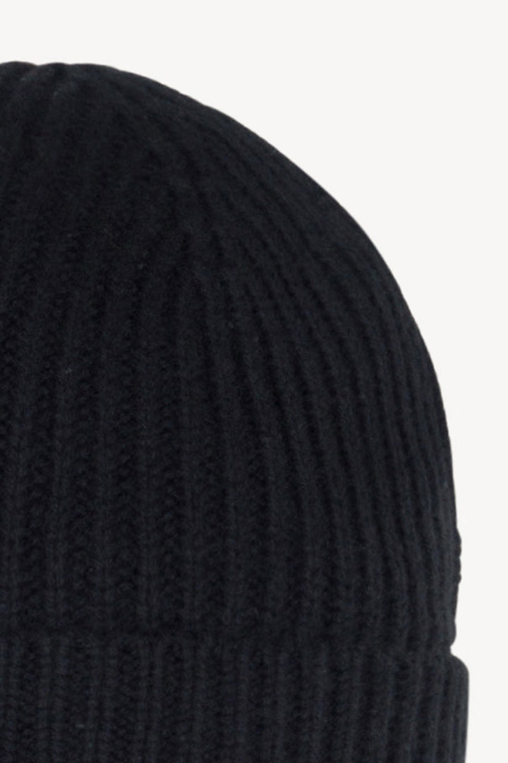 Berretto Unisex a Coste in Puro Cashmere Nero - Modello Corto