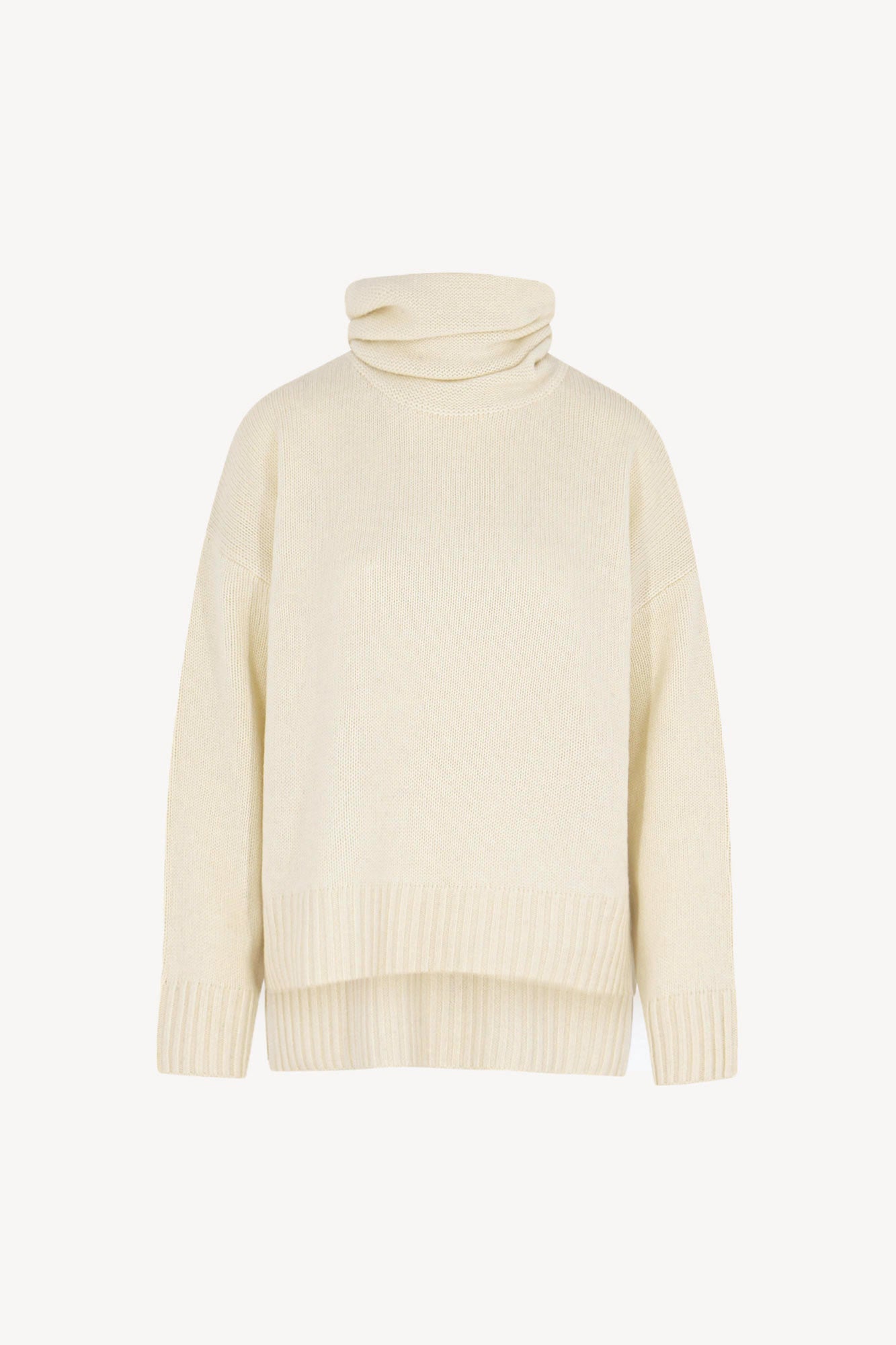 Maglia 8 fili con Collo ad Anello in Puro Cashmere Latte