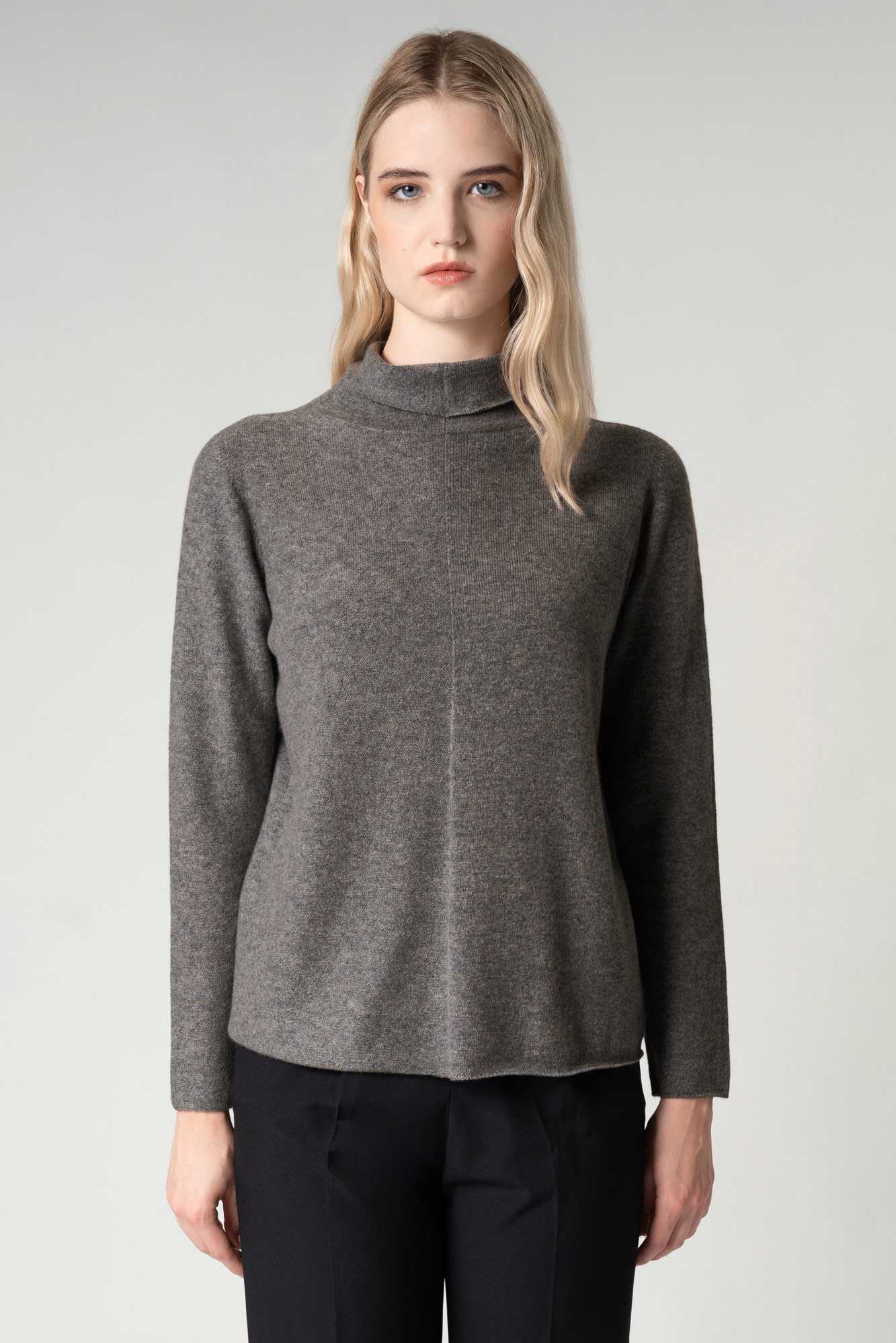 • Maglia Lupetto Dritto-Rovescio in Puro Cashmere Cammello