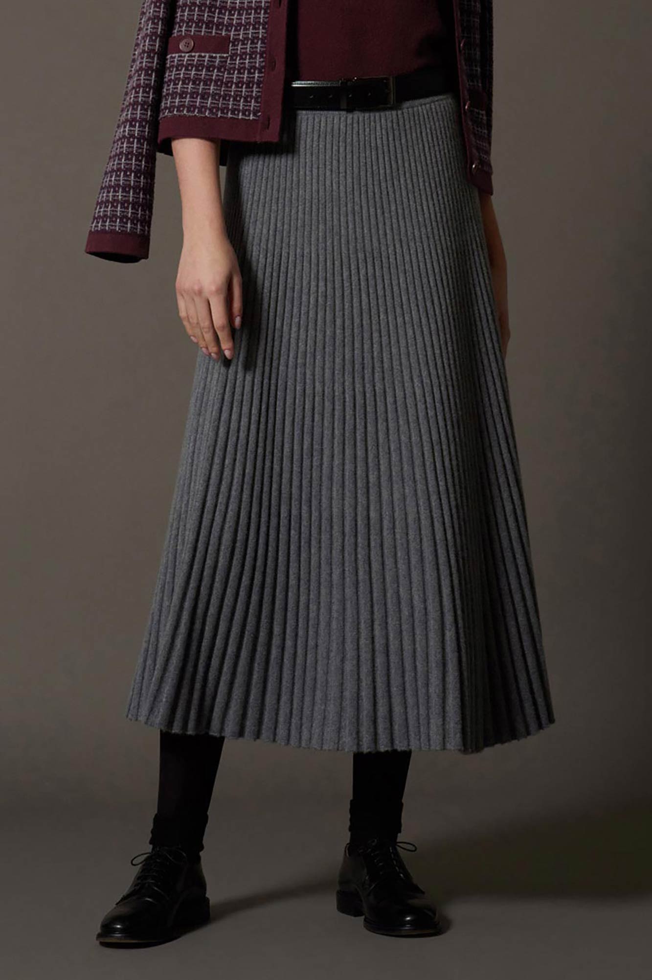Gonna Plissè in Puro Cashmere Derby