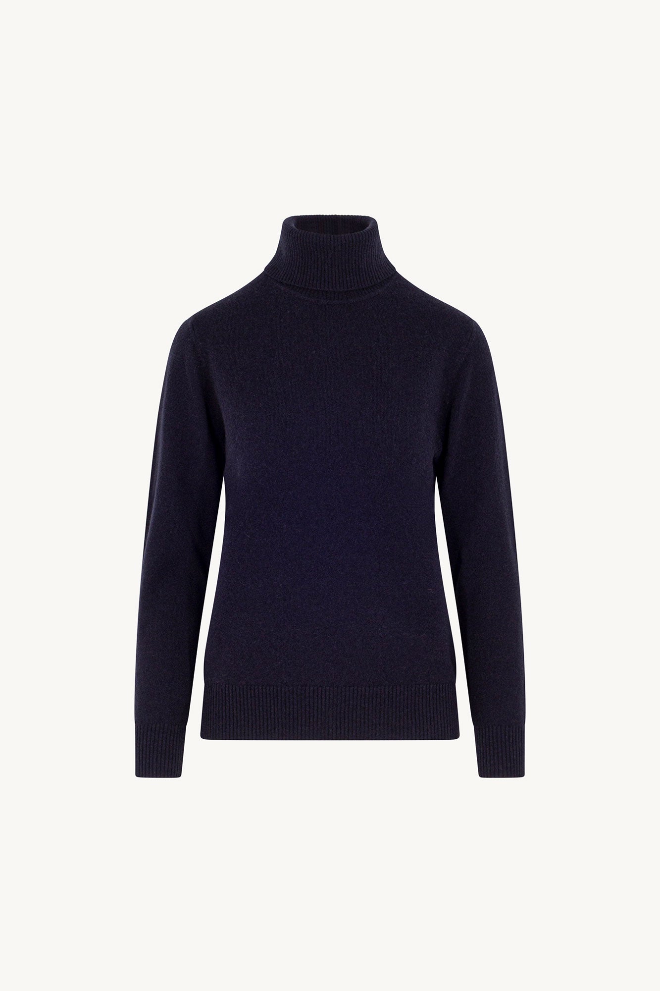 • Dolcevita in Maglia Rasata in Puro Cashmere Notte