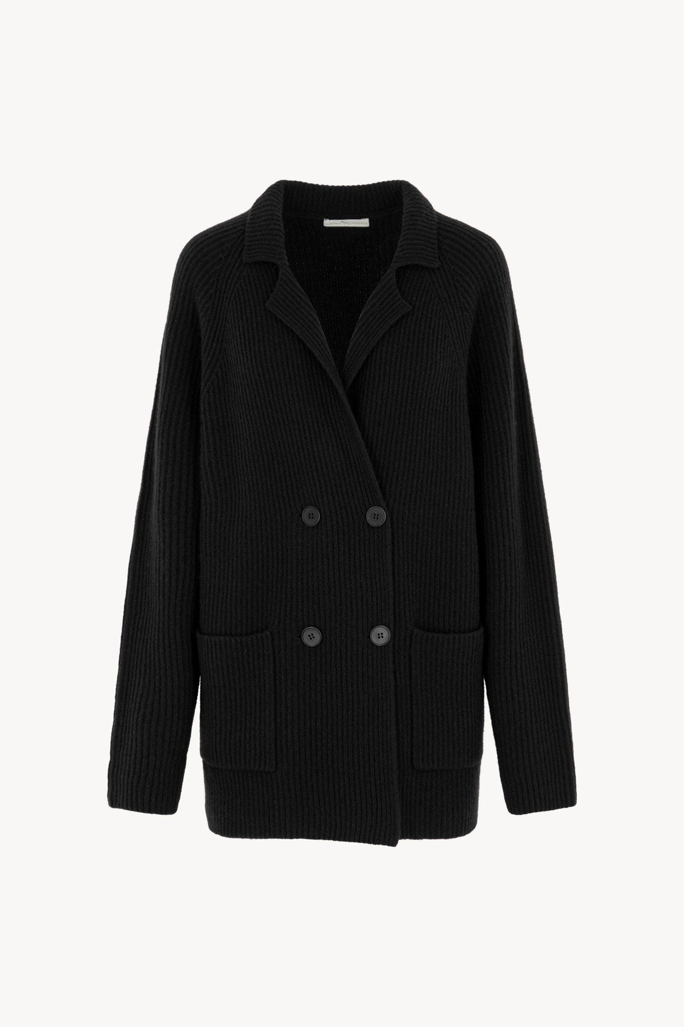 • Cardigan Doppiopetto a Costa Inglese in Puro Cashmere Nero