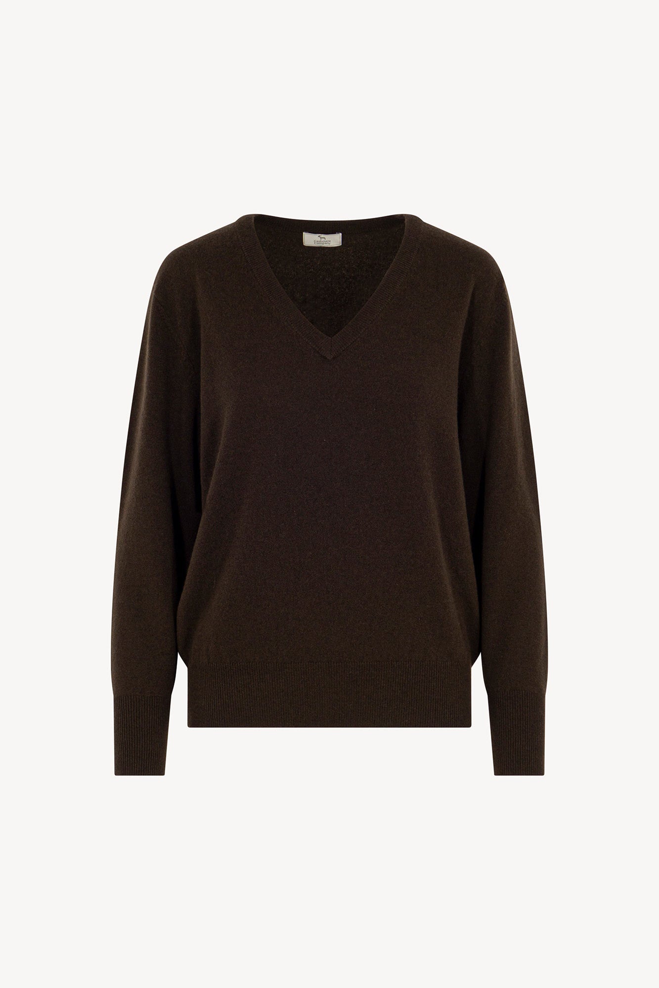 • Pullover Scollo a V in Puro Cashmere Mocha